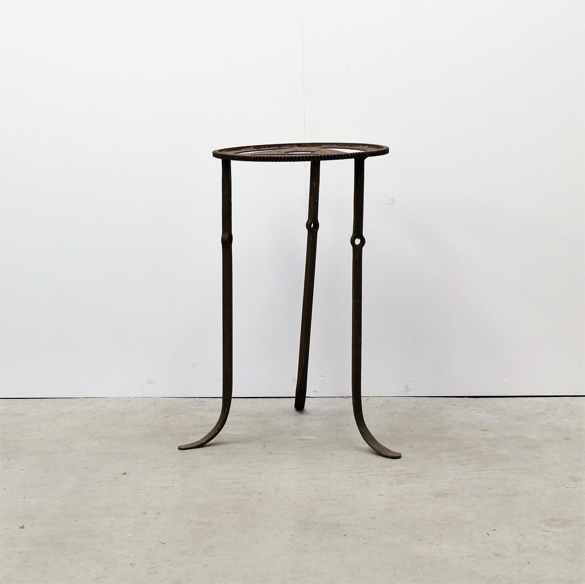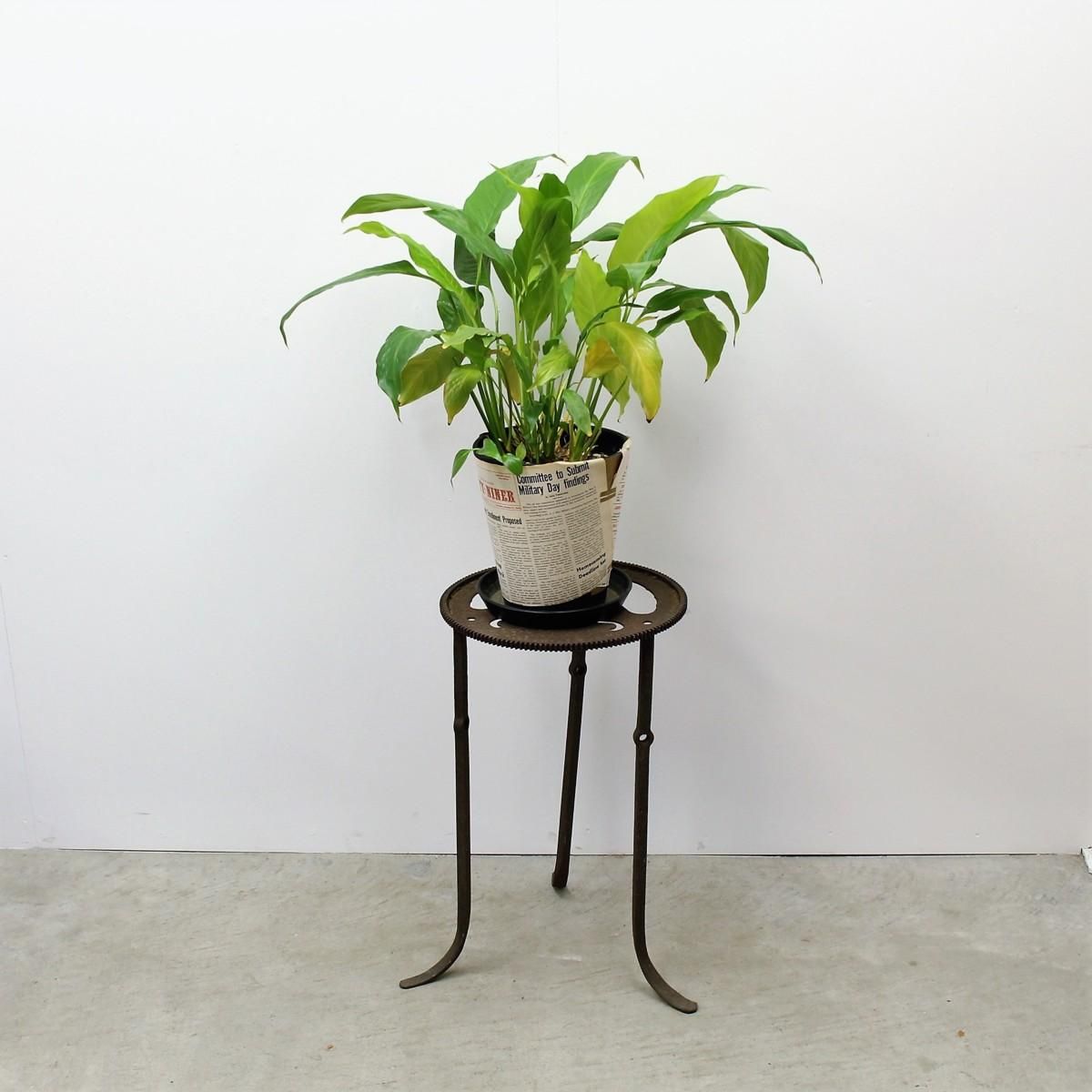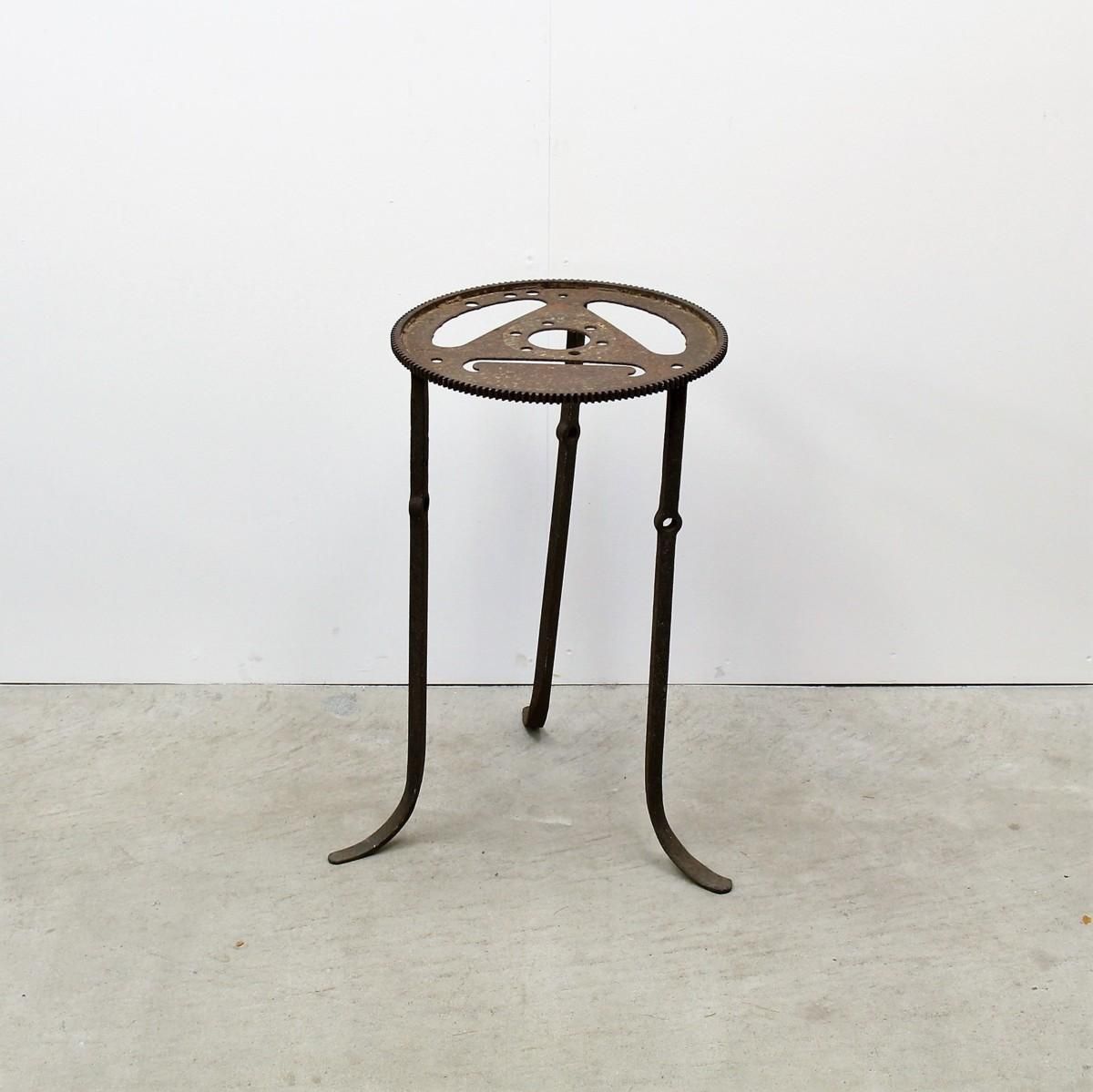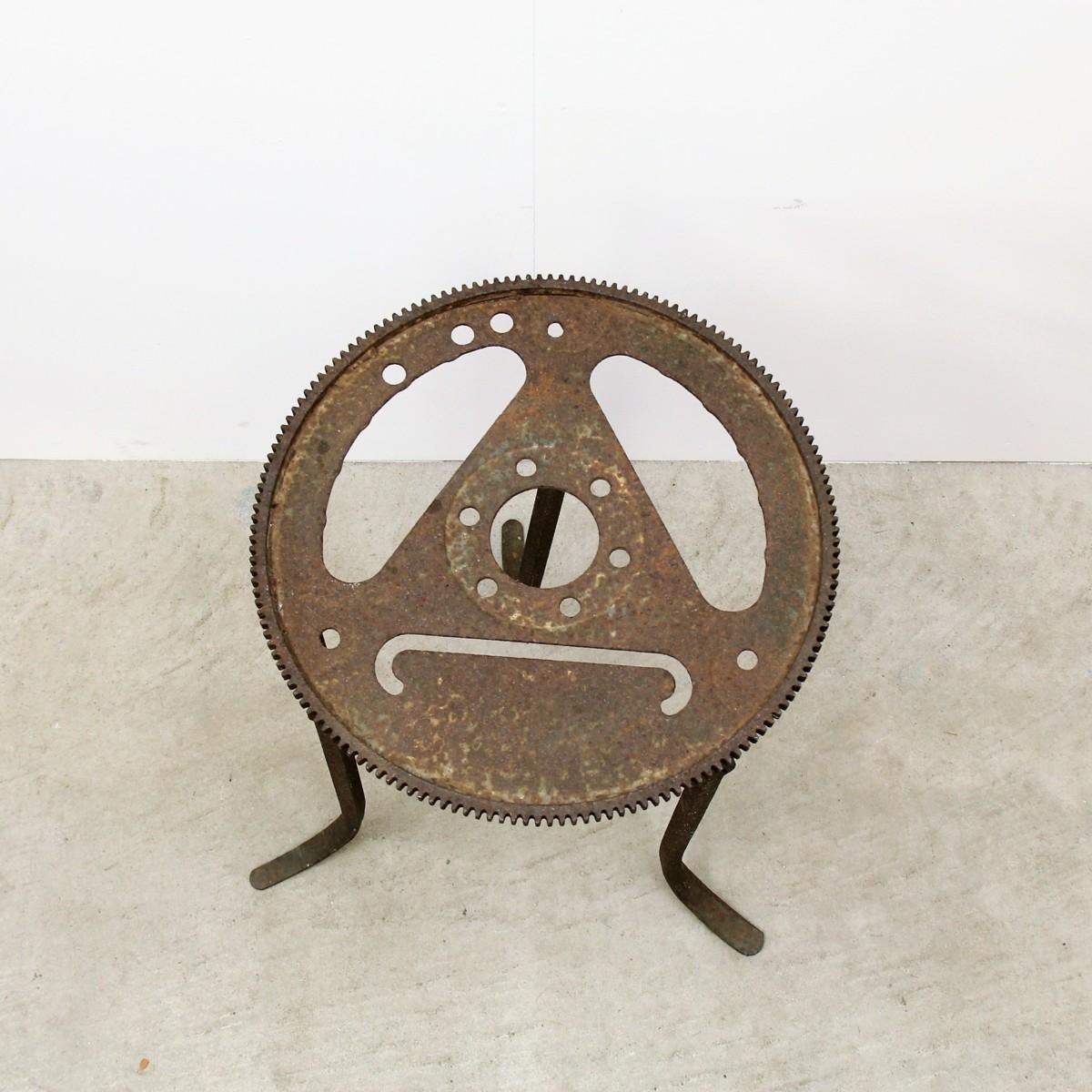 何かの歯車を利用して作った、鉄製の花台(フラワースタンド)です。