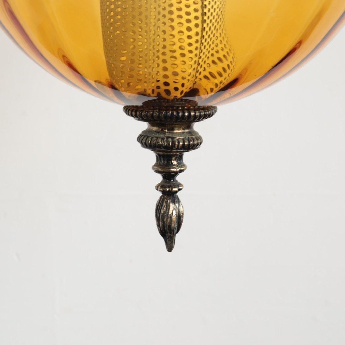 推定1960〜70年代頃の、アンバーガラスのペンダントランプです。