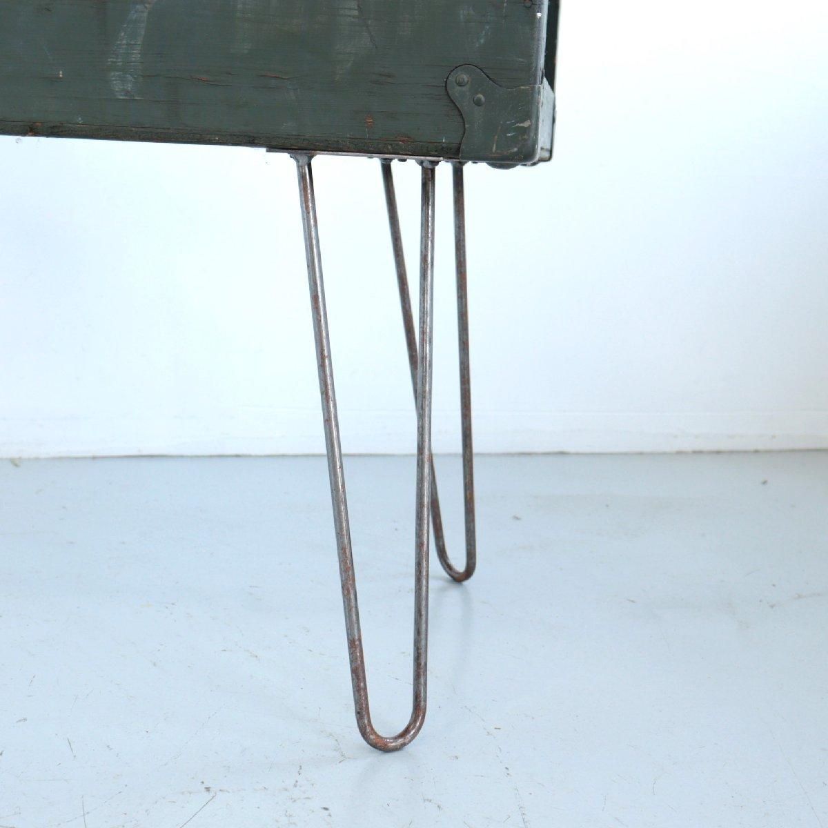 ヘアピンレッグが取り付けられており、テーブルとしても収納としてもお使いいただけます。