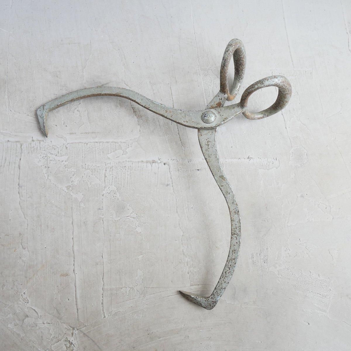 長年使い込まれた、鉄製のアイスブロックトングです。