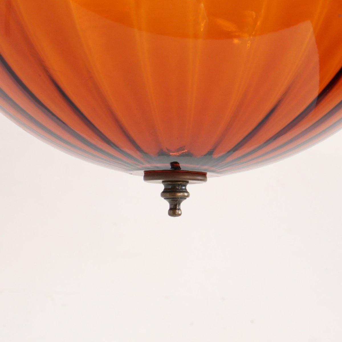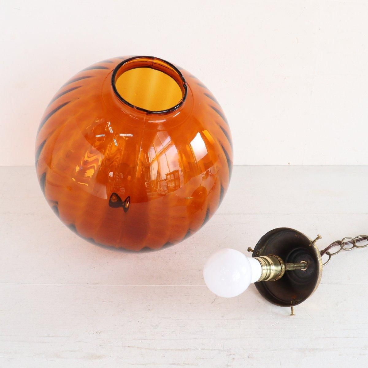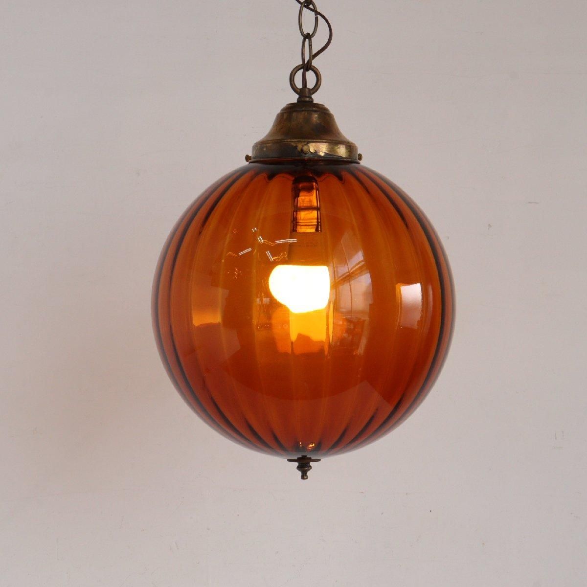 推定1960年〜70年代頃の、アンバーガラスのペンダントランプです。