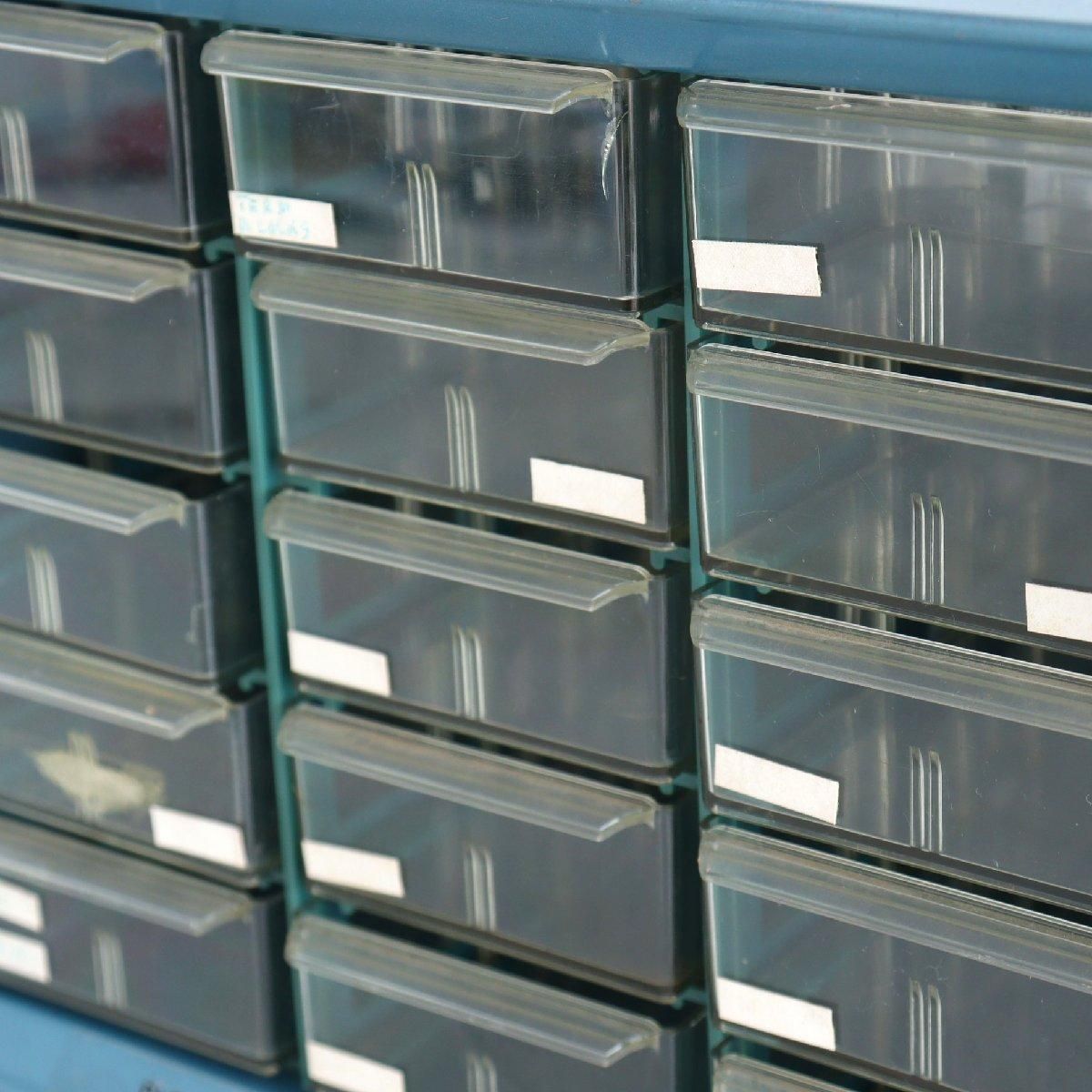 【AKRO-MILS 】社のヴィンテージのパーツキャビネットです。