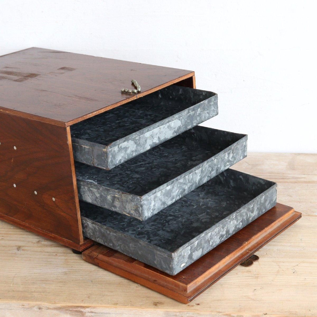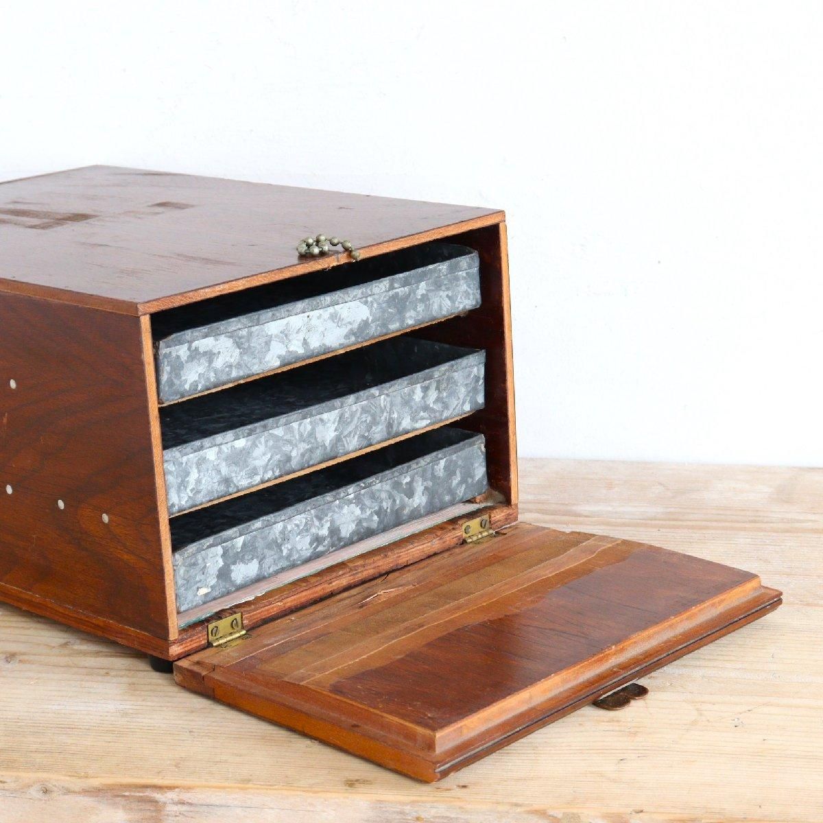 外装は木製で引き出しはブリキ製です。