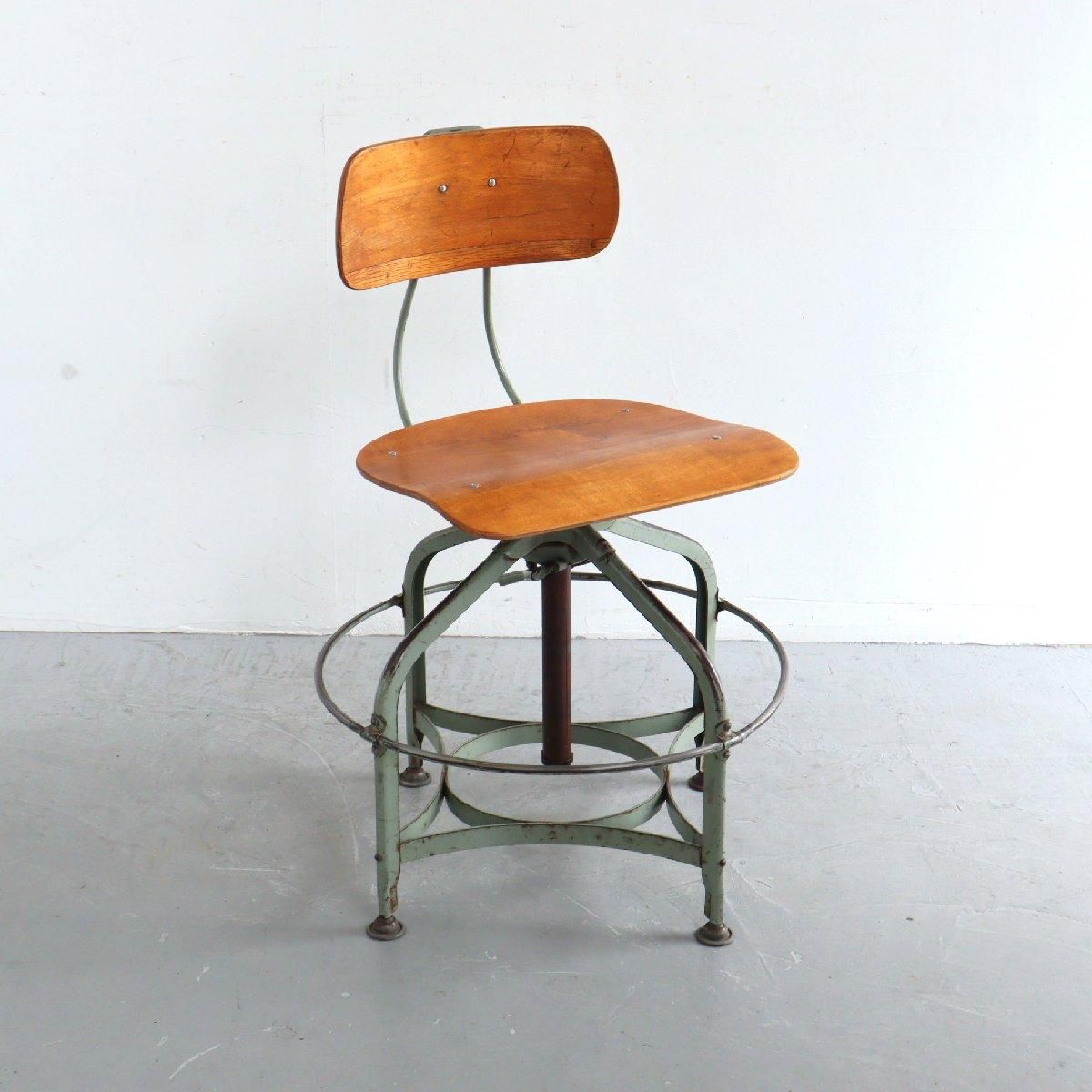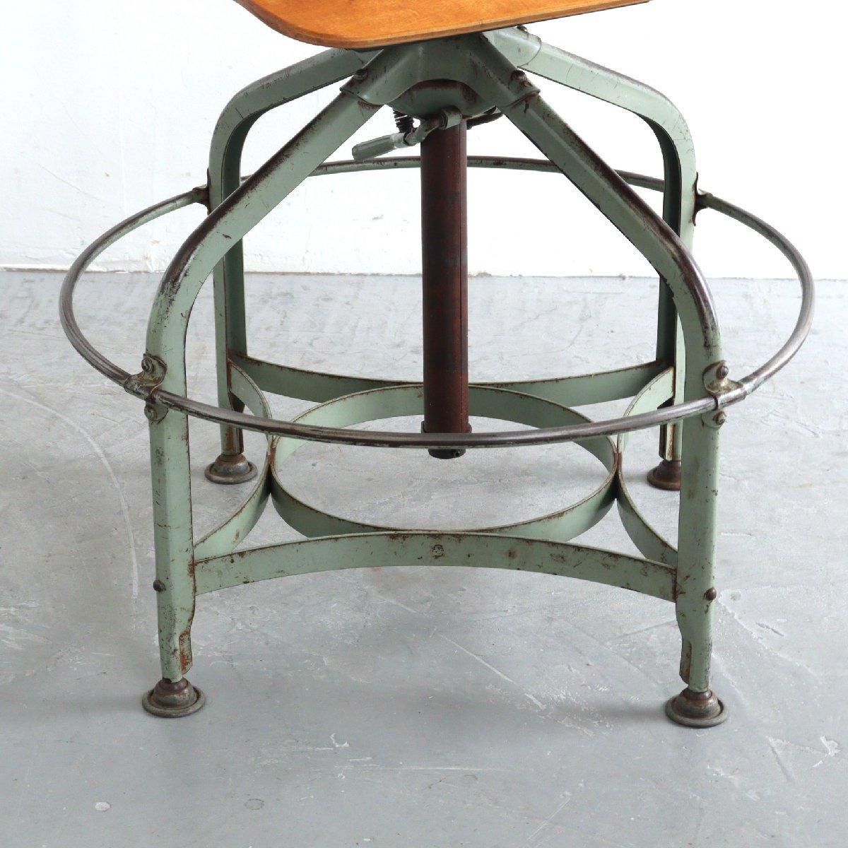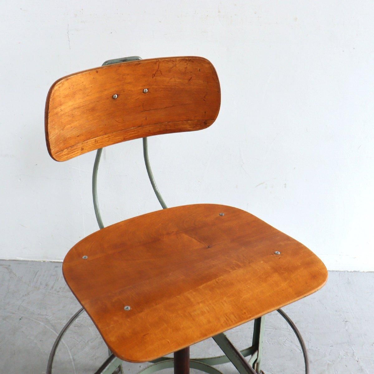 インダストリアル家具で非常に高い人気がある「TOLEDO」社製で、作図など作業場で使われていたもので、背もたれや座面の高さ調節が可能です。