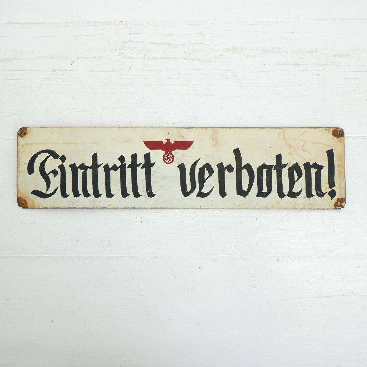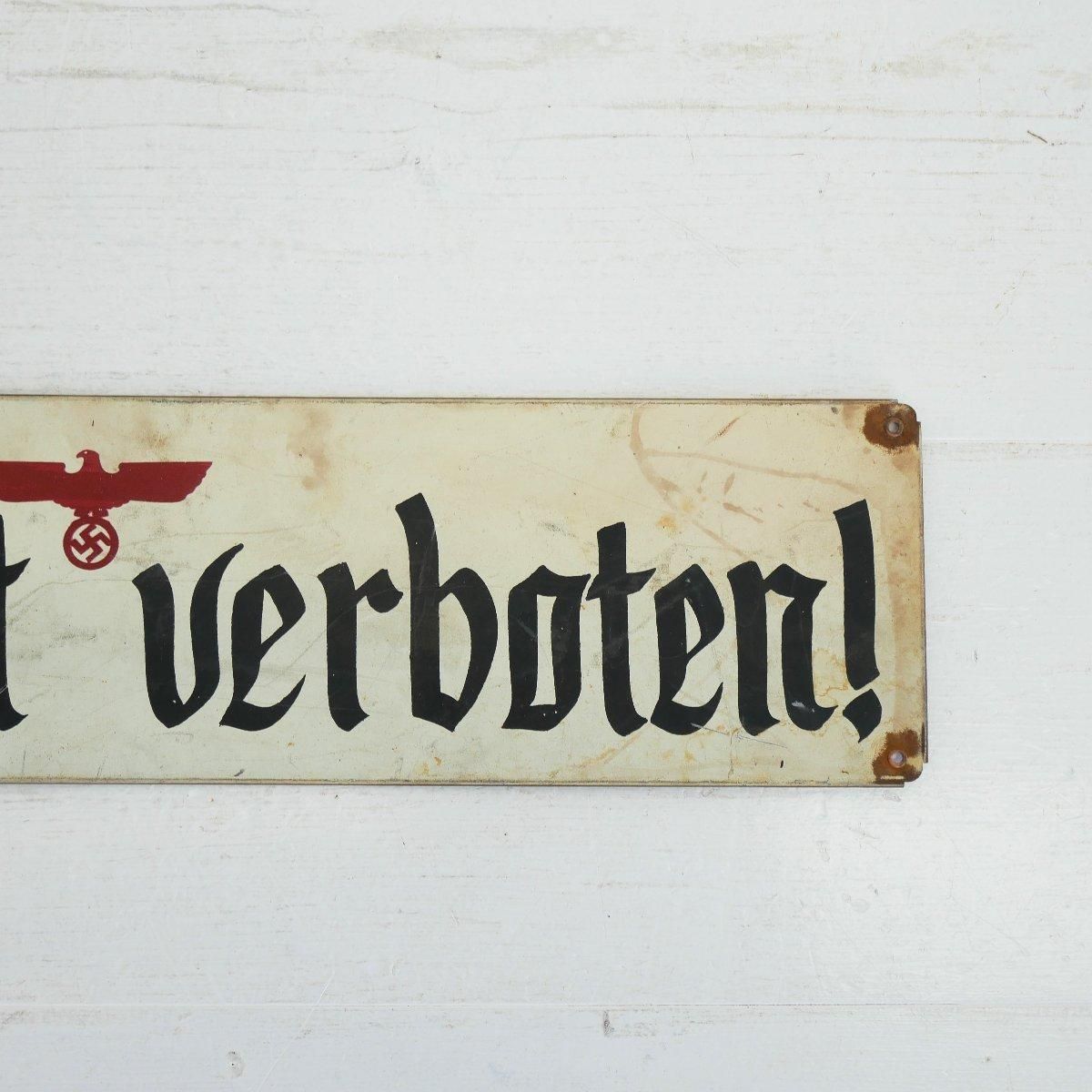 ドイツ語でユダヤ人に対し「Eintritt verboten」(立ち入り禁止)と書かれた看板です。