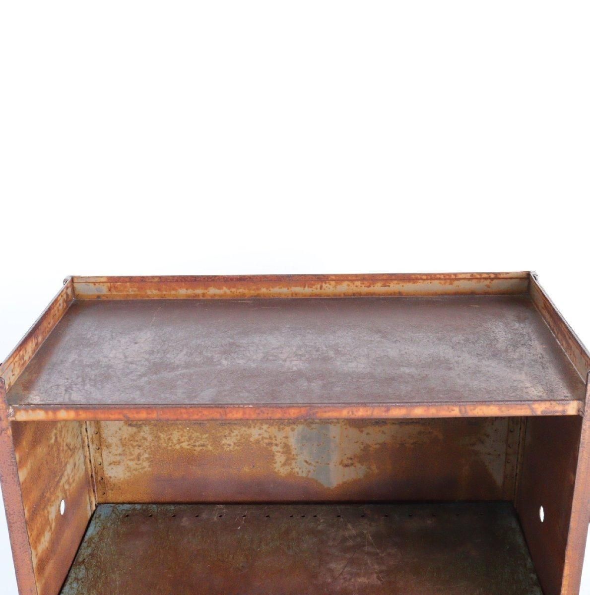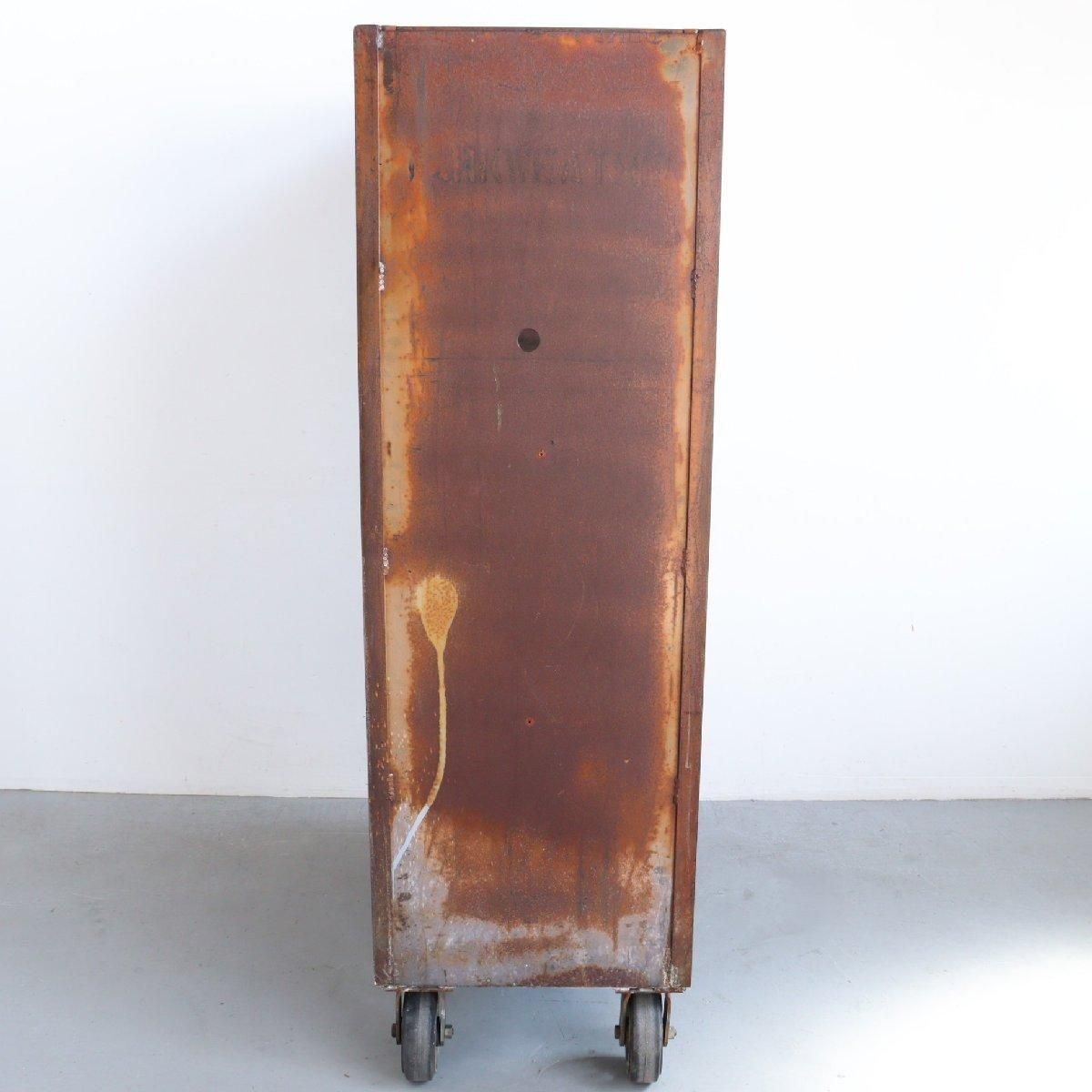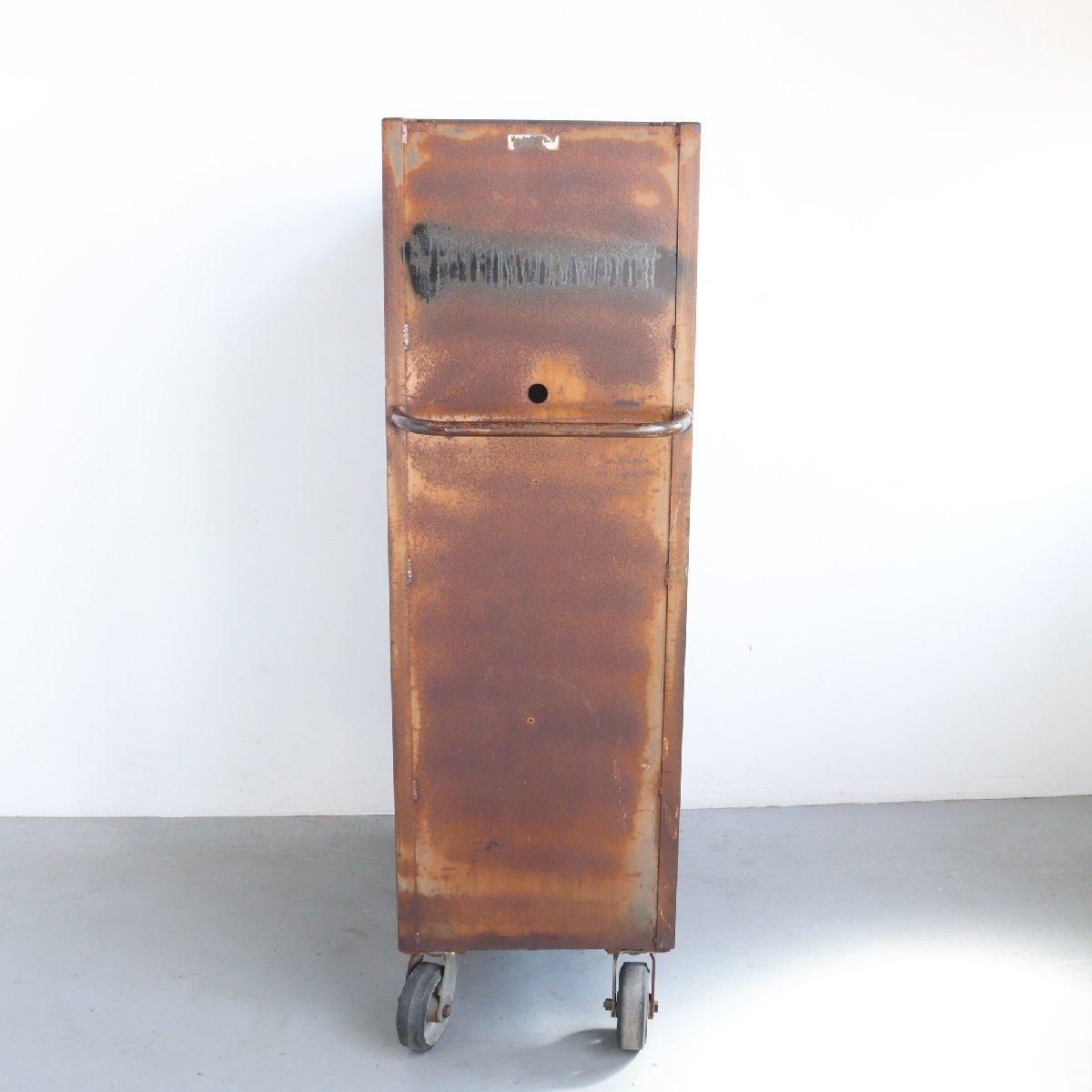 メタル製の頑丈な造りで、上から2段目と3段目が可動式で使い勝手も良く、サイドのステンシルがインダストリアルな雰囲気があり今のモノには出せない存在感があります。