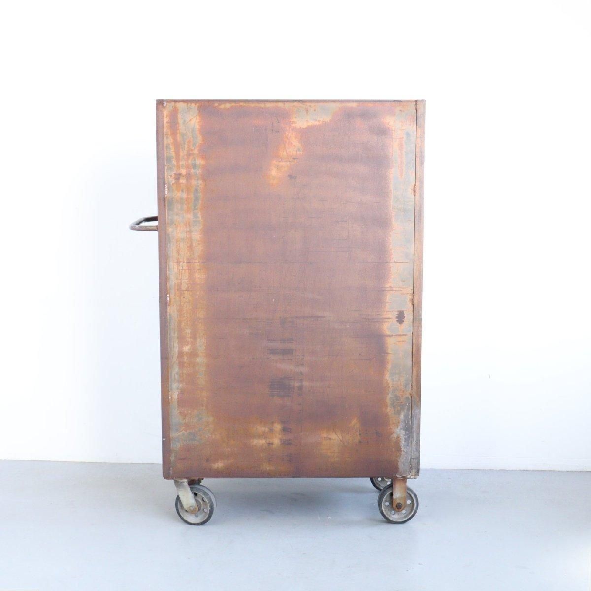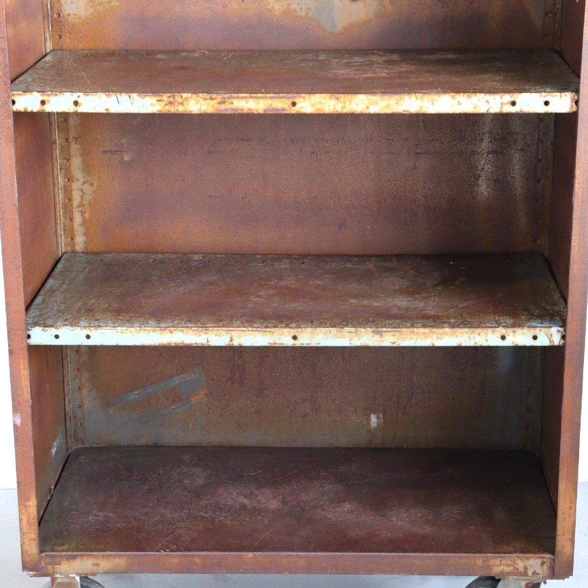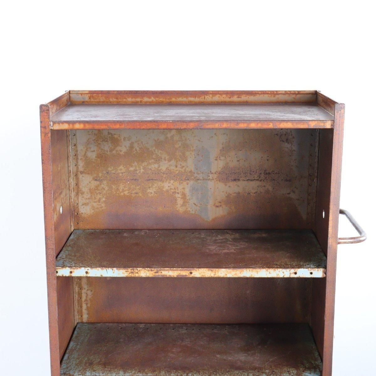 メタル製の頑丈な造りで、上から2段目と3段目が可動式で使い勝手も良く、サイドのステンシルがインダストリアルな雰囲気があり今のモノには出せない存在感があります。