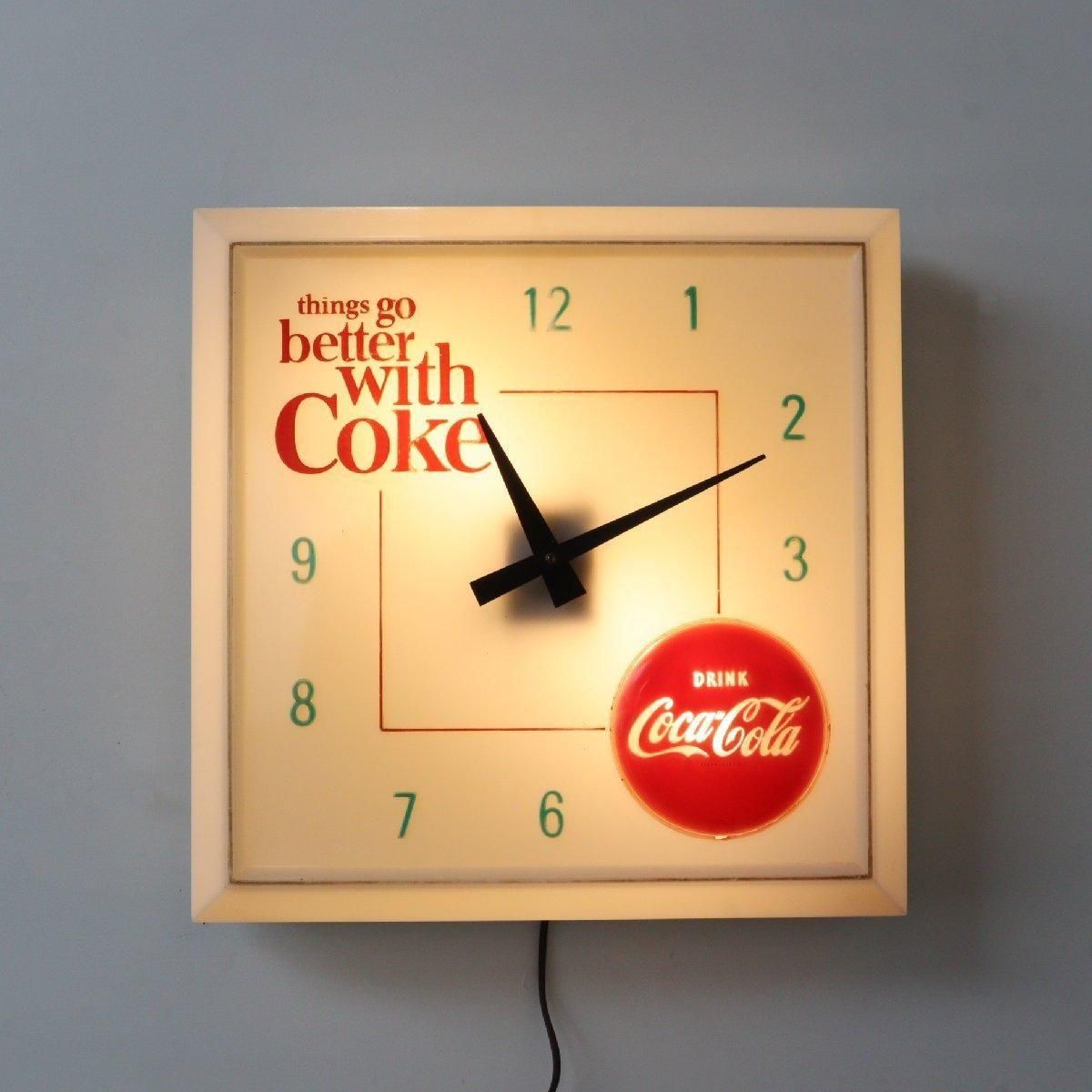 1960年代のCoca-Cola(コカコーラ)のライト付き壁掛け時計です。