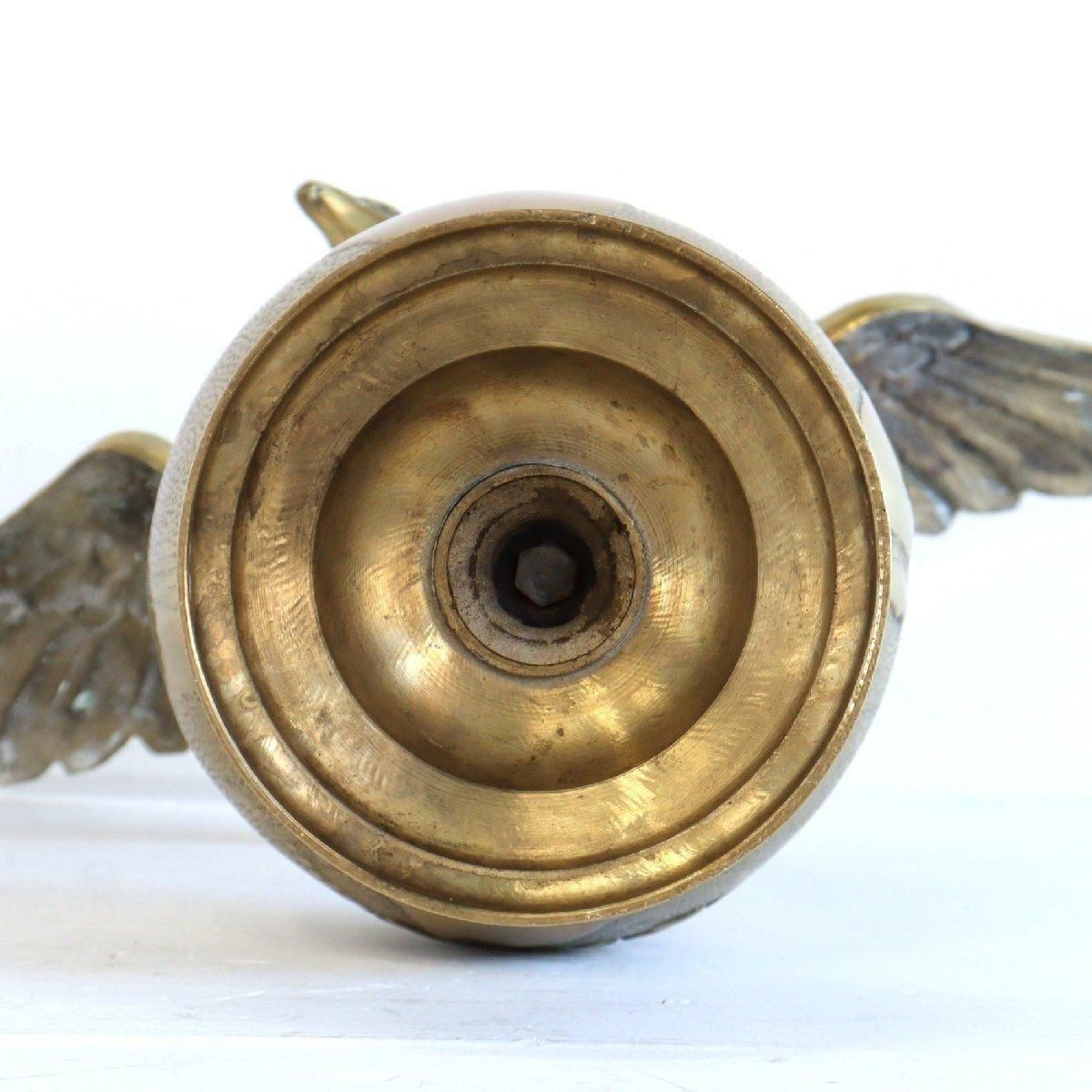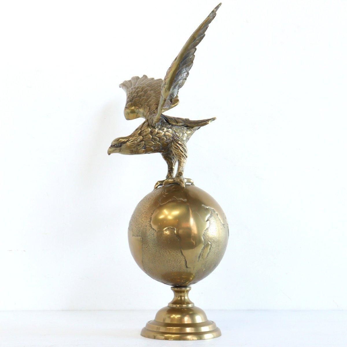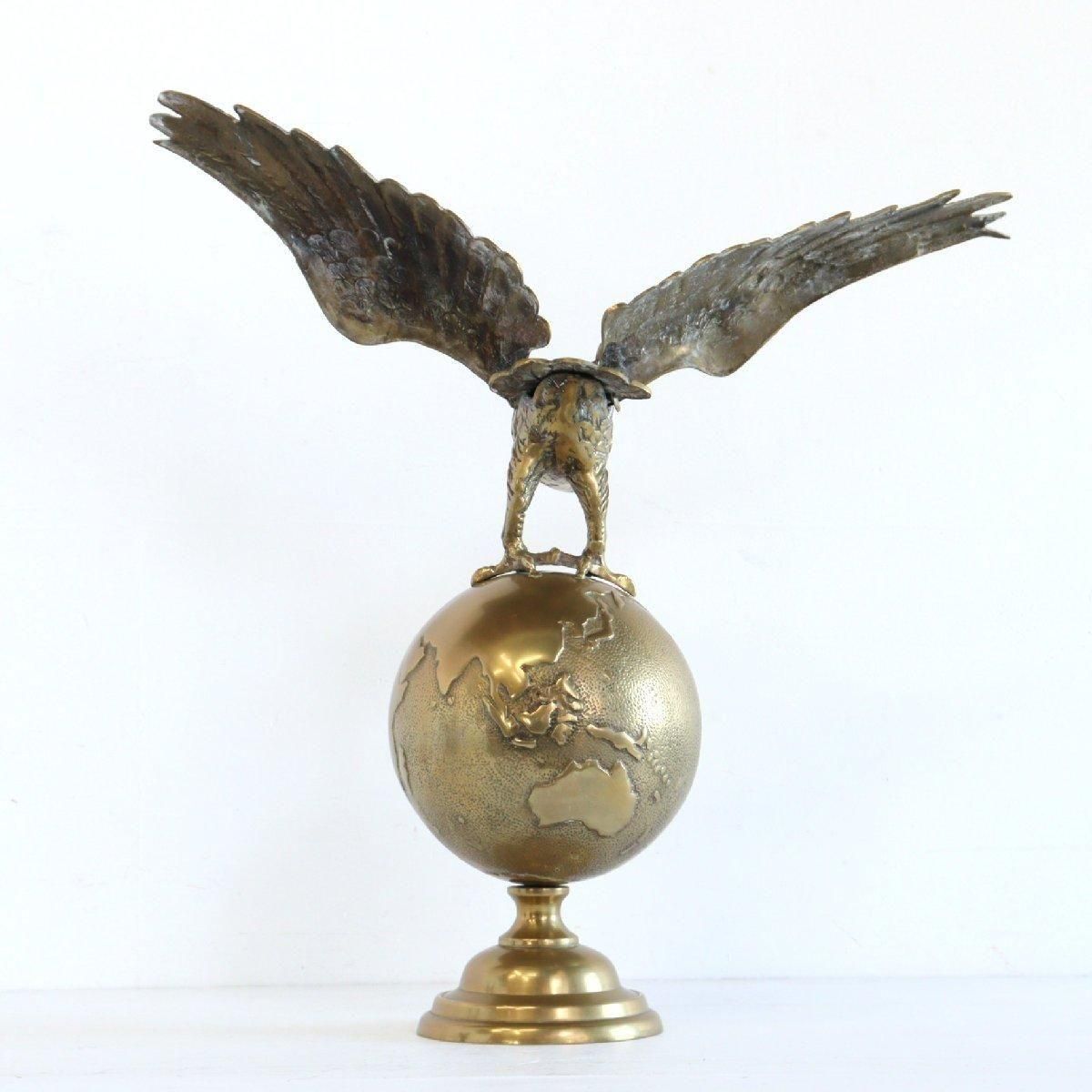 アメリカの国鳥でもある、ハクトウワシが地球の上に乗り、今にも飛んでいきそうな様子を模した真鍮製の置物です。