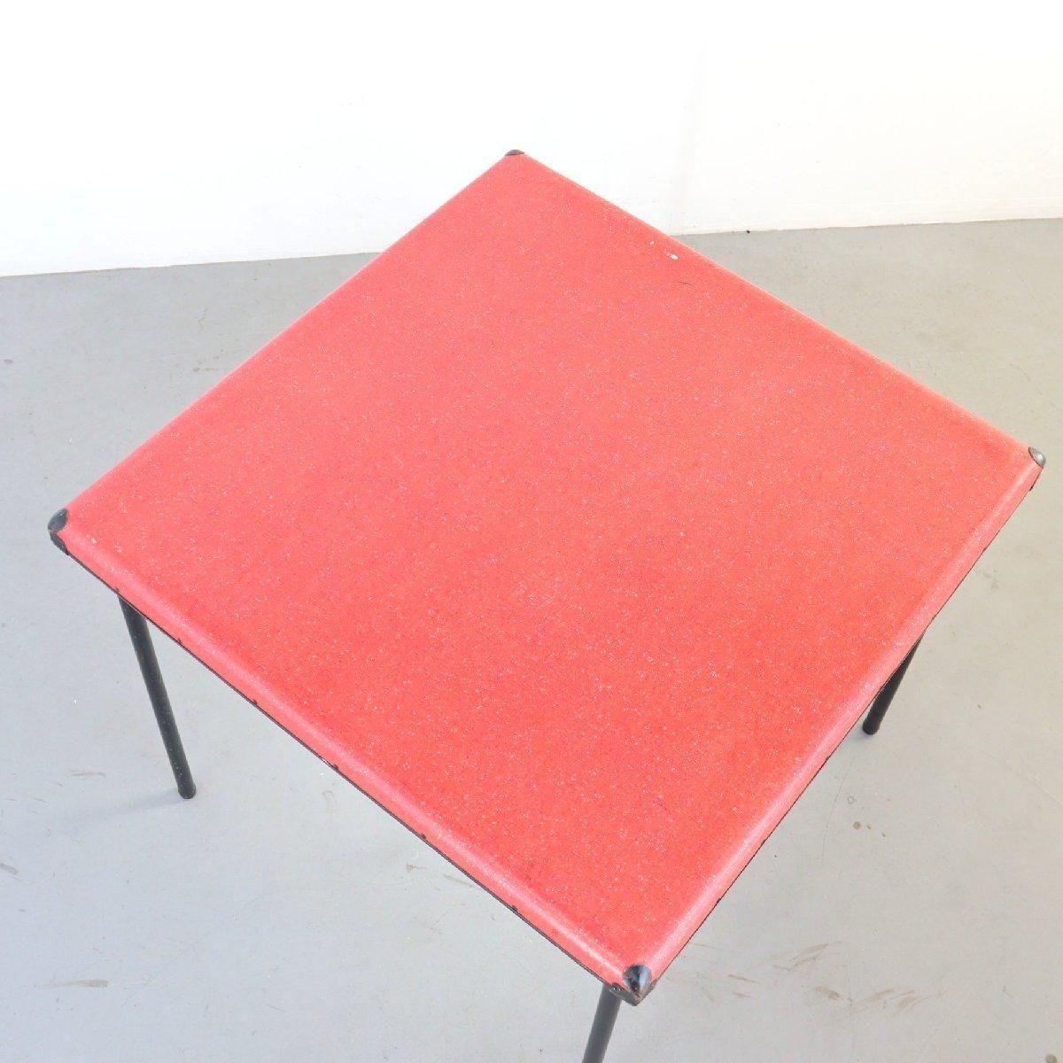 キズやスレ、天板生地のキズ(画像5枚目)、塗料のはがれや色あせ、多少のぐらつき、サビや取れない汚れなど経年による劣化があります。