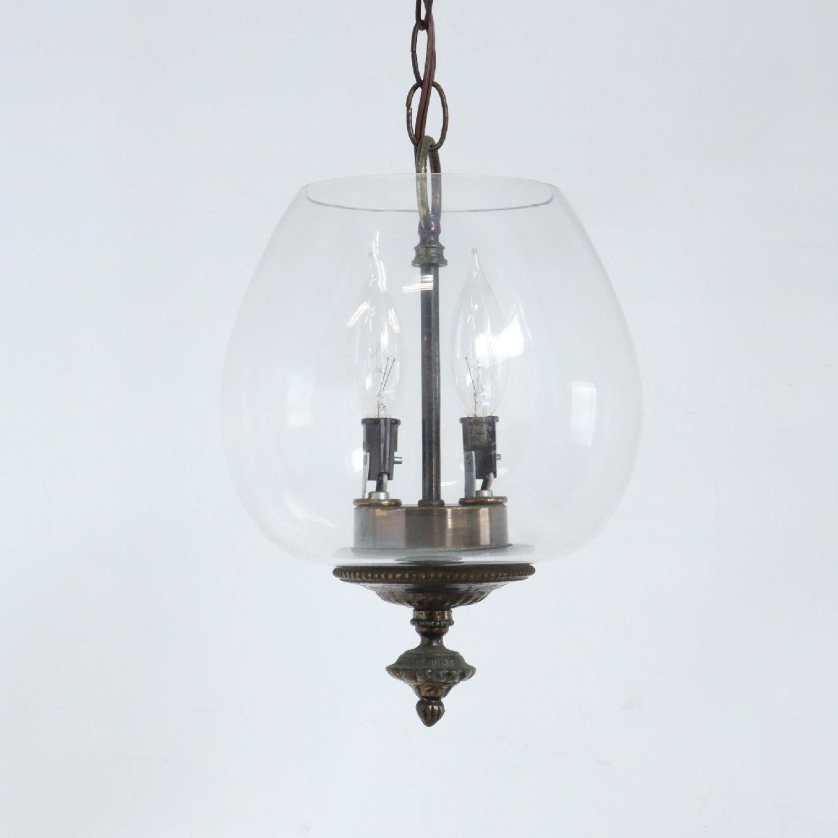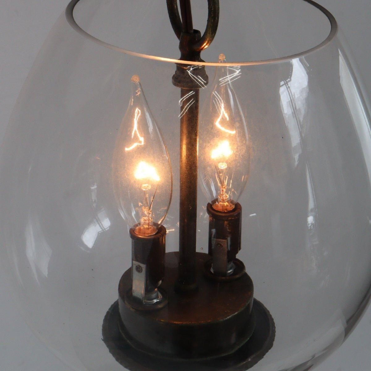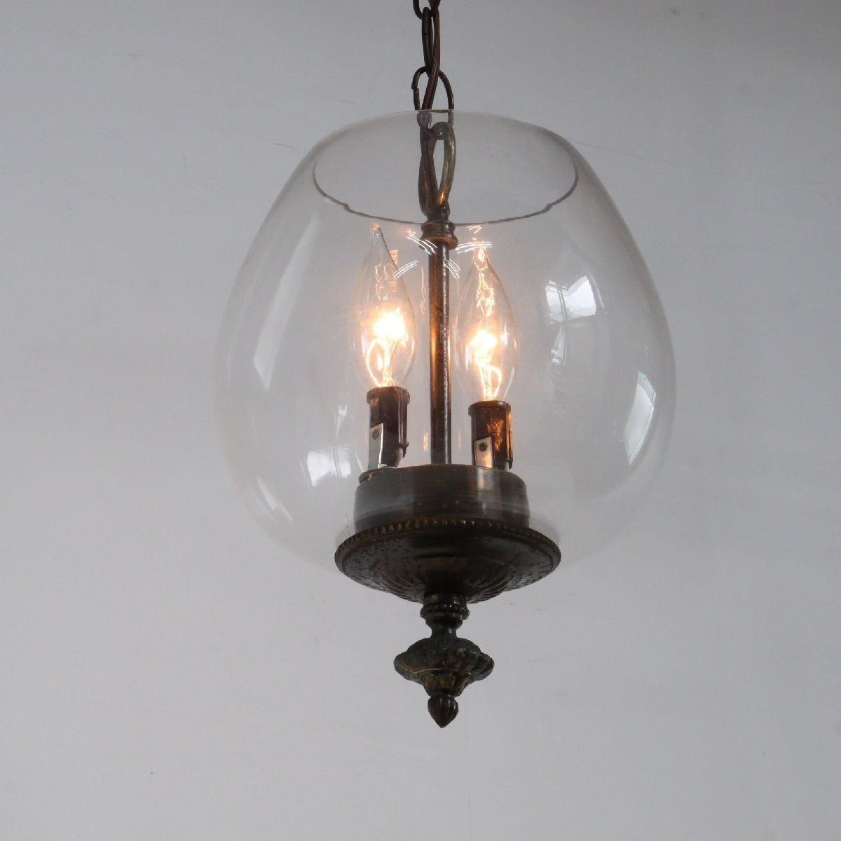 ヴィンテージの2灯式ガラス ペンダントランプです。