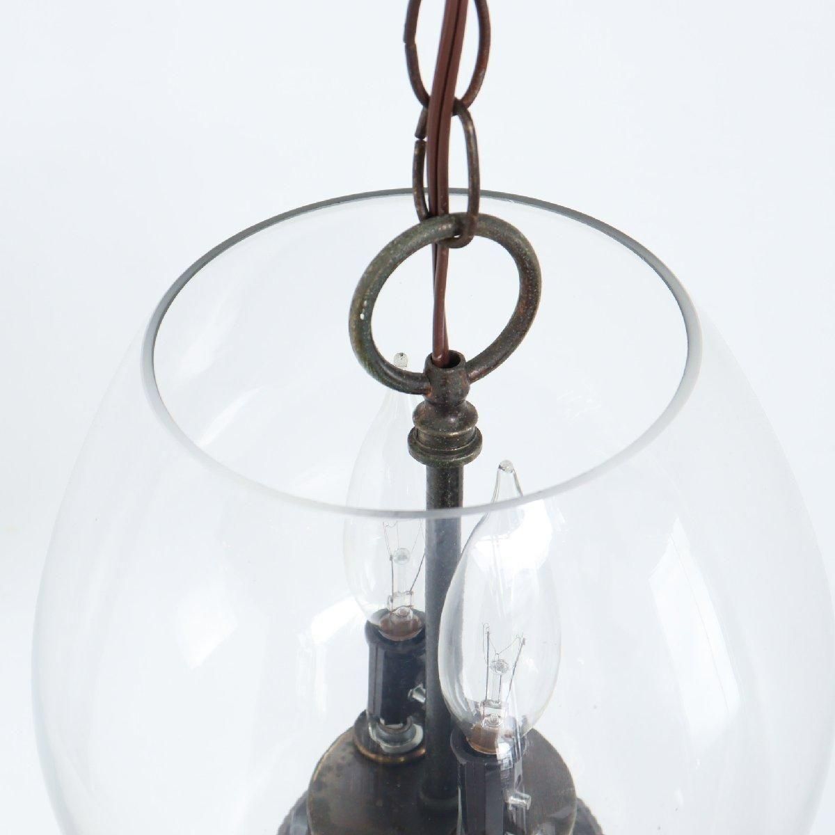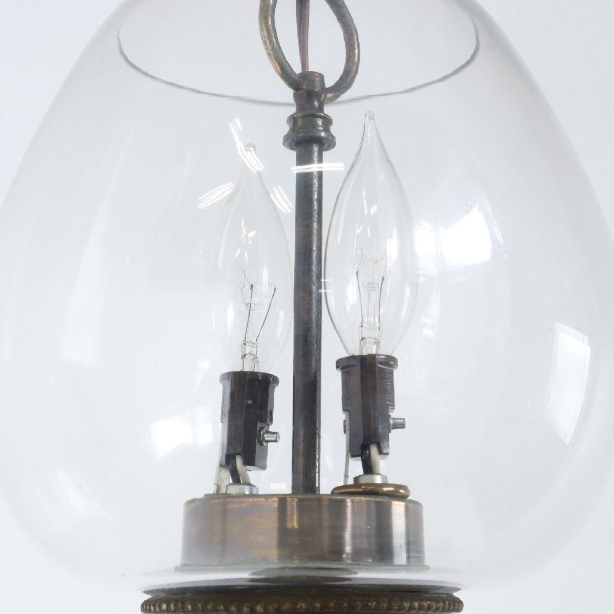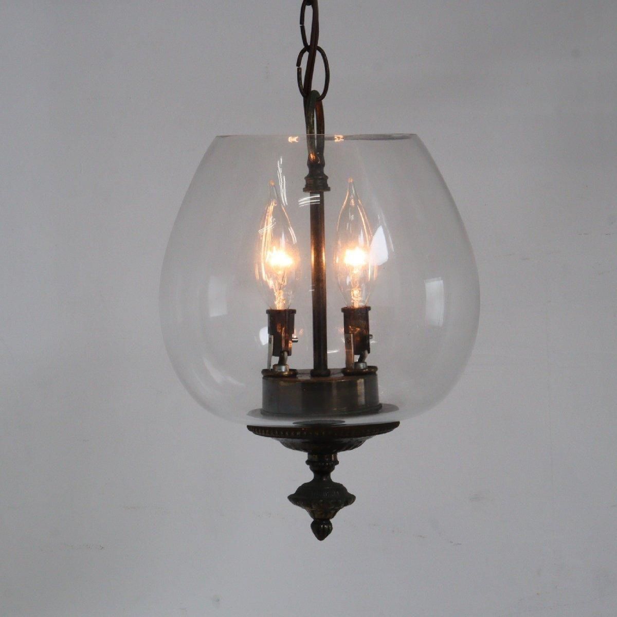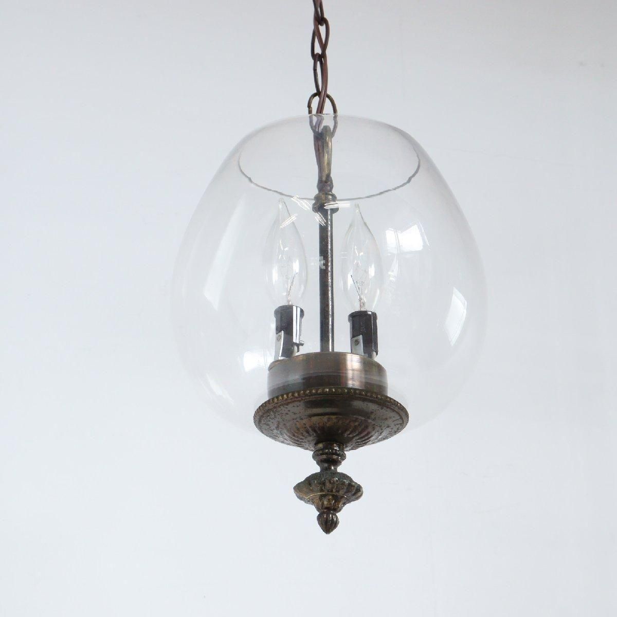 ヴィンテージの2灯式ガラス ペンダントランプです。