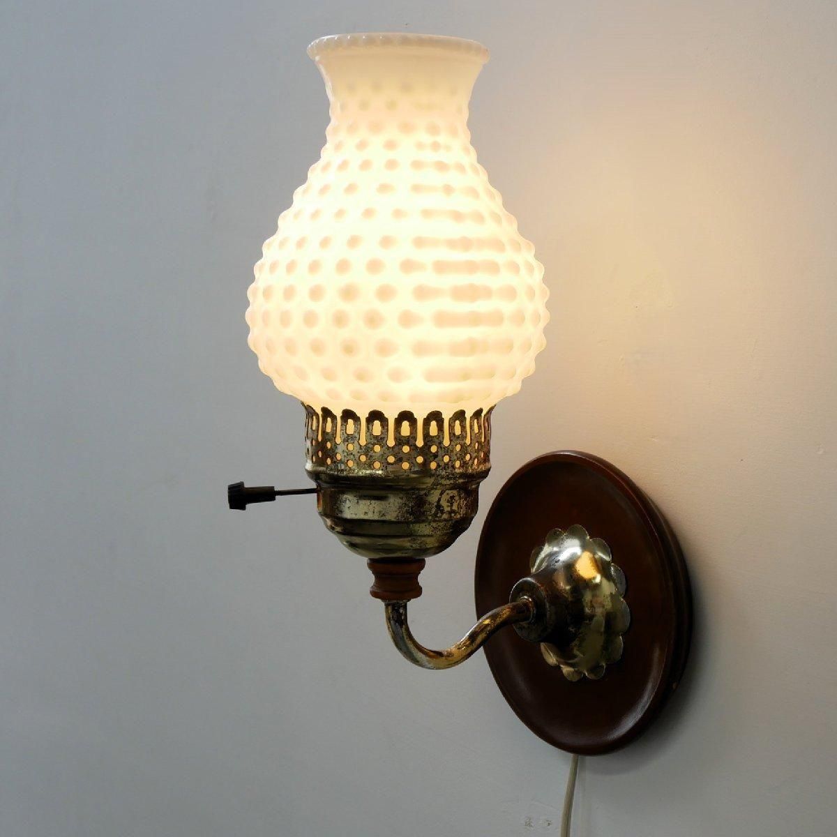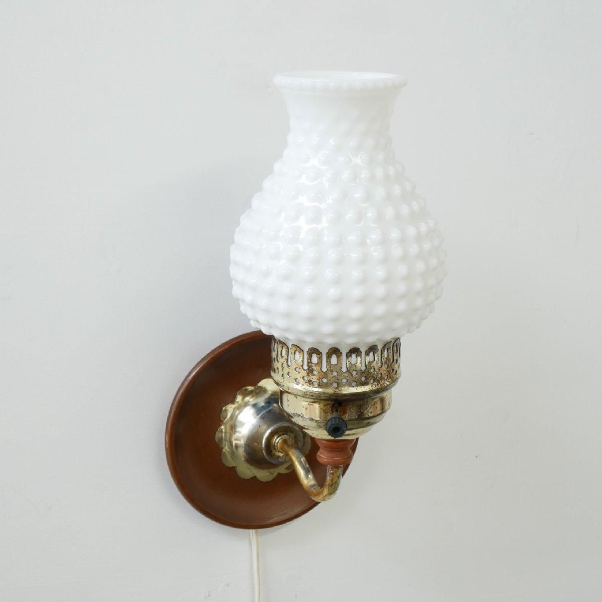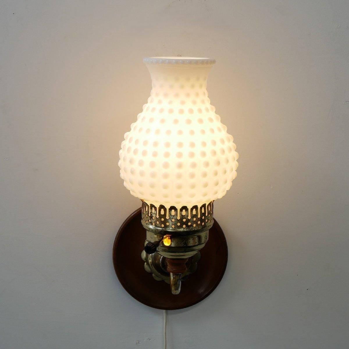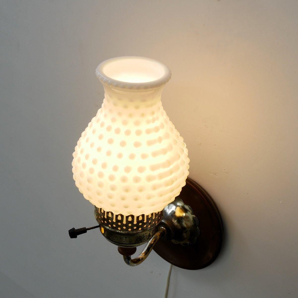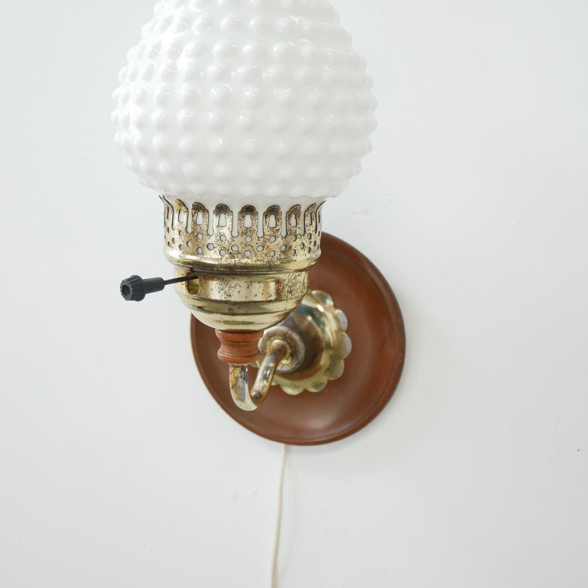 1960年から1970年代頃の、ホブネイル ミルクガラス壁掛けランプです。