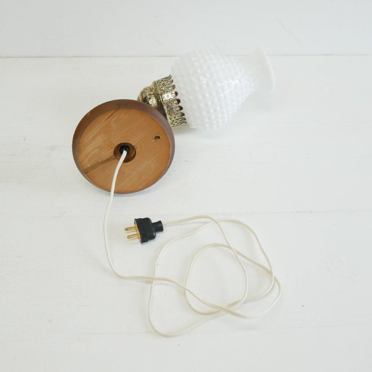 ガラスにカケはありません。ソケットは新品に交換しています。スイッチが少しきつめです。金具部分にサビがあり、変色や細かいキズなど、経年による劣化があります。