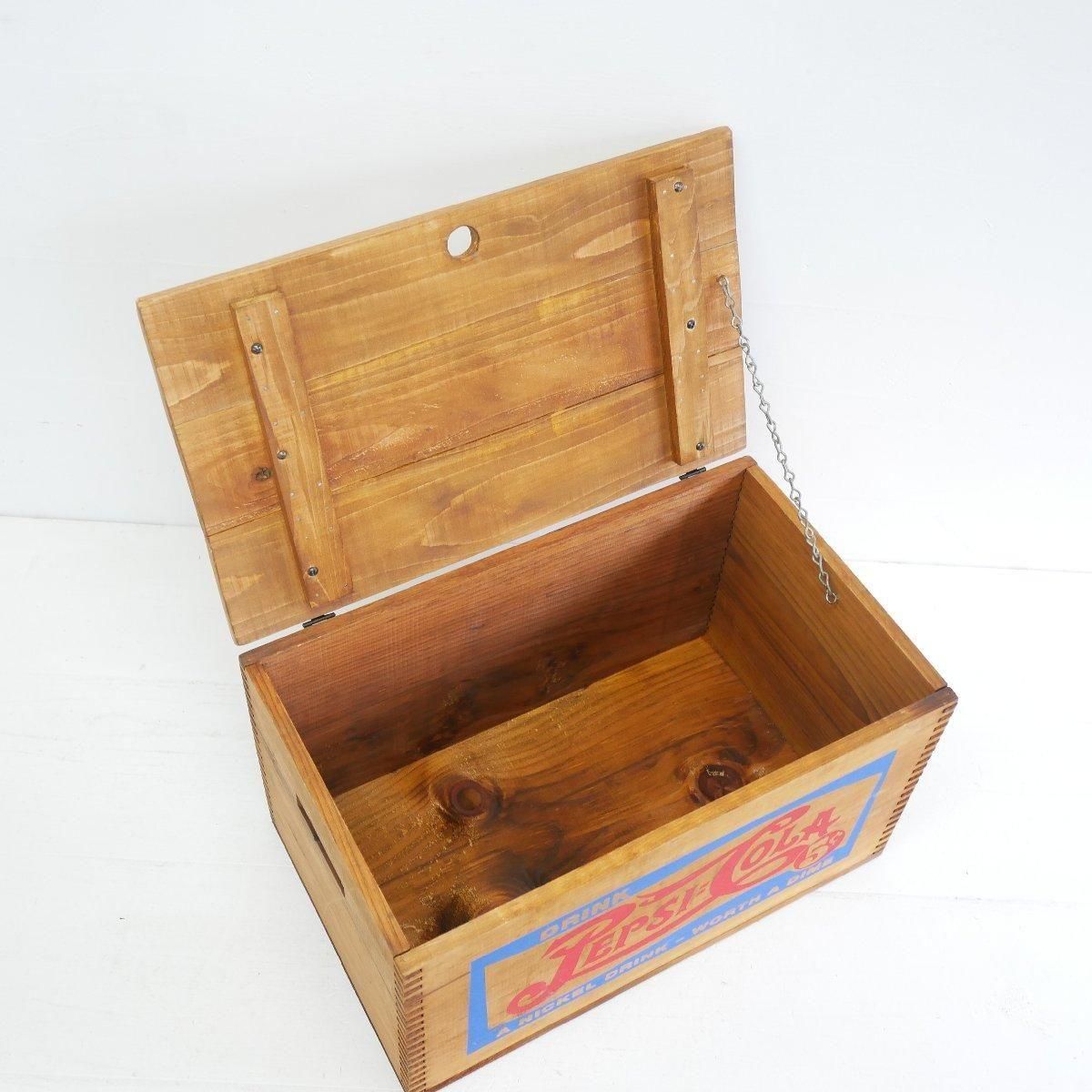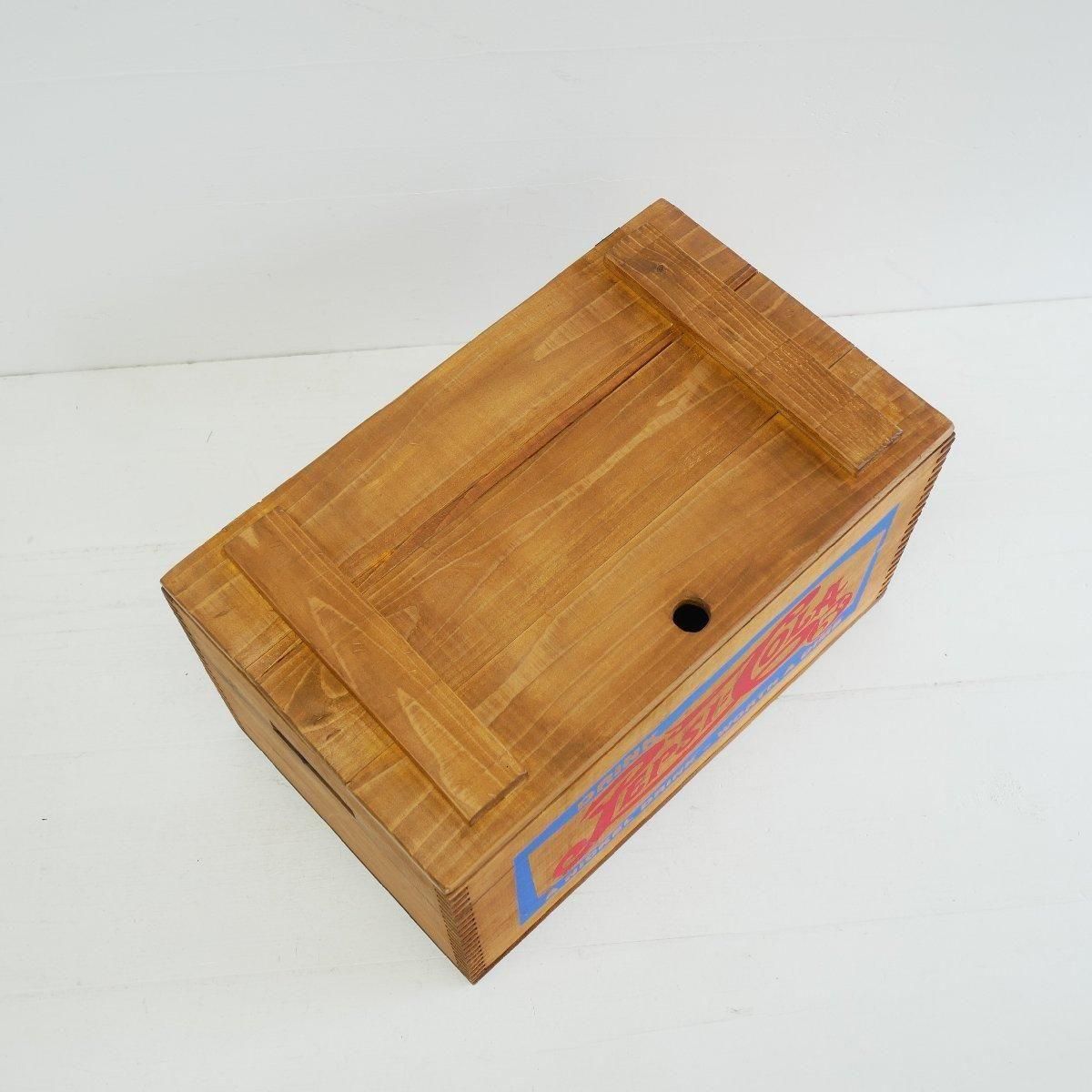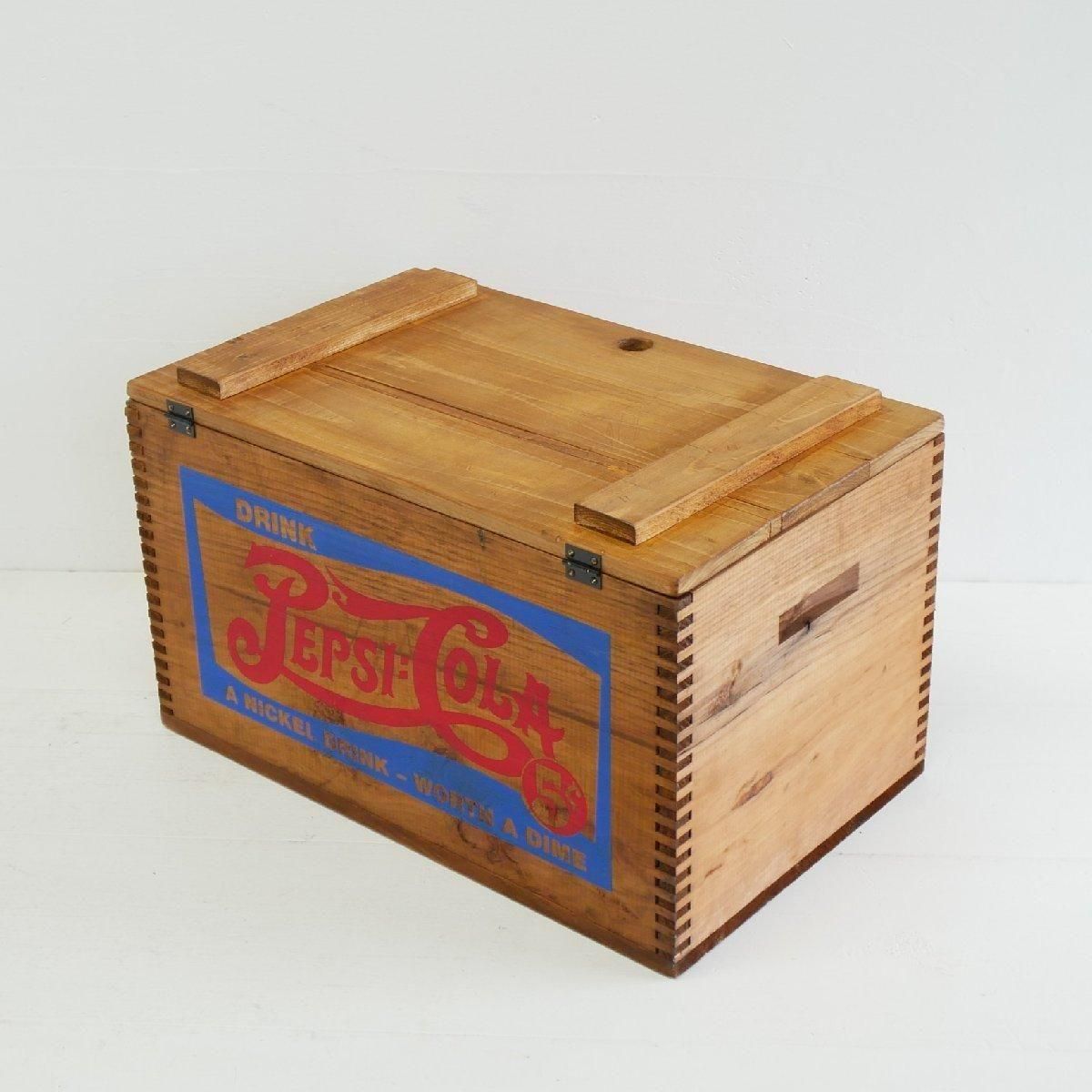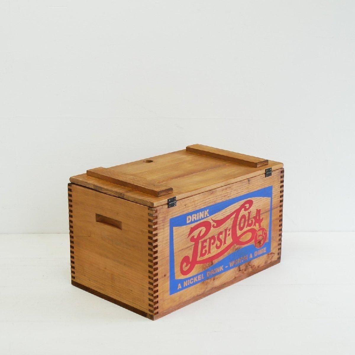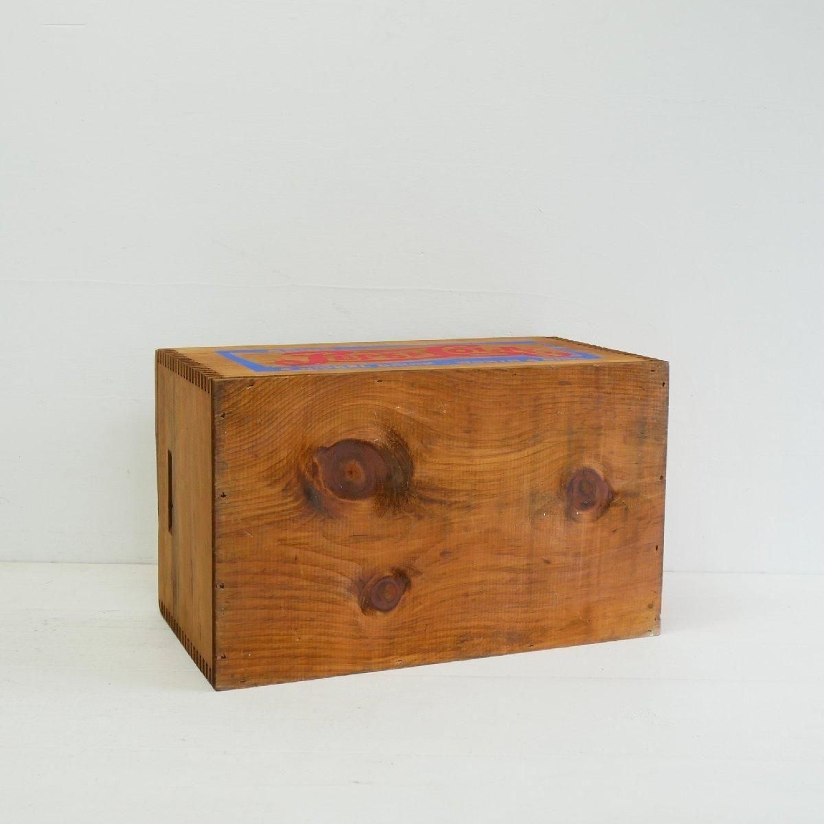 ふた付きで、ロゴの雰囲気や長い年月を経た木の質感が魅力です。
