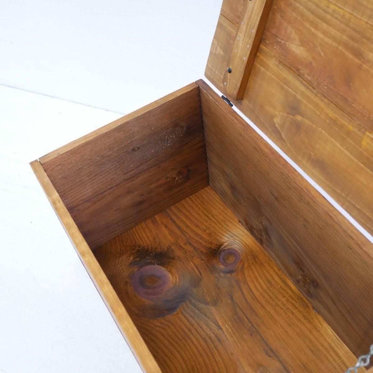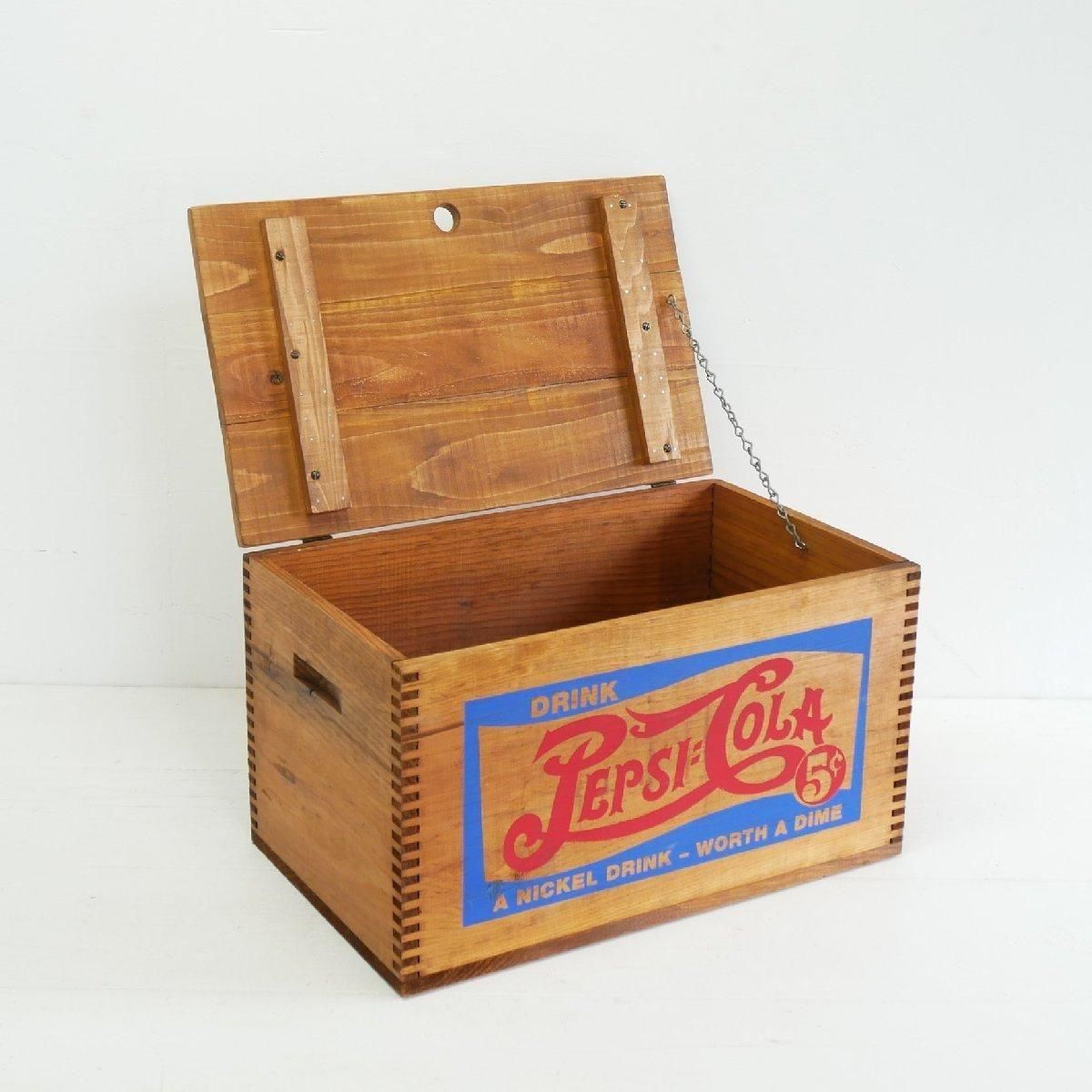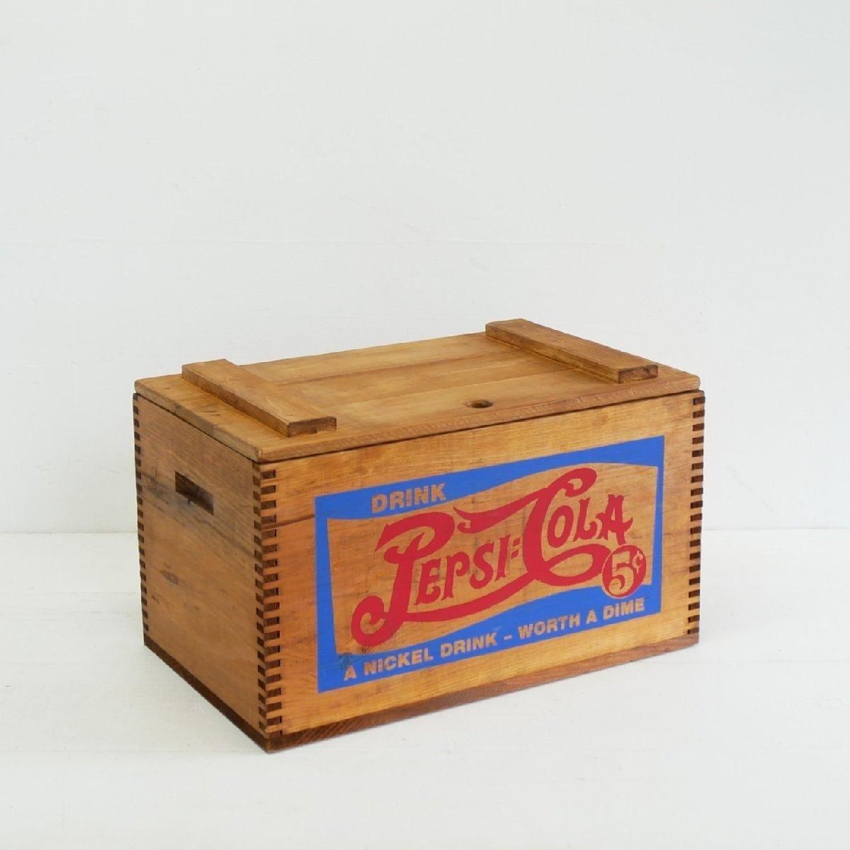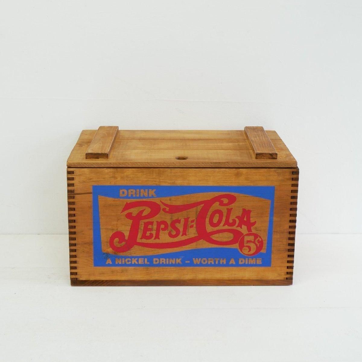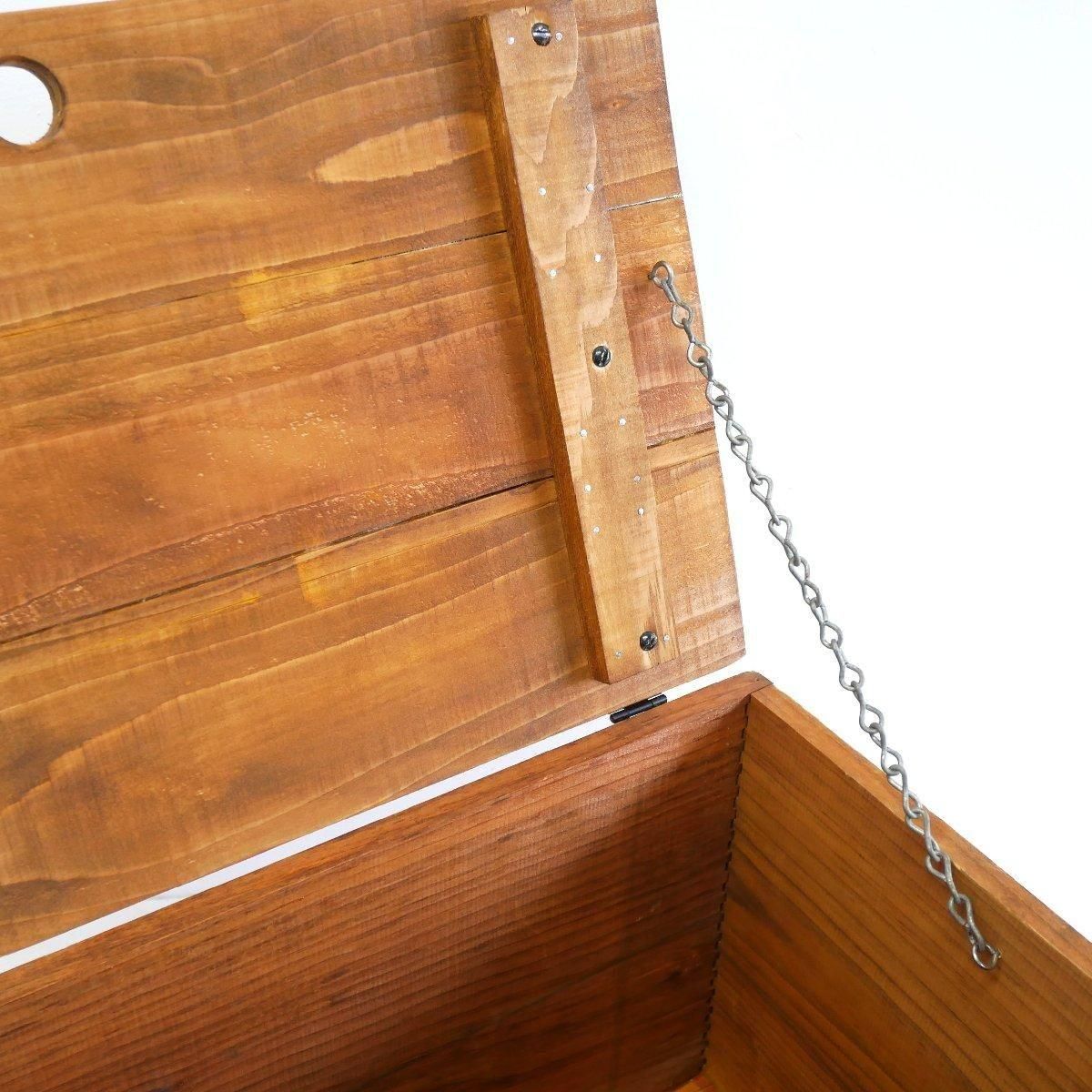 ふた付きで、ロゴの雰囲気や長い年月を経た木の質感が魅力です。