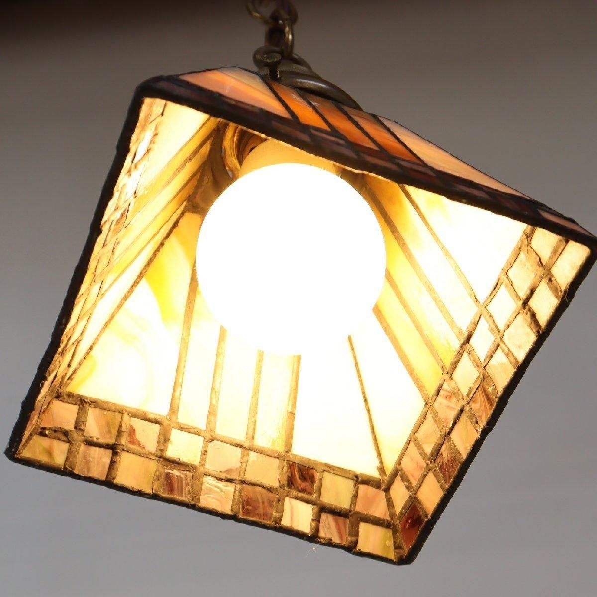 ヴィンテージの小ぶりなステンドグラスペンダントランプです。
