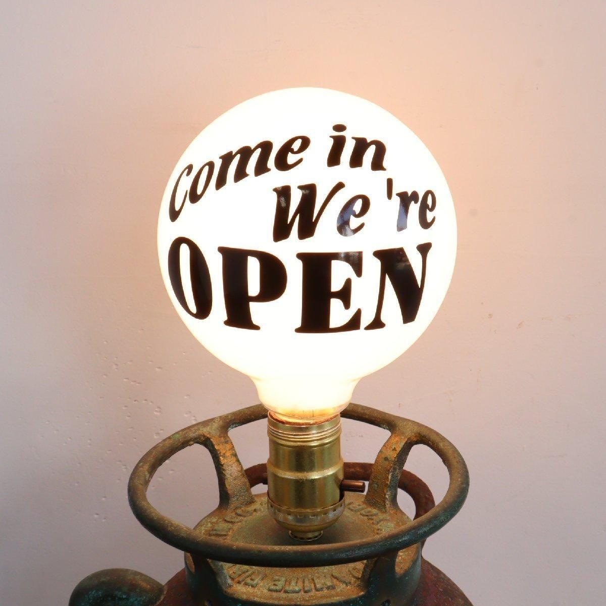 ボール電球には「Come in We 're OPEN !」の文字(カッティングシート)を貼っています。