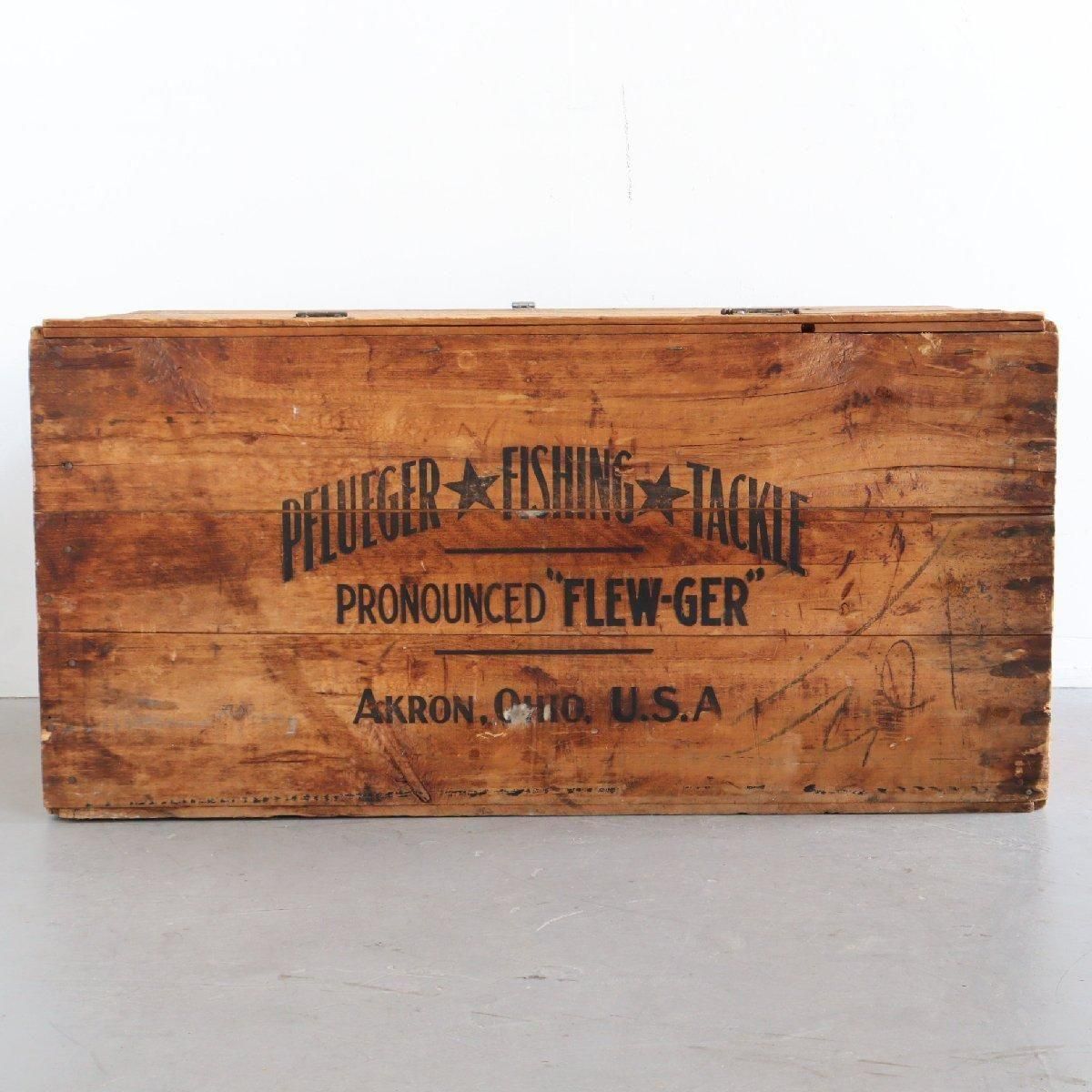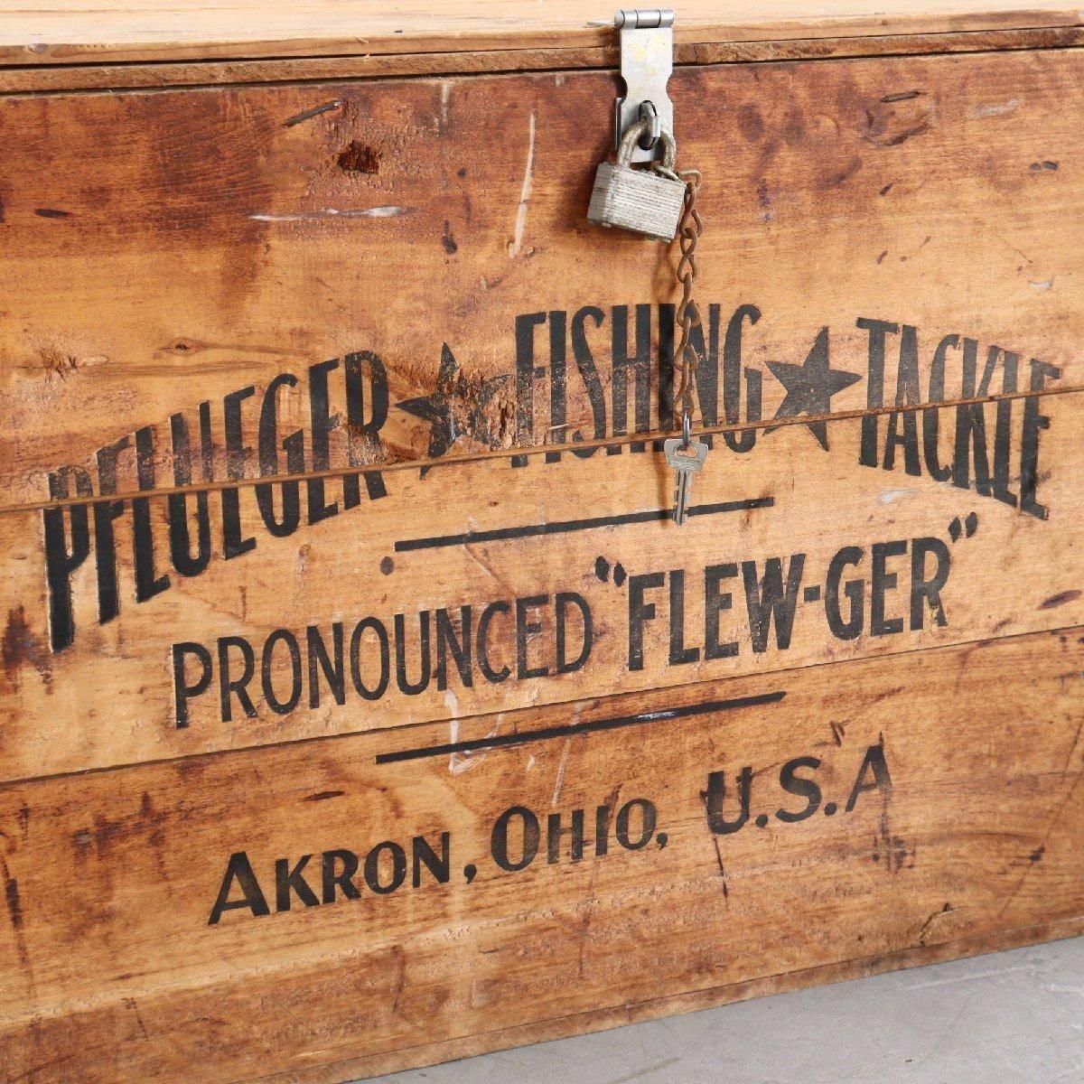 とても希少な【Pflueger/フルーガ】社のヴィンテージ 蓋付き木箱です。