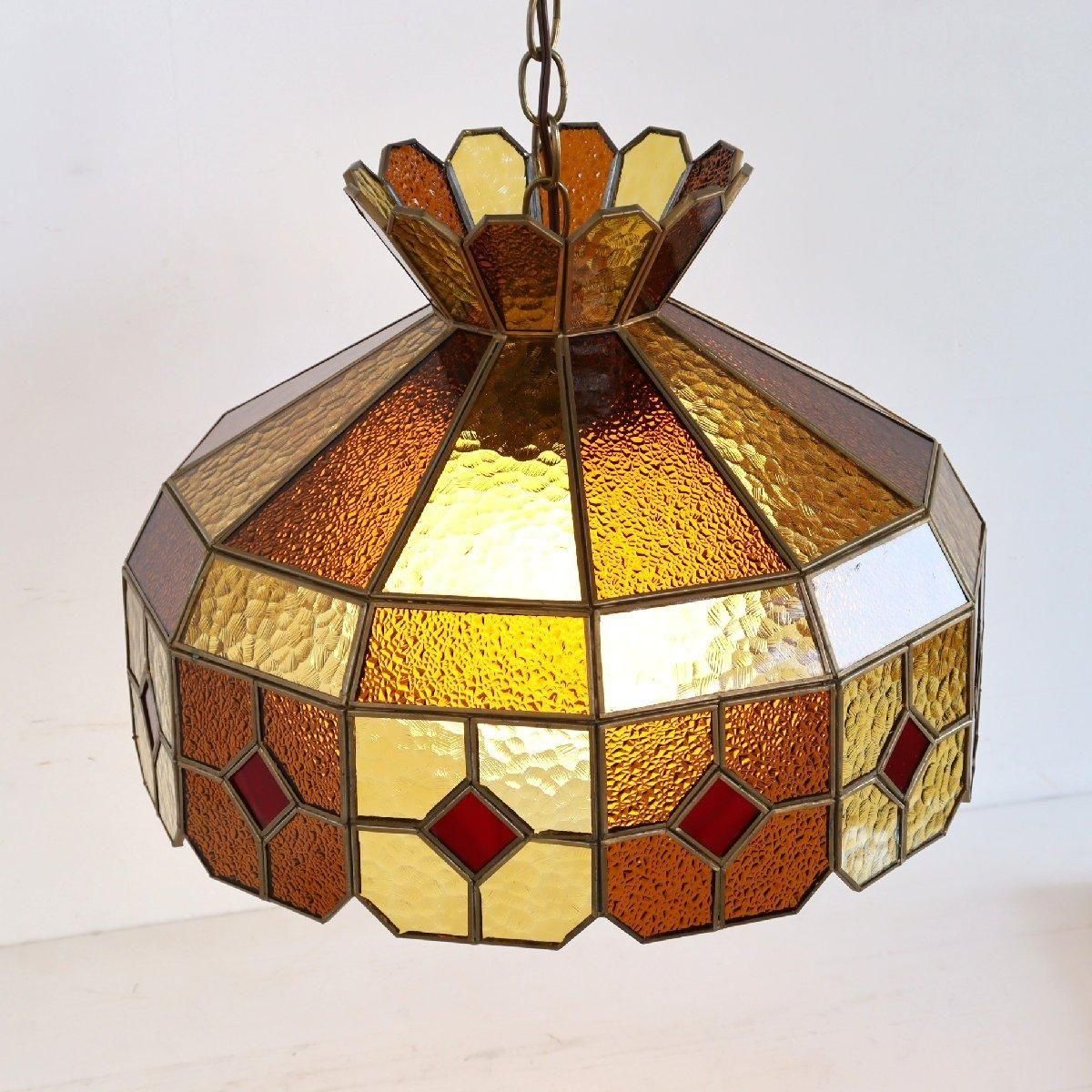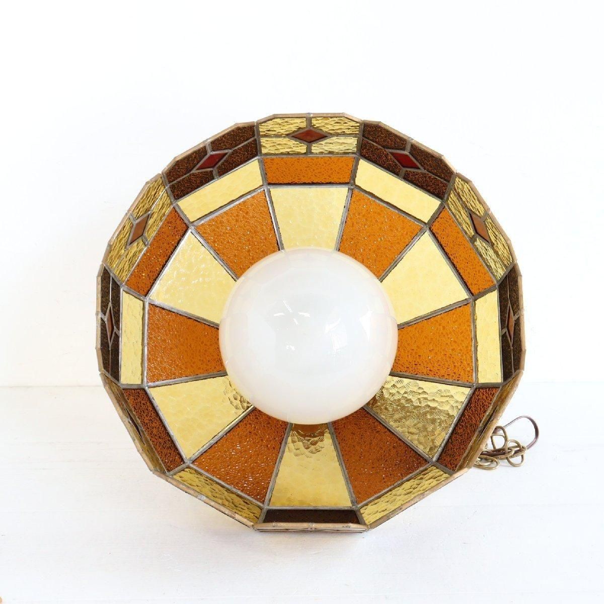 推定1970年代頃の、ヴィンテージのステンドグラスペンダントランプです。