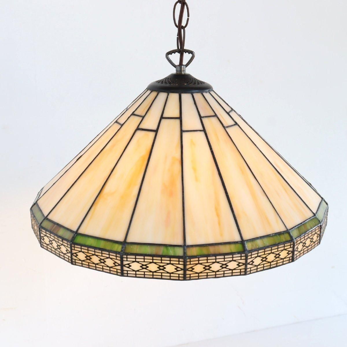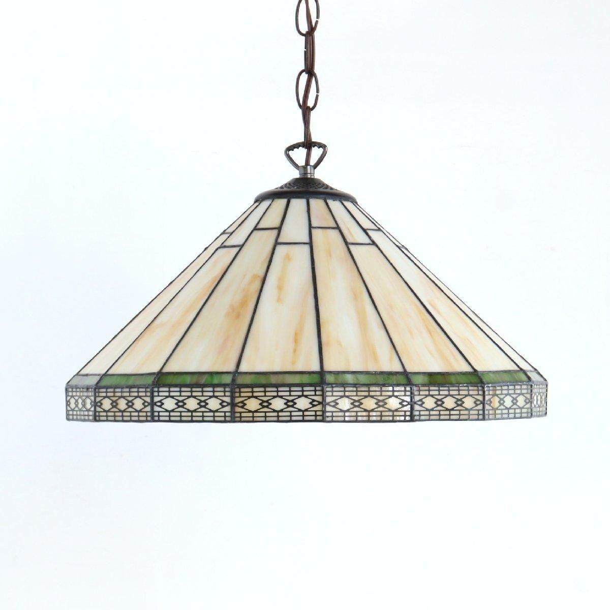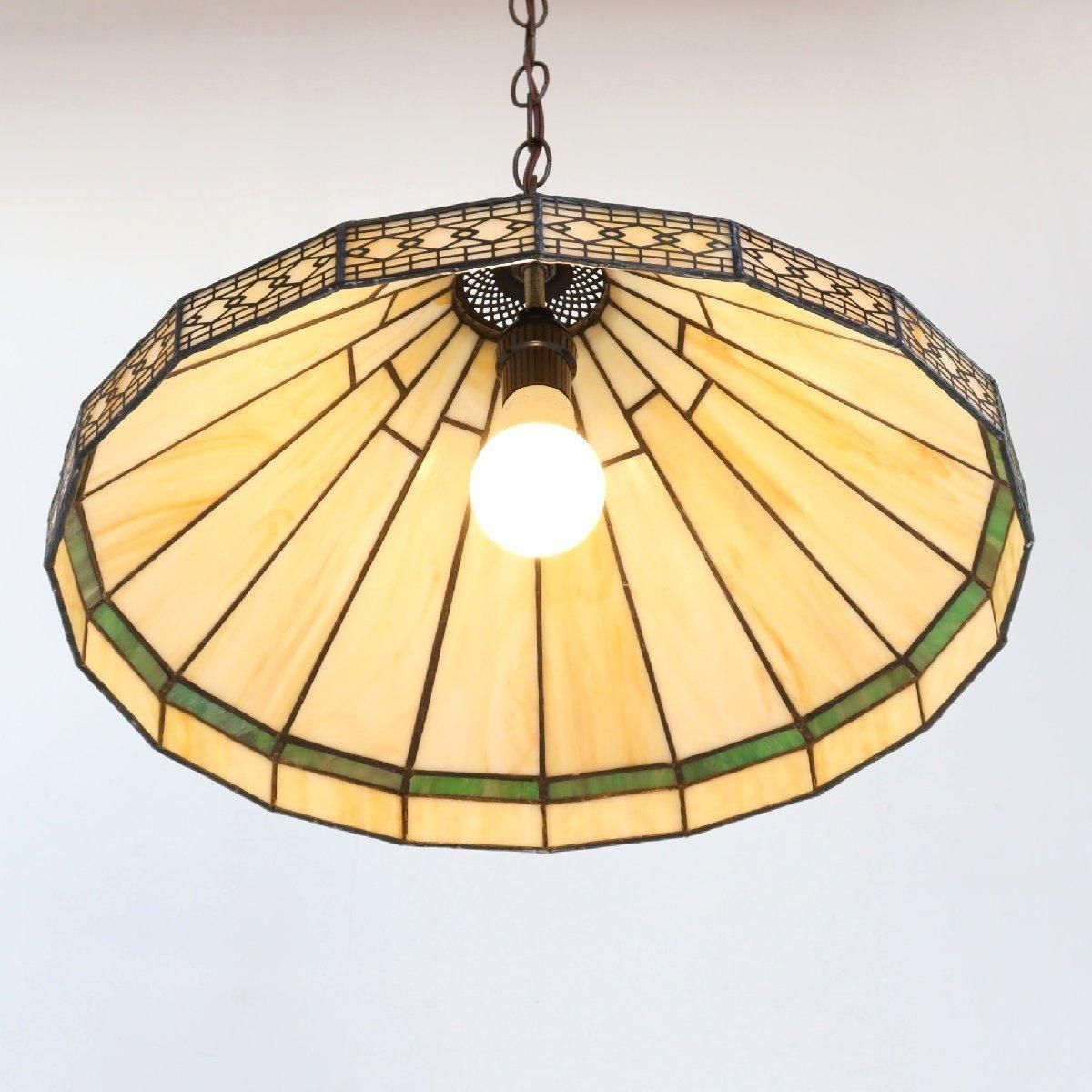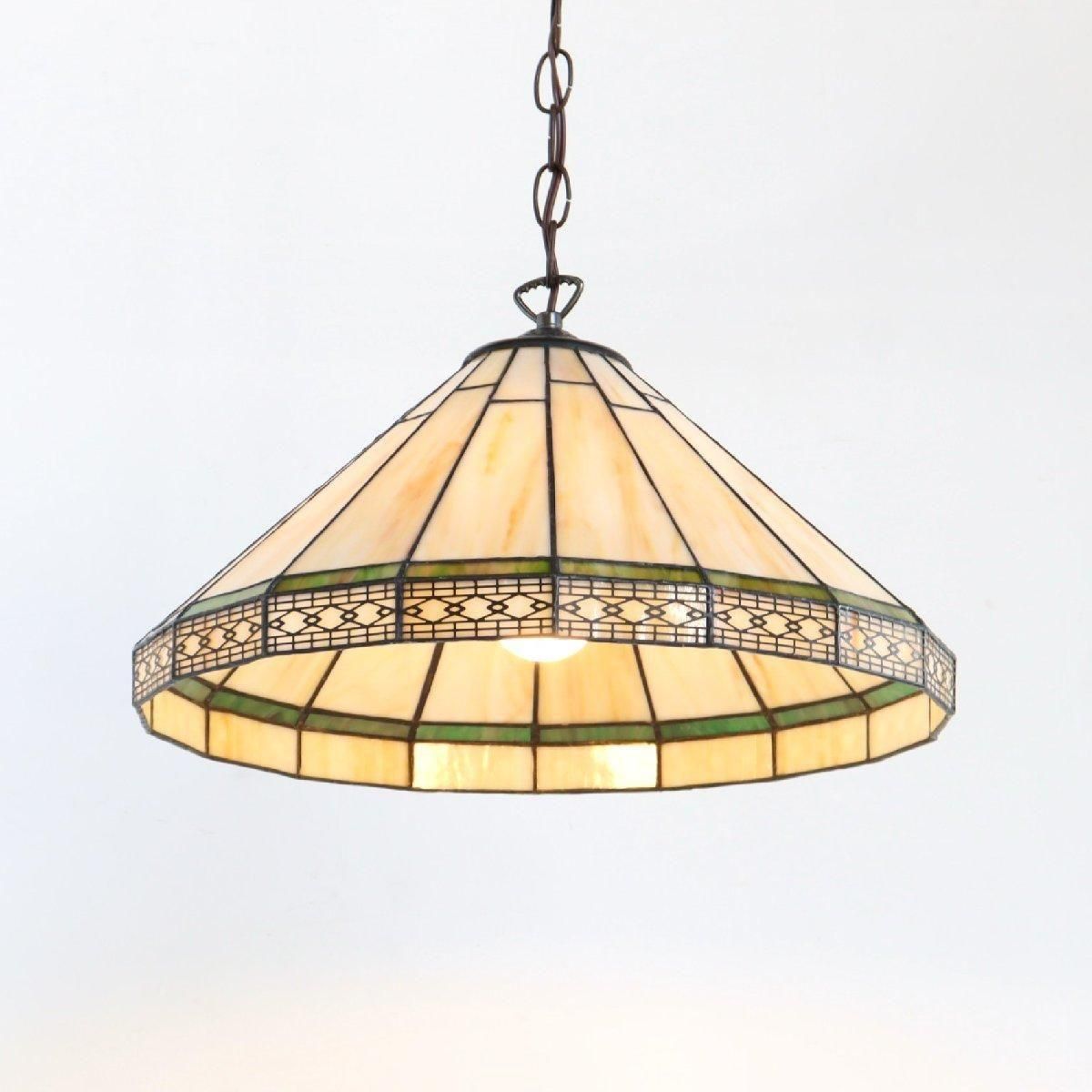 落ち着いた色味で、グリーンのガラスとサイドの装飾がアクセントになっています。