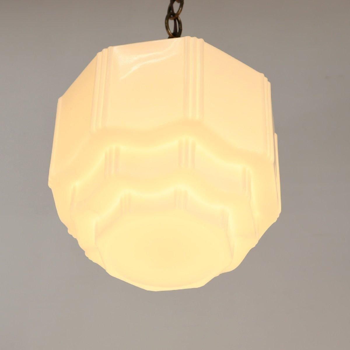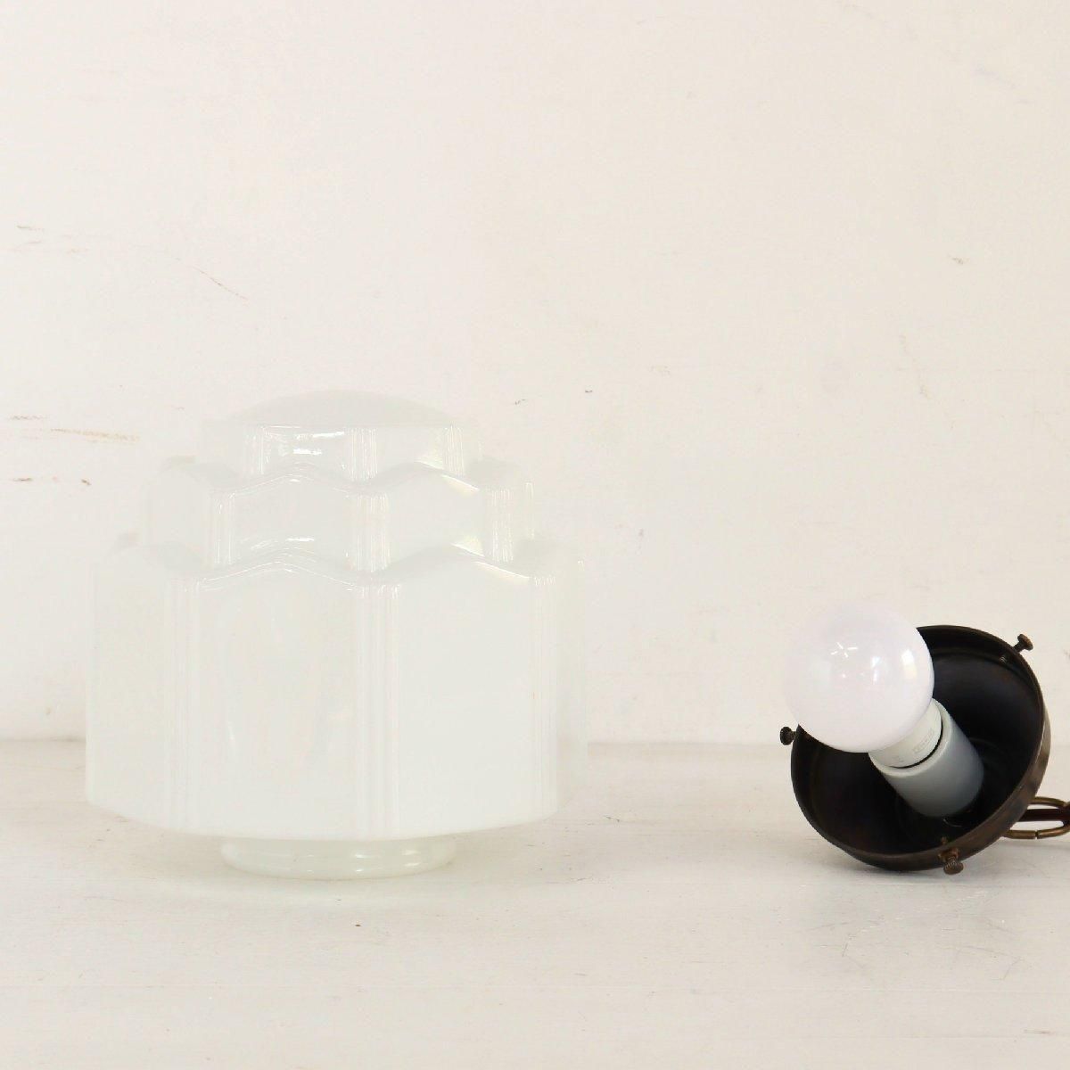 推定1930年代から1950年代頃の アールデコデザインのミルクガラス ペンダントランプです。