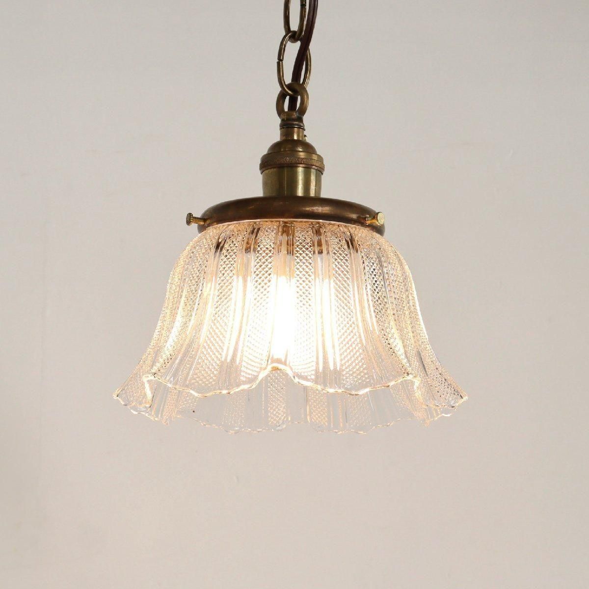 アンティークのフリルシェードのペンダントランプです。