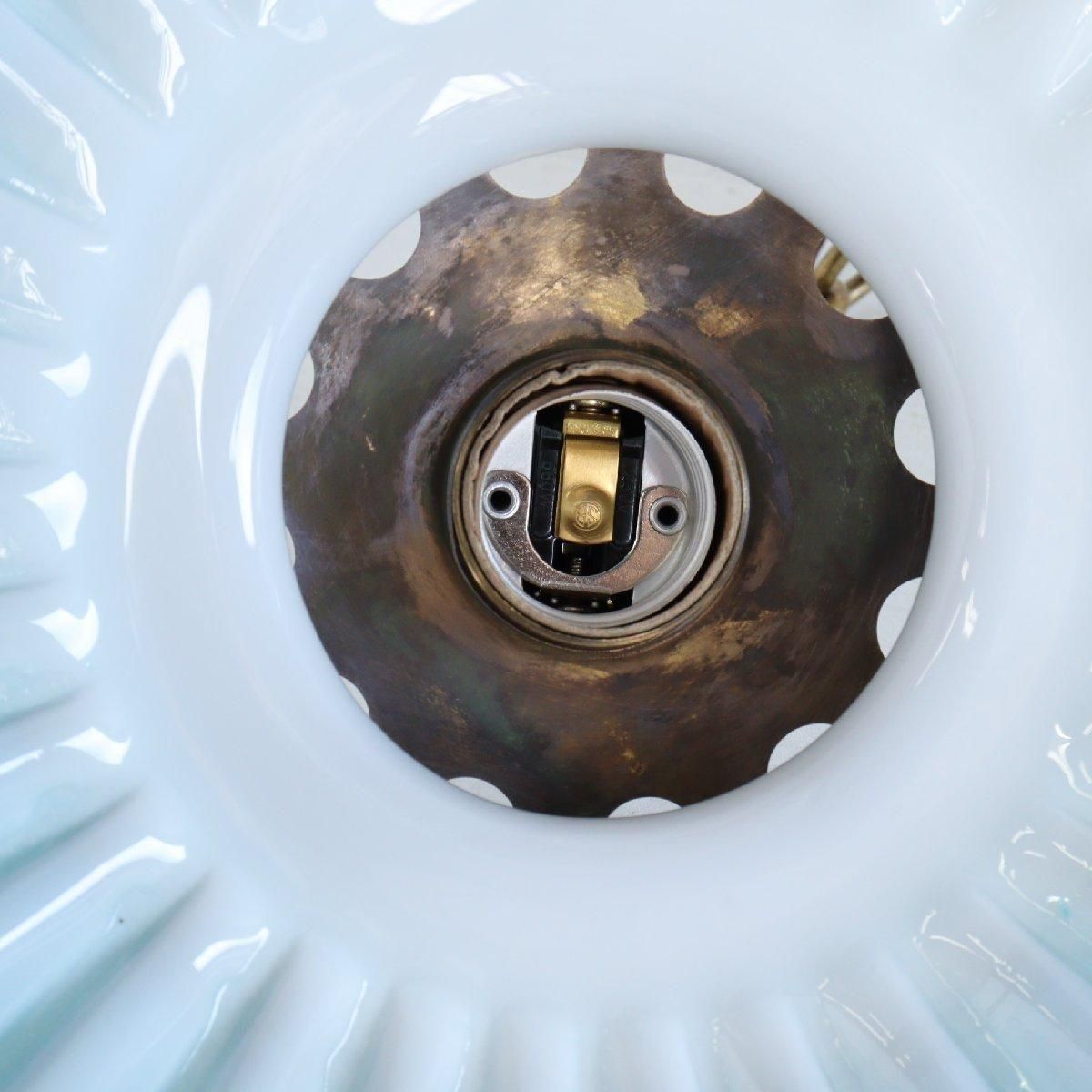 推定1930年から40年代頃のヴィンテージのフリルガラスペンダントランプです。