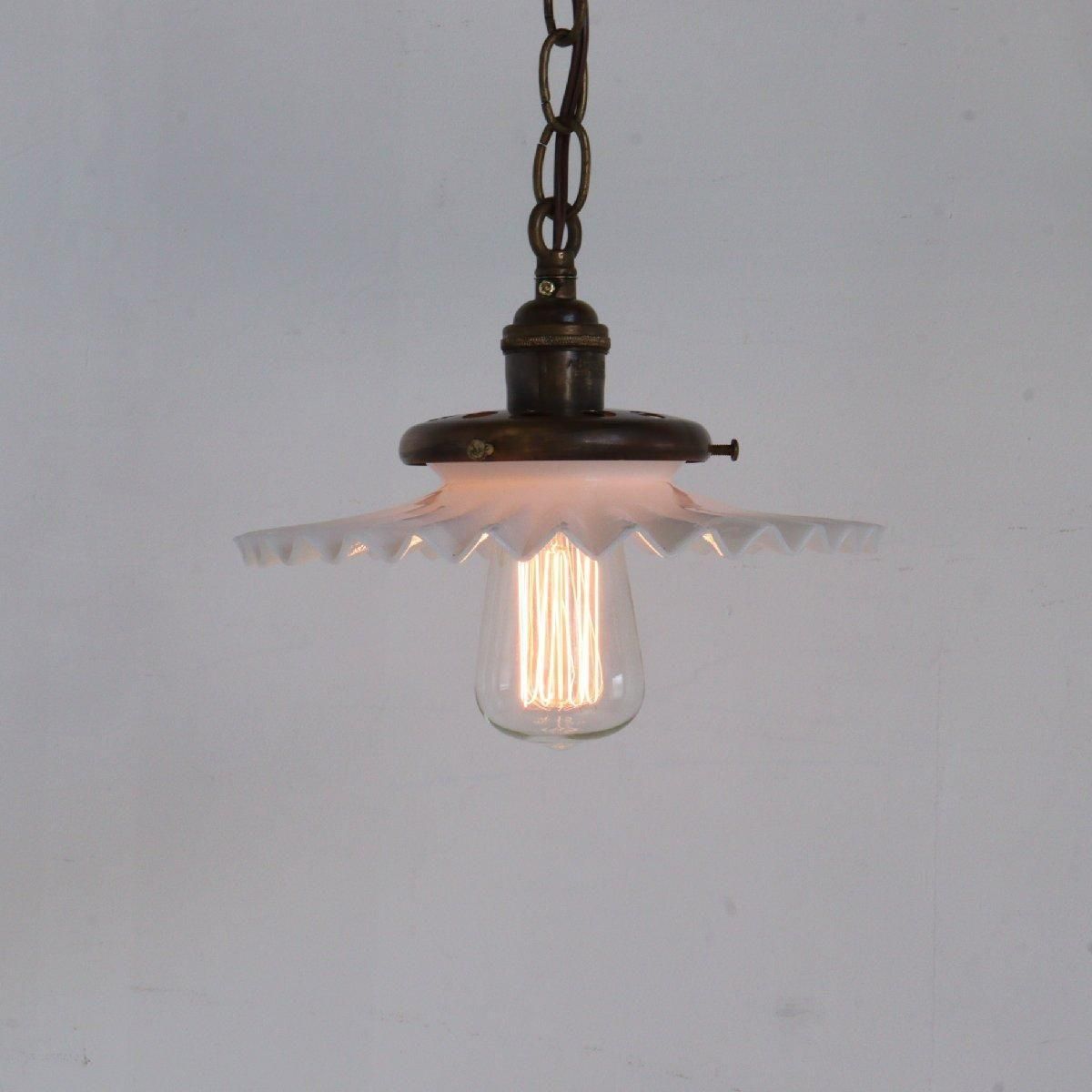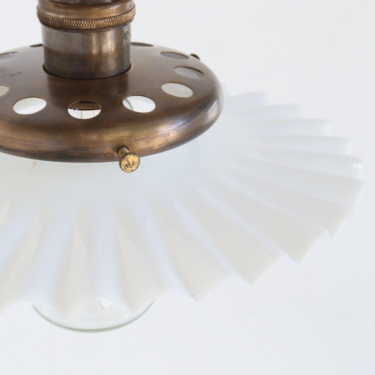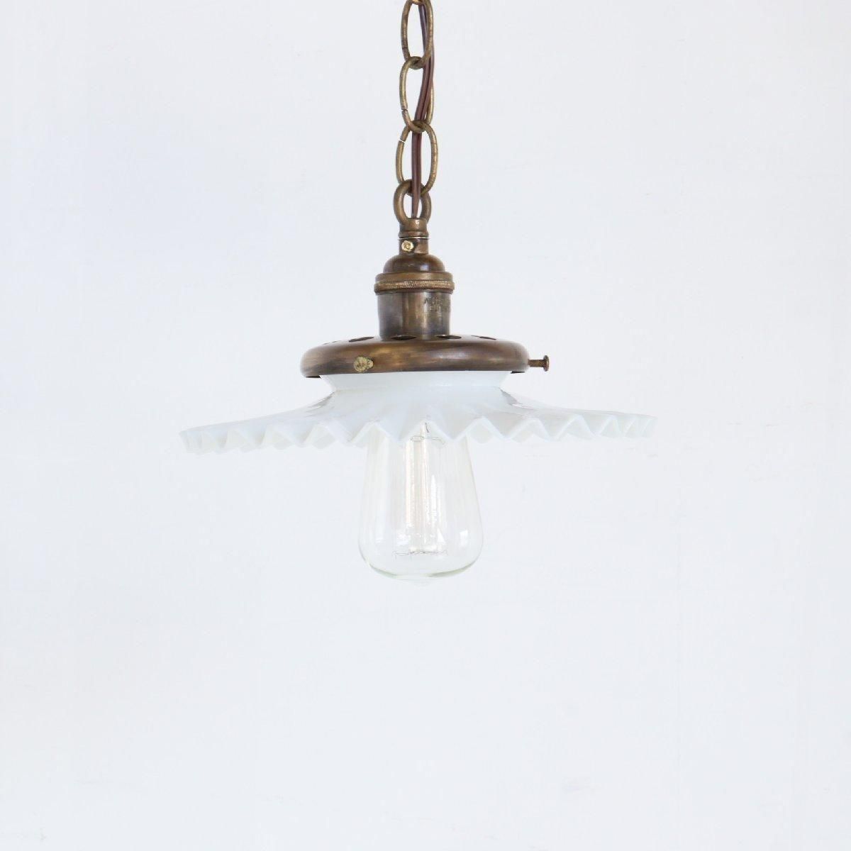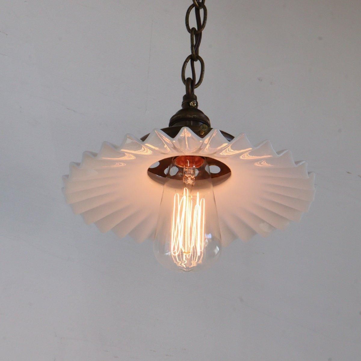 推定1930年から40年代頃のヴィンテージのフリルガラスペンダントランプです。