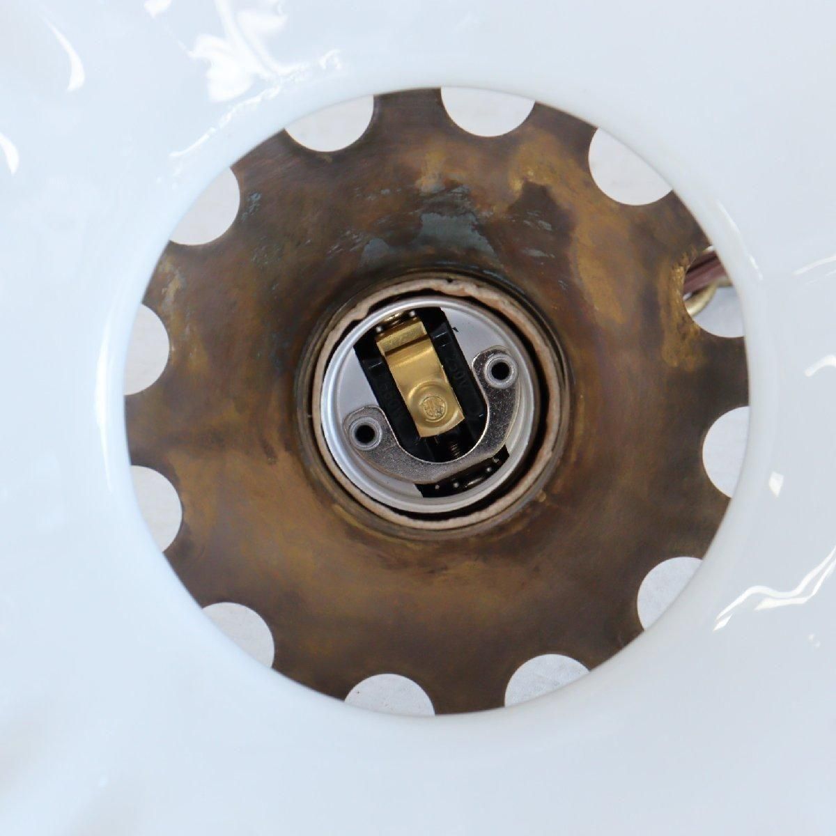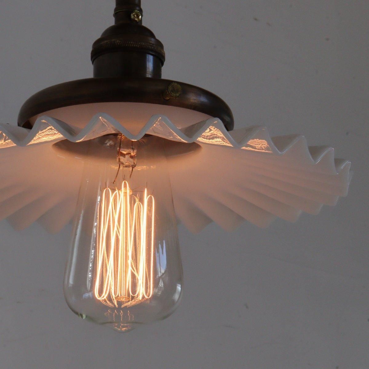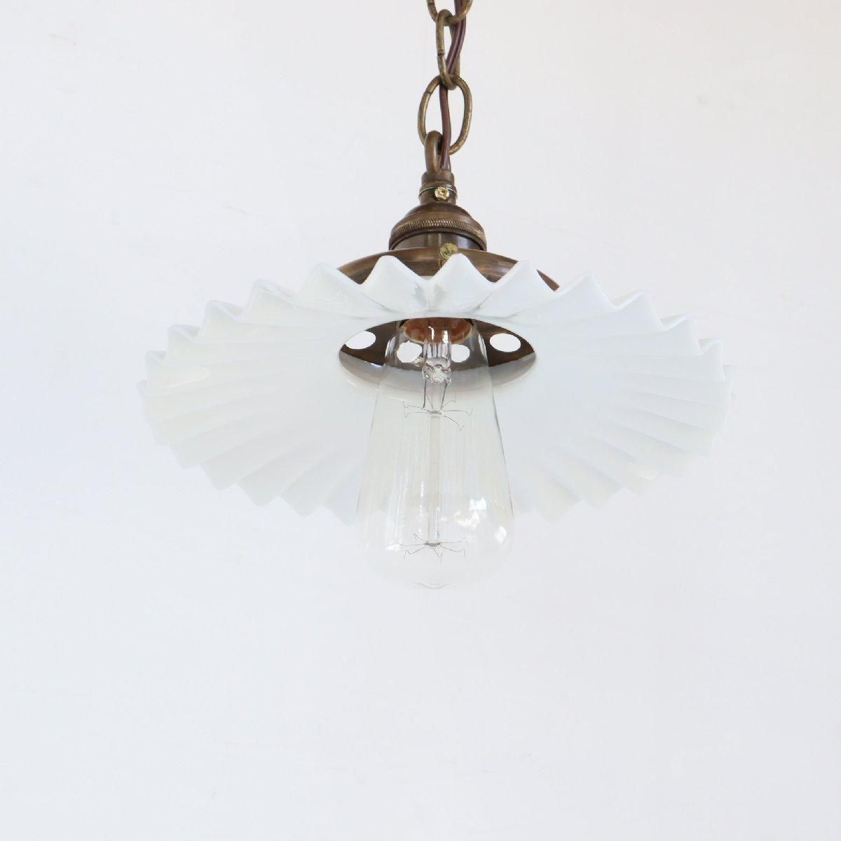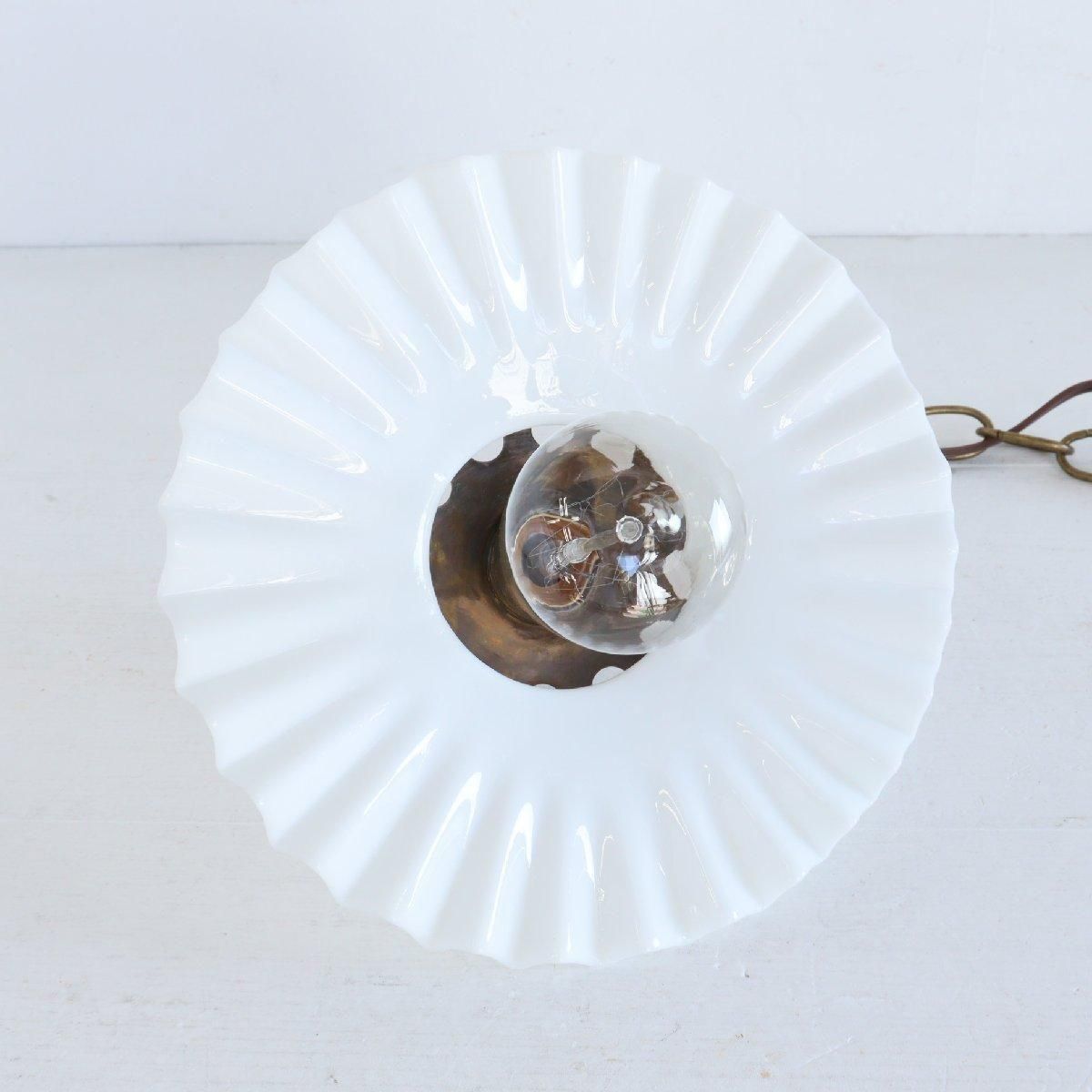 フリル型のシェードがとても魅力的で、ホワイトカラーのガラスが、優しく温かみのある光を灯してくれます。