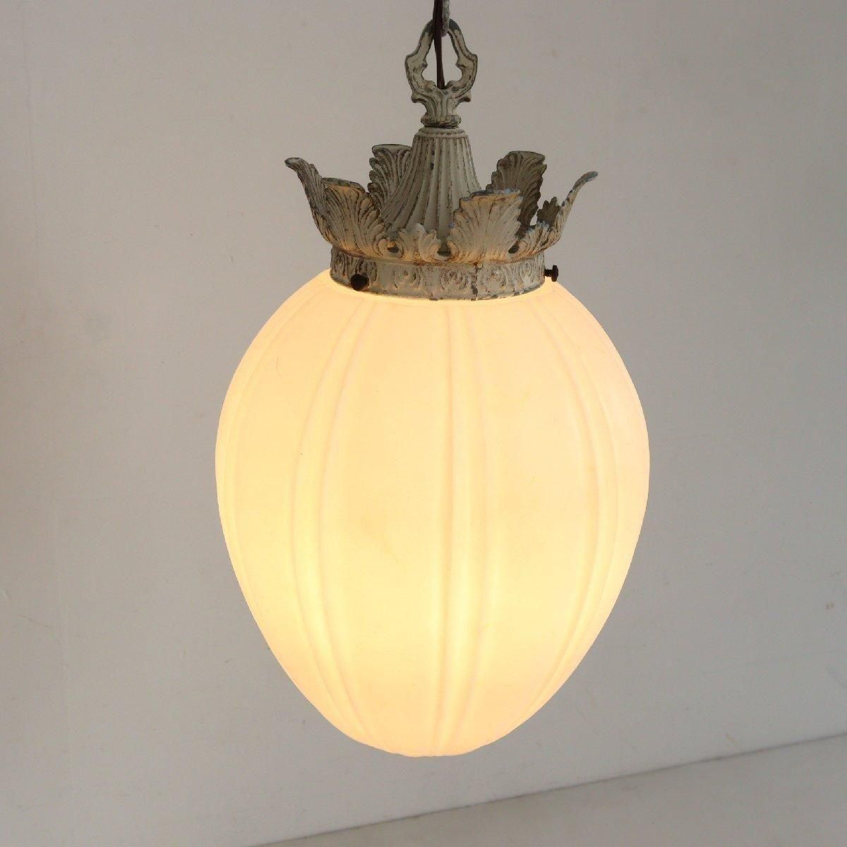 ヴィンテージのミルクガラスのペンダントランプです。
