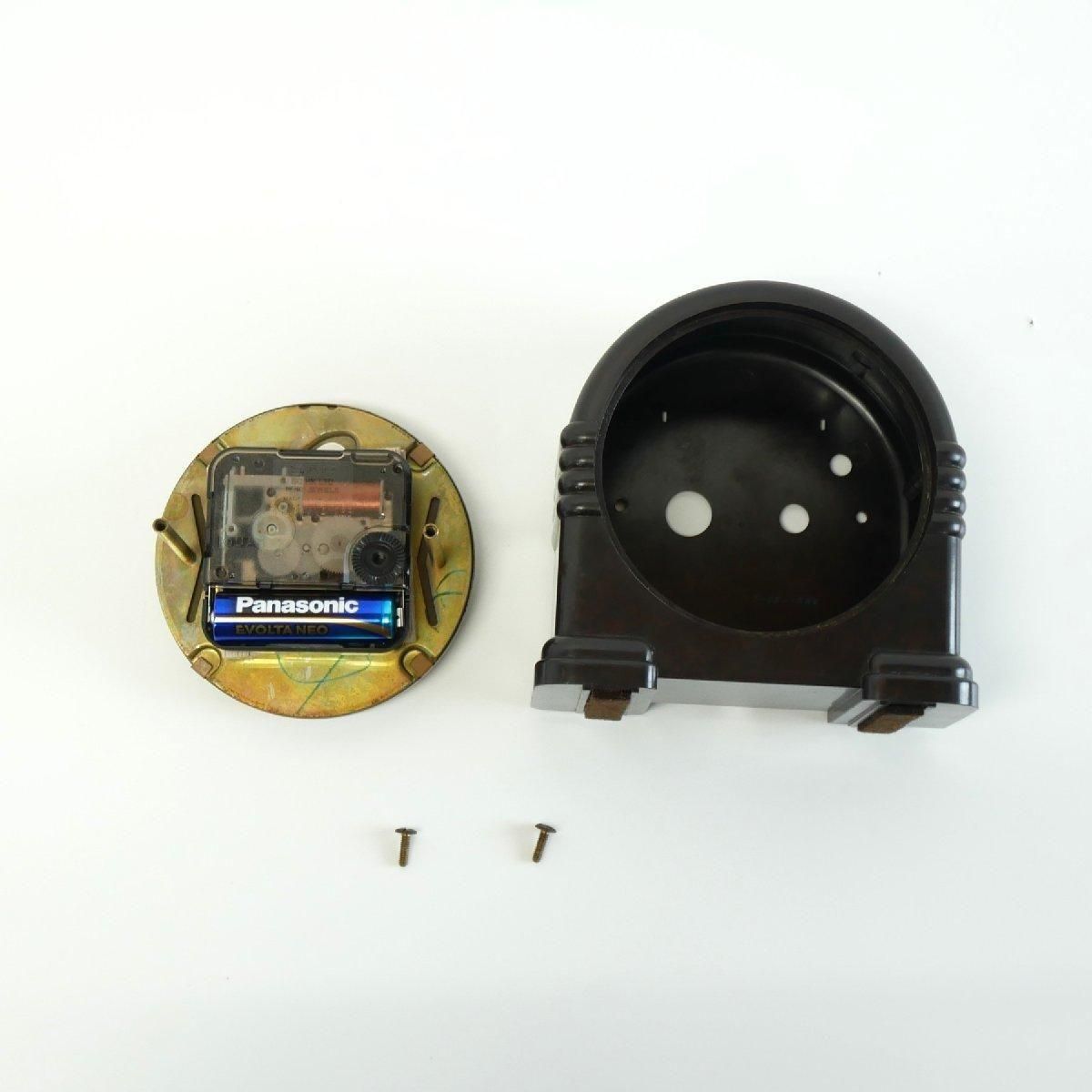 元はアラーム時計ですが、ムーブメントを交換したことにより、その機能はありません。数字の印刷部分にひび割れがあります。変色や細かいキズなど、経年による劣化があります。