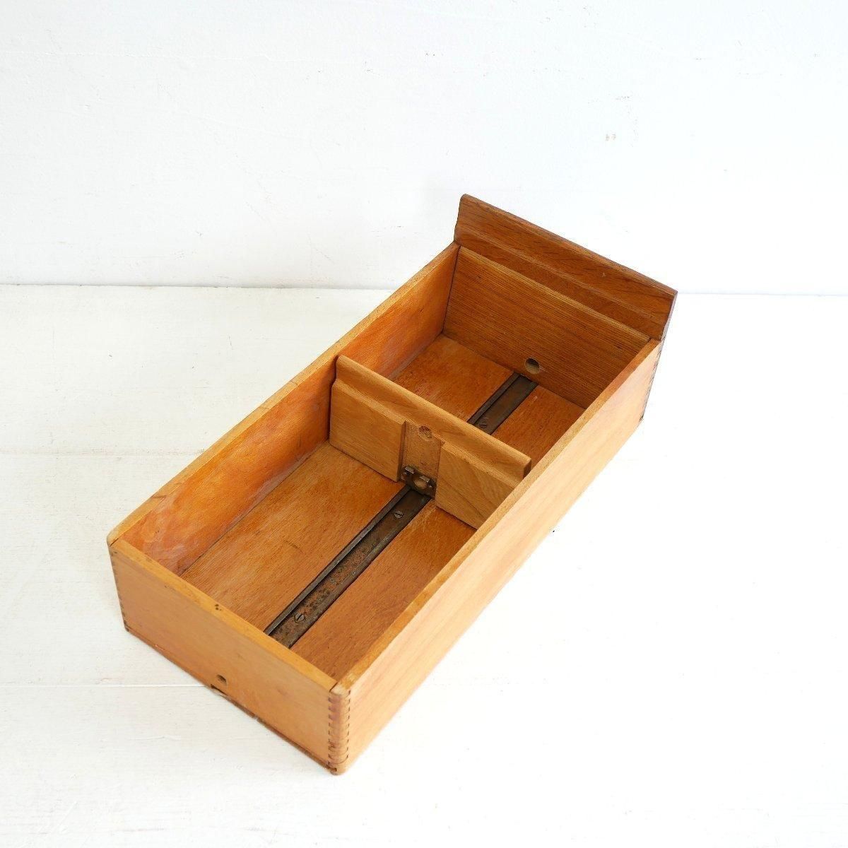 引き出しはスムーズです。仕切りの金具が破損していますが使用可能です。取っ手はオリジナルではありません。前面左下にひび割れ(修復済み)や黒ずみ、細かいキズ、カケ、取れない汚れなど、経年による劣化があります。