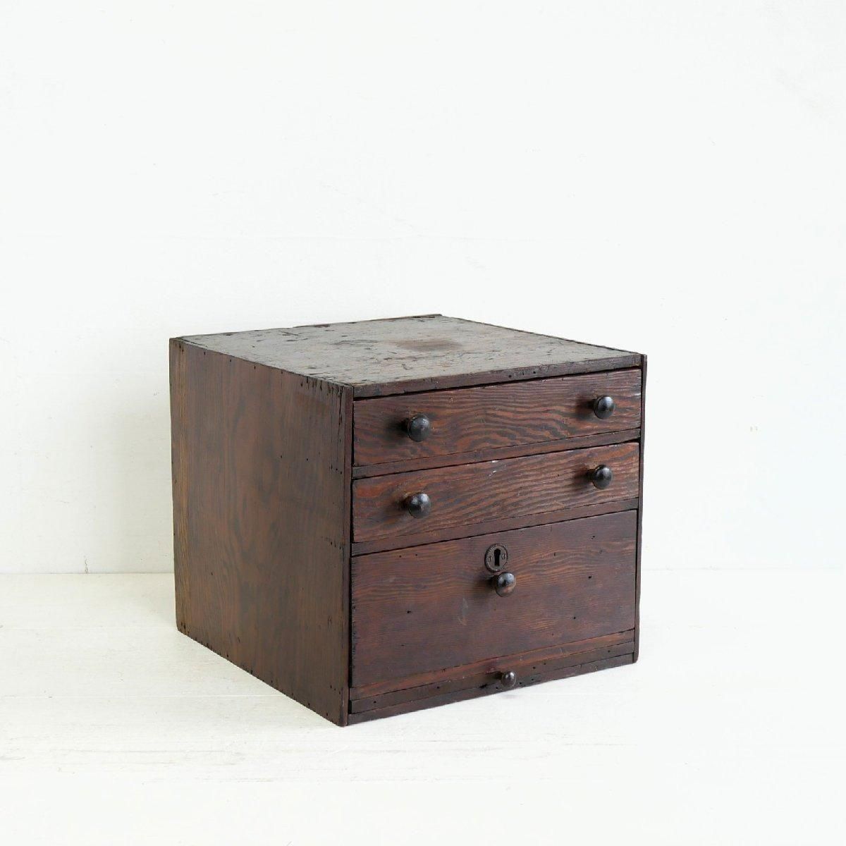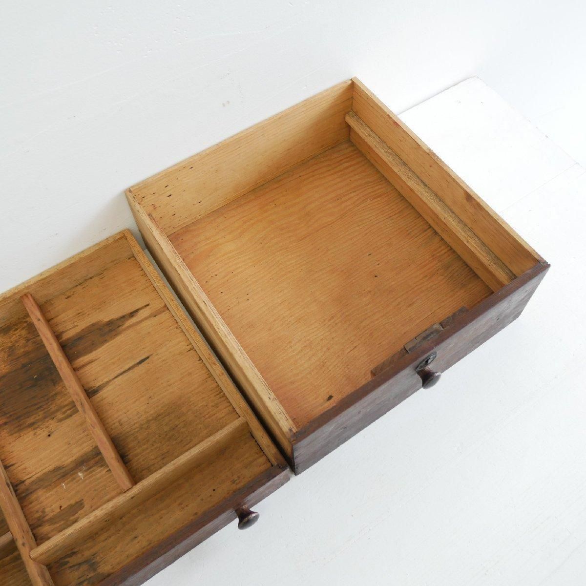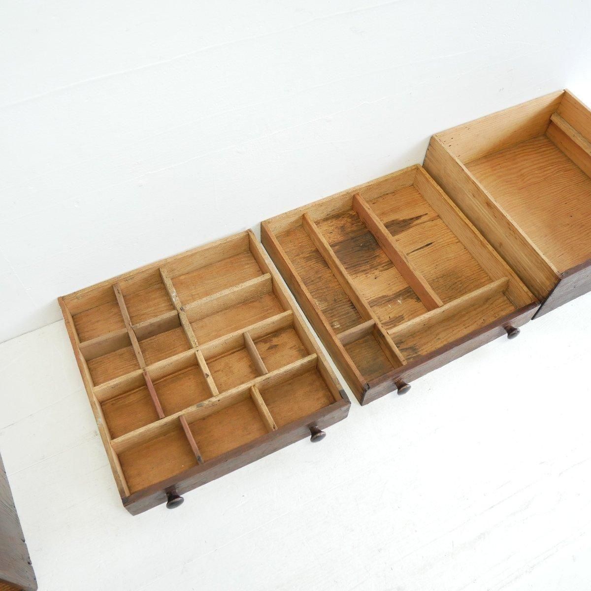 木製の3段キャビネットで、仕切りがあり、一番下にトレイも入っています。