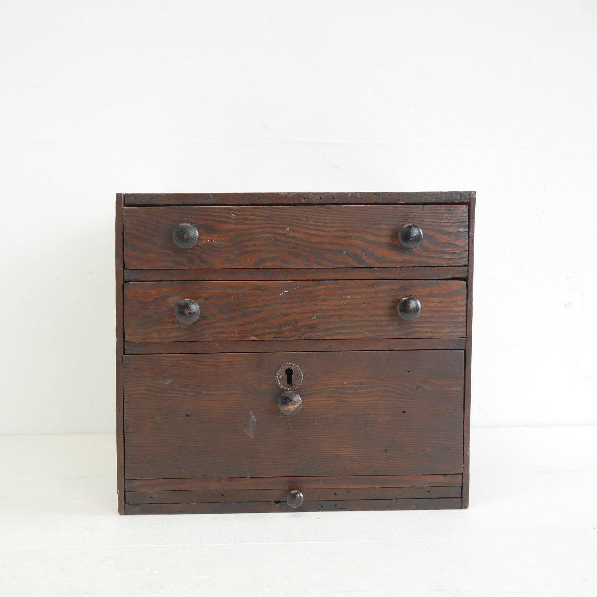 引き出しはすべてスムーズです。鍵はありません。黒ずみや細かいキズ、カケ、取れない汚れなど、経年による劣化があります。