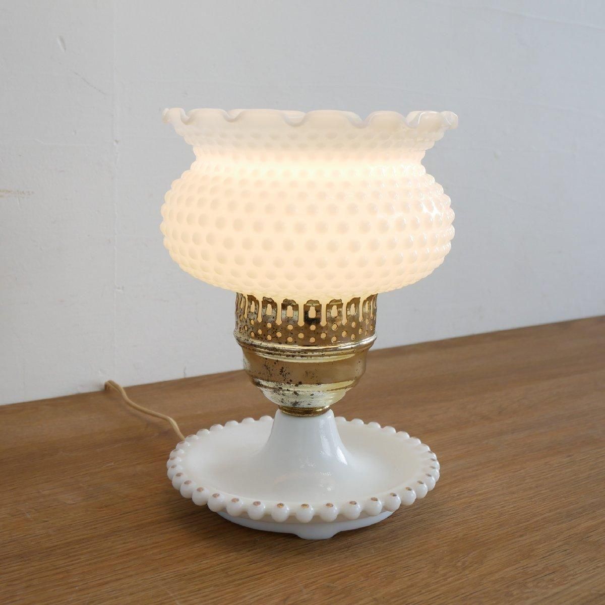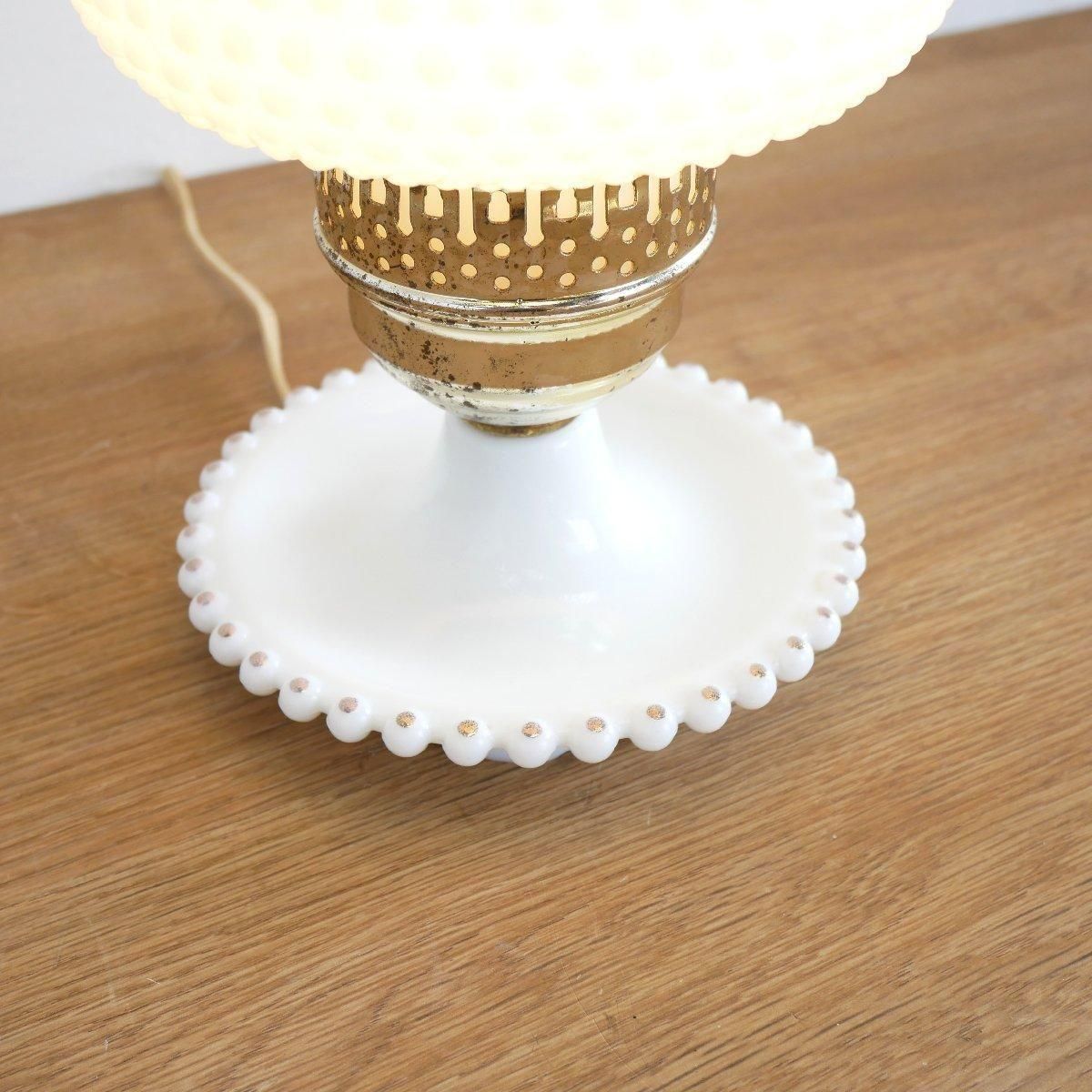 1960年代のホブネイルミルクガラス テーブルランプです。