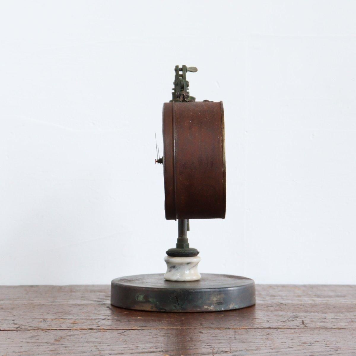 時計と土台は鉄、文字盤はプリントされた紙が貼られています。