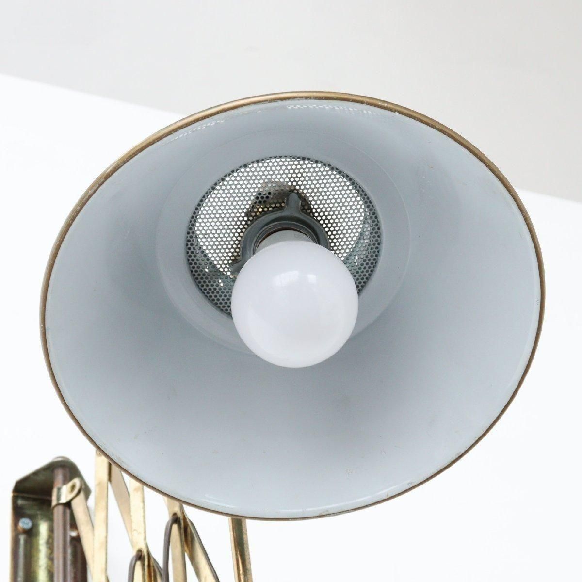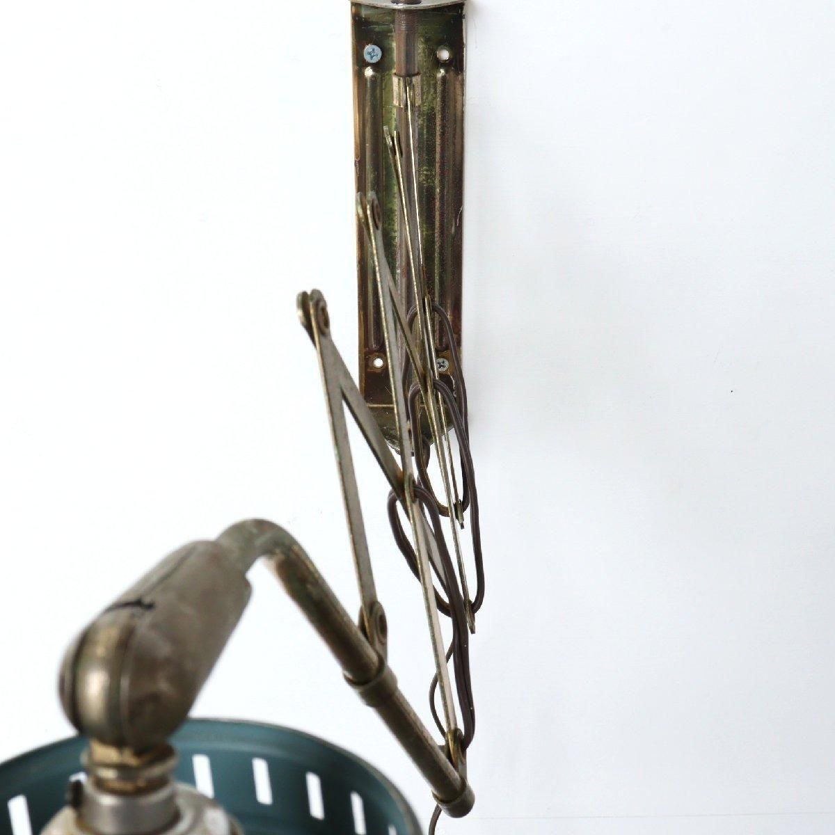 伸縮可能でべースを支点に180度アーム部分は動き、シェードの角度も写真6枚目のシェード側ボルトを緩めることで、調整可能です。