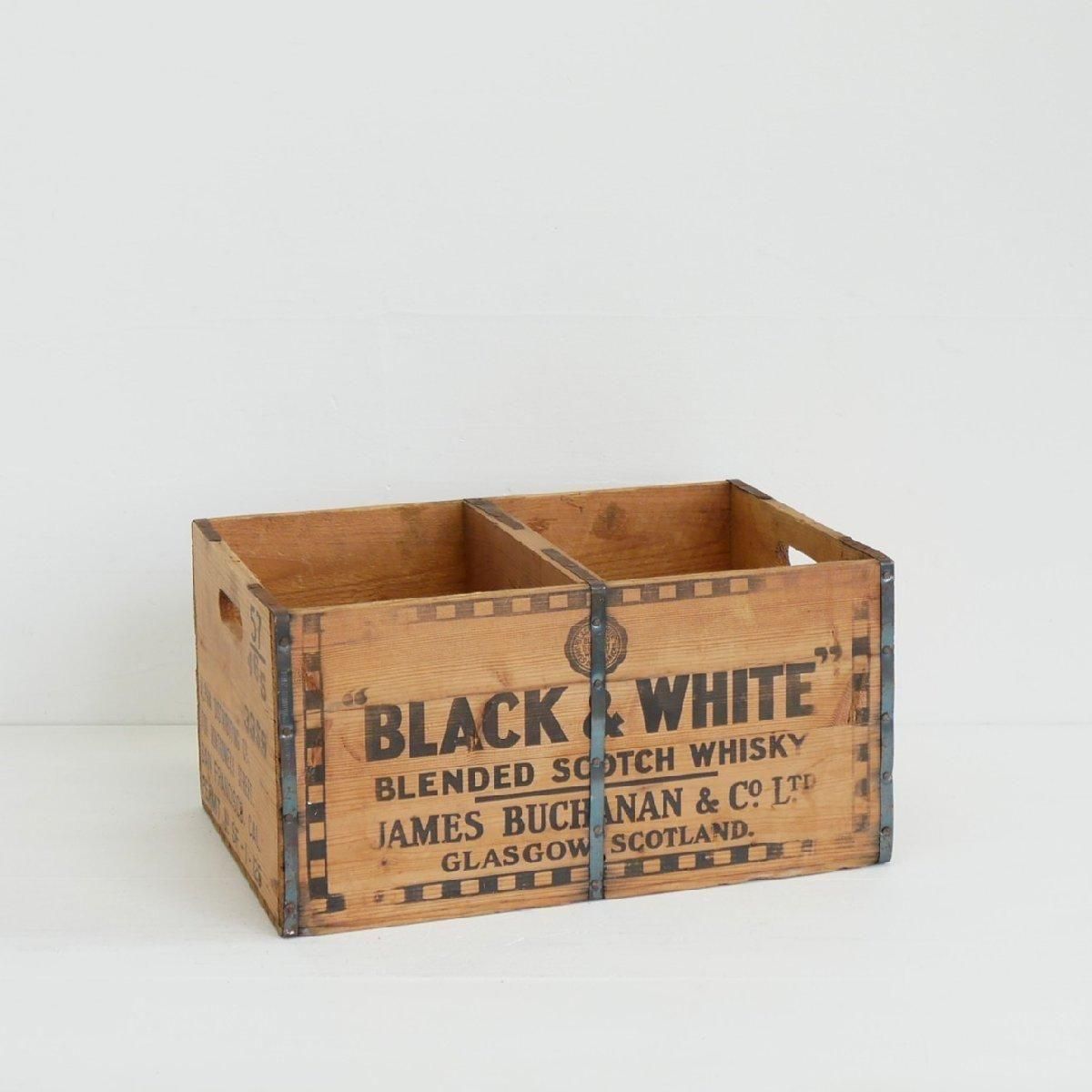 スコッチウイスキー「BLACK & WHITE」のヴィンテージ木箱です。