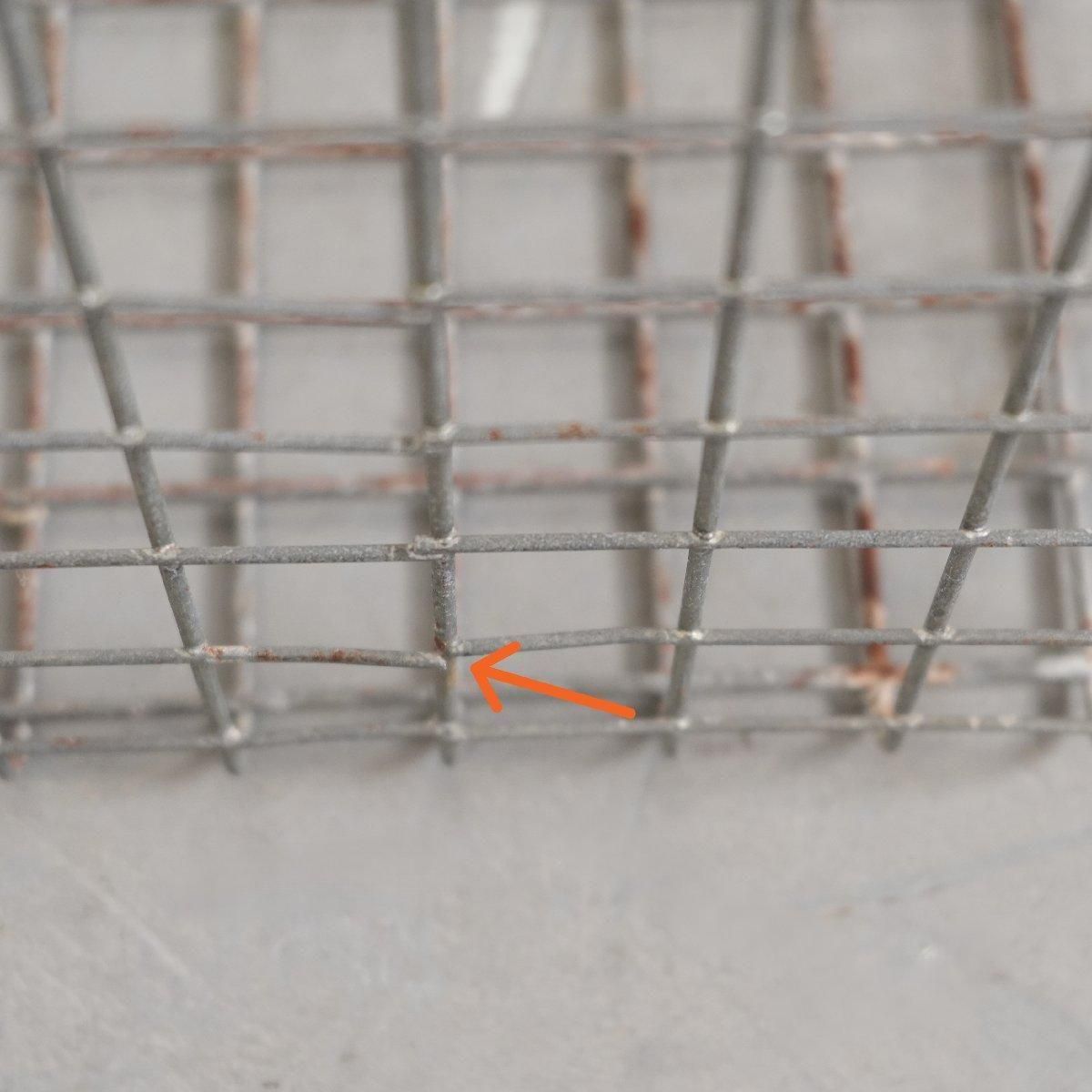 ワイヤーの溶接外れ(写真5枚目)、サビや取れない汚れ、ワイヤーの曲がり、キズ、歪み、経年による劣化があります。