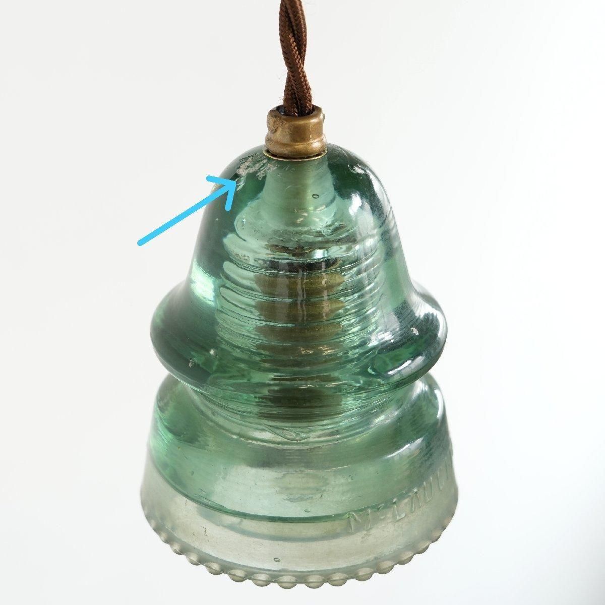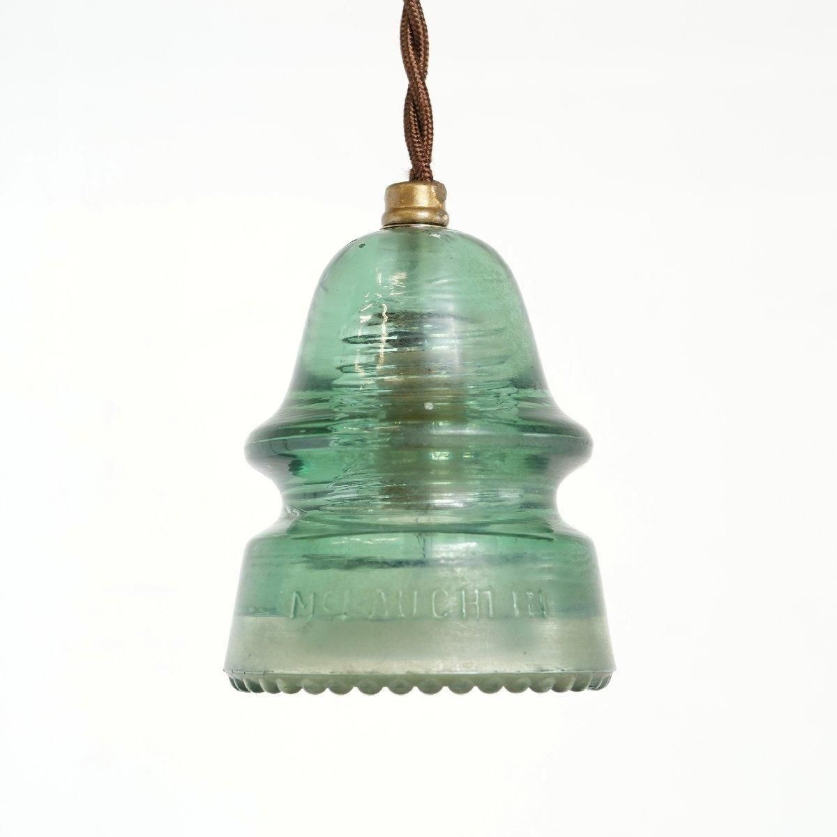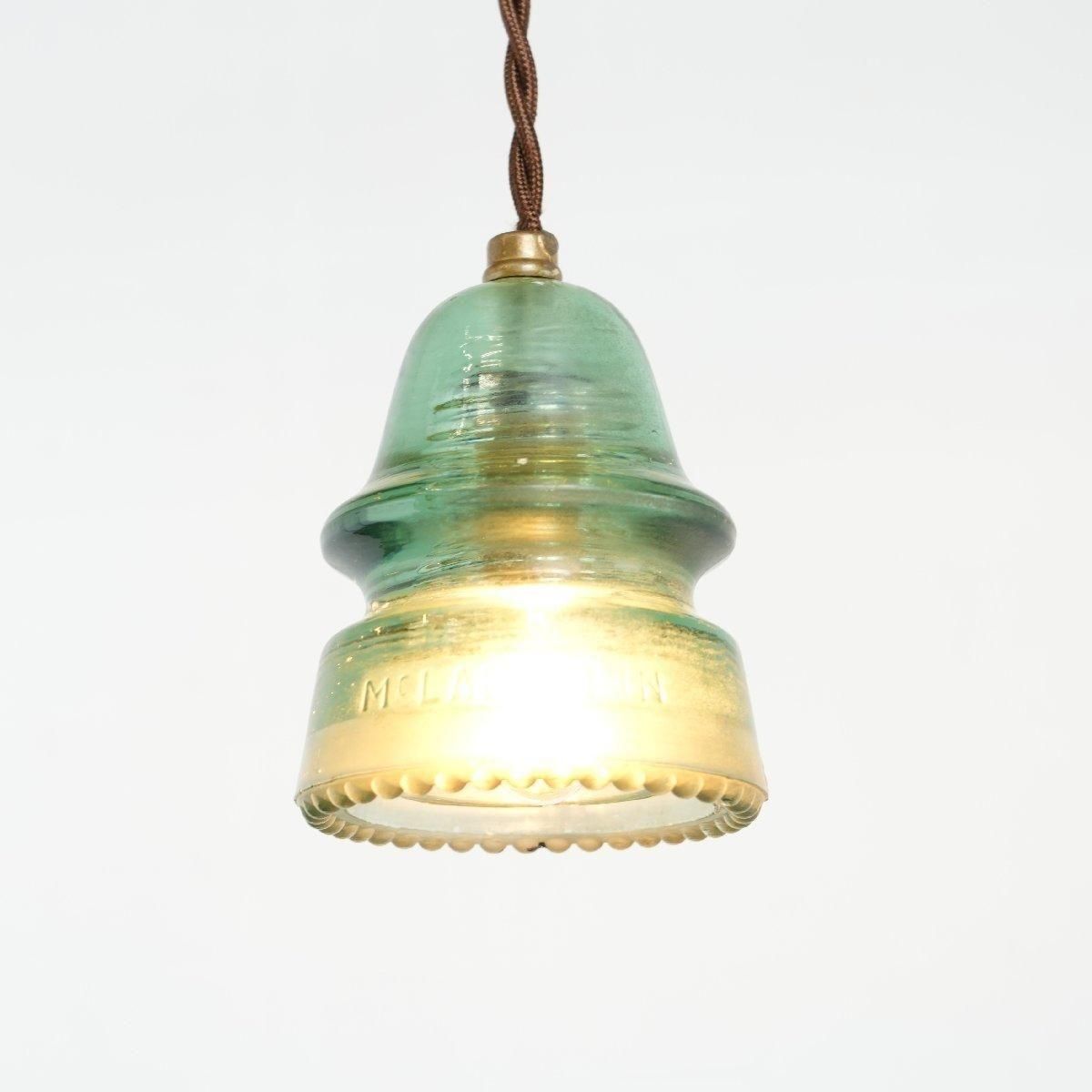 アメリカの電柱で使われていたインシュレーターを、シェードに加工したペンダントランプです。