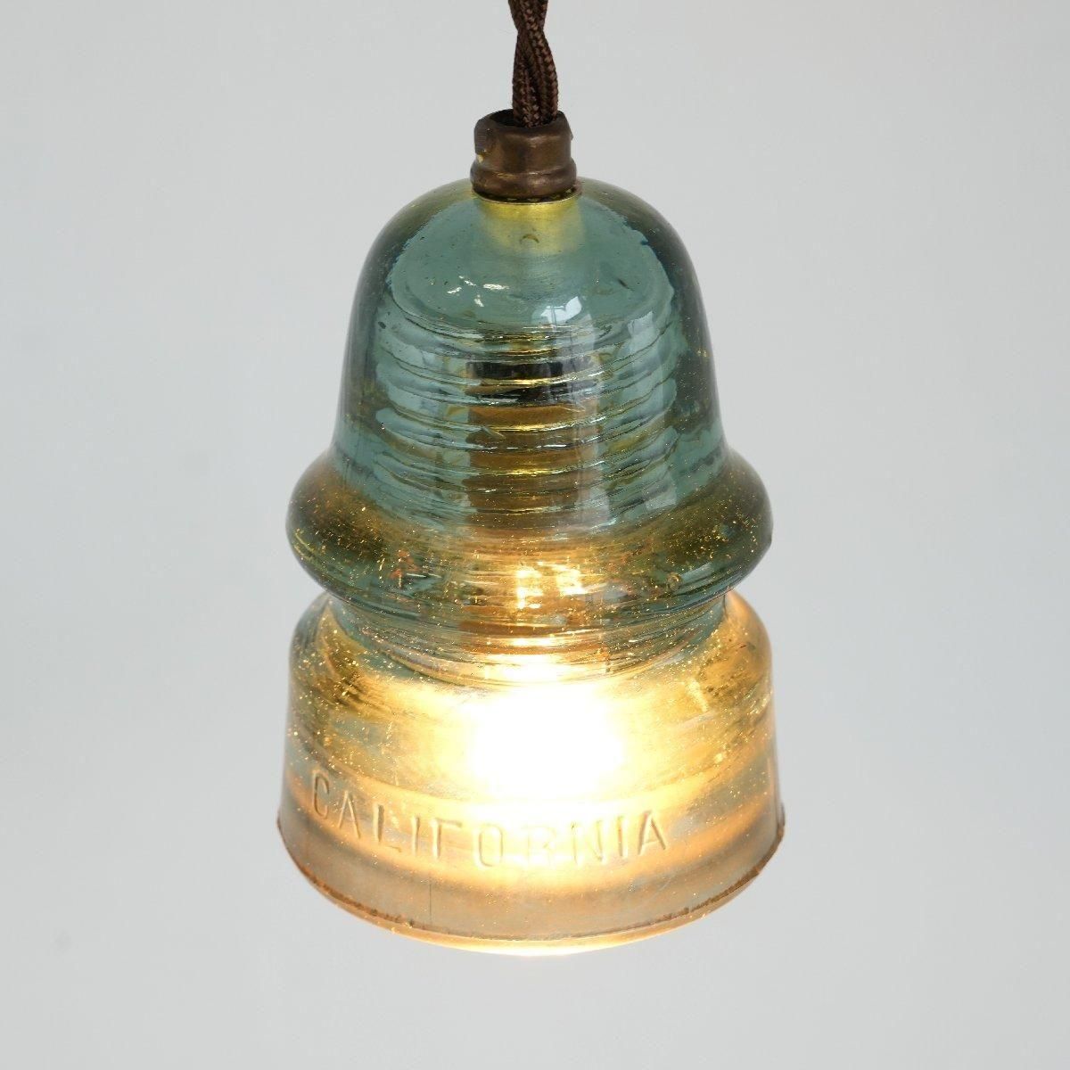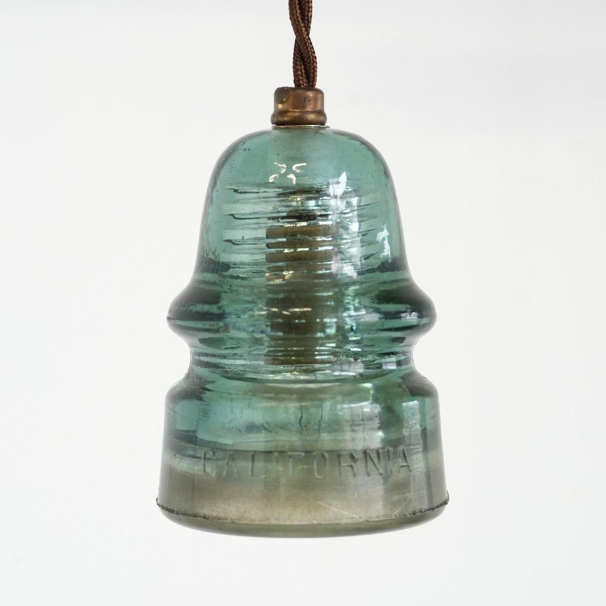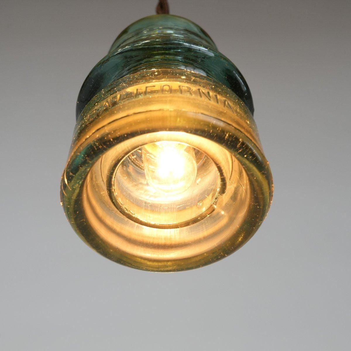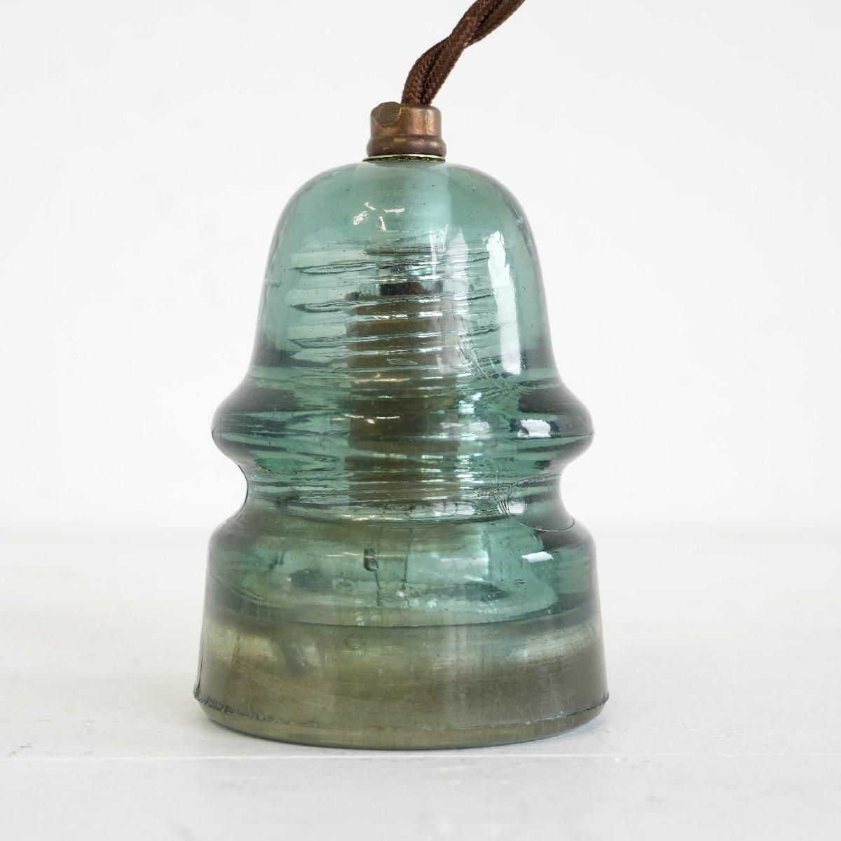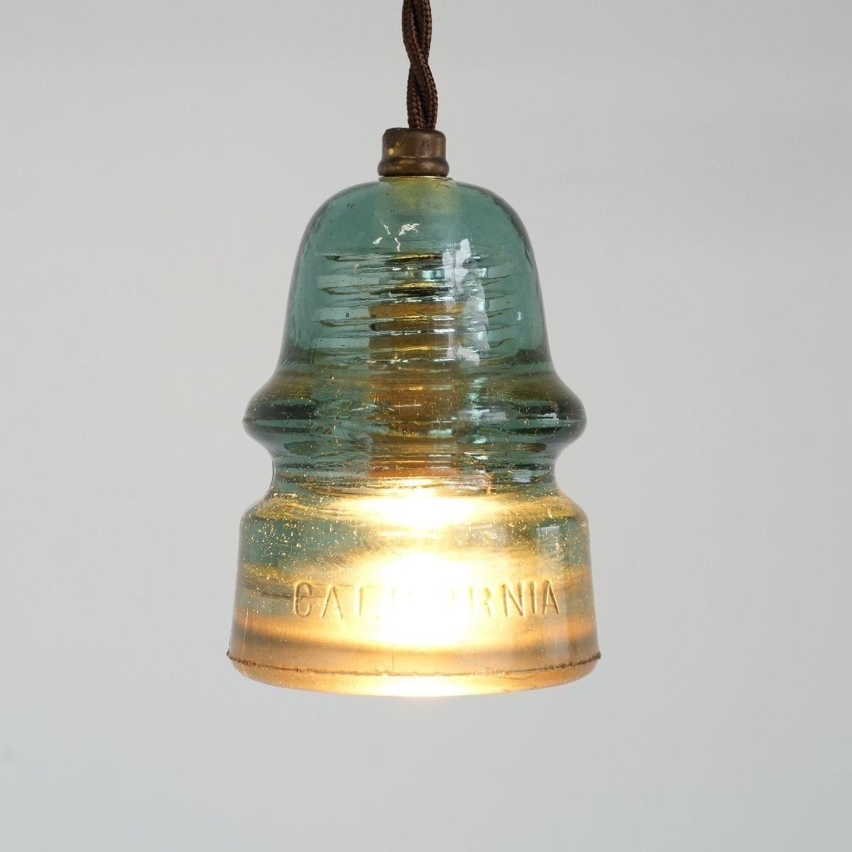アメリカ・カリフォルニア州の電柱で使われていたと思われるインシュレーターを、シェードに加工したペンダントランプです。