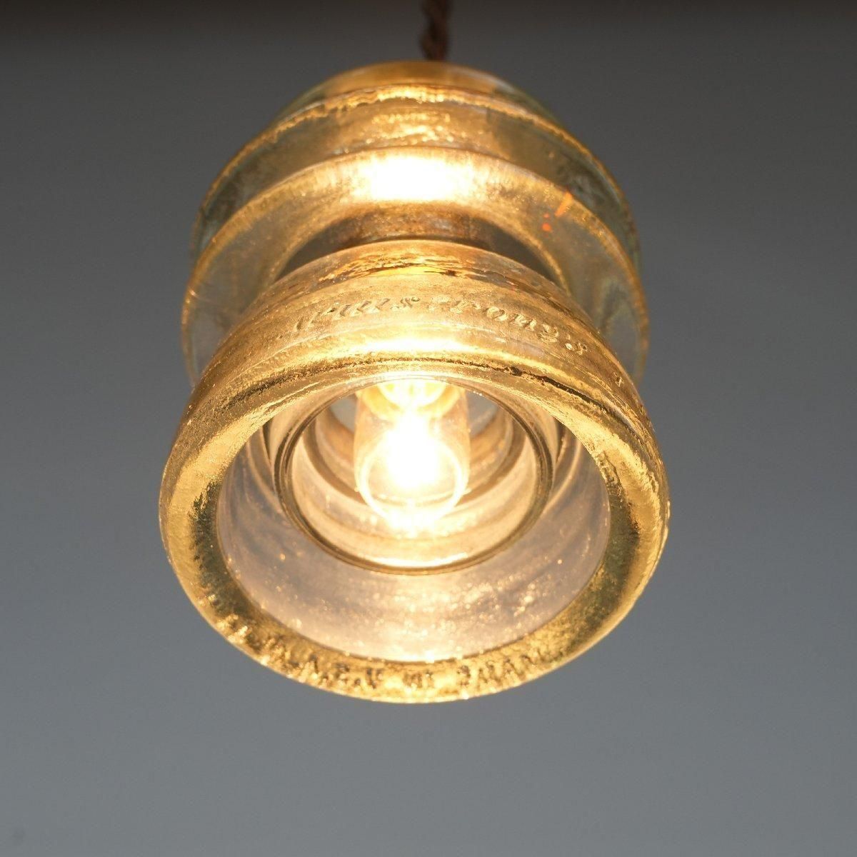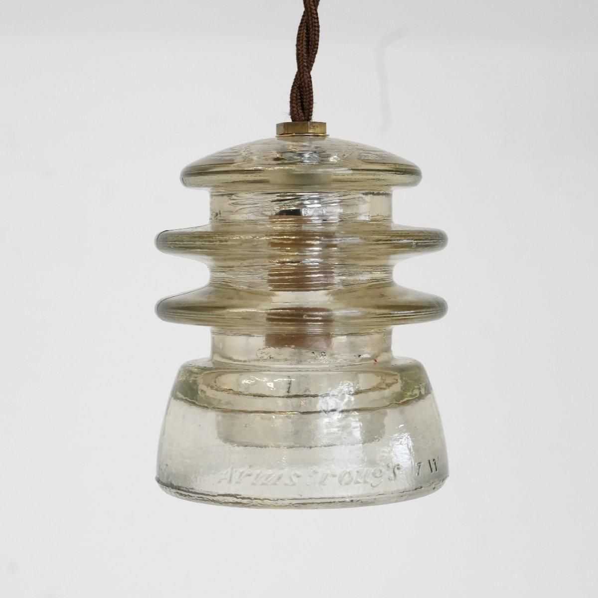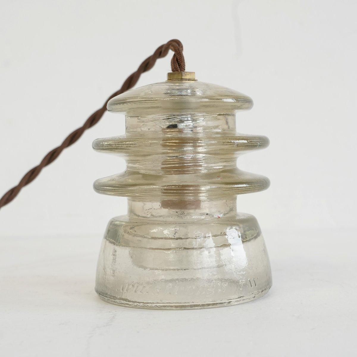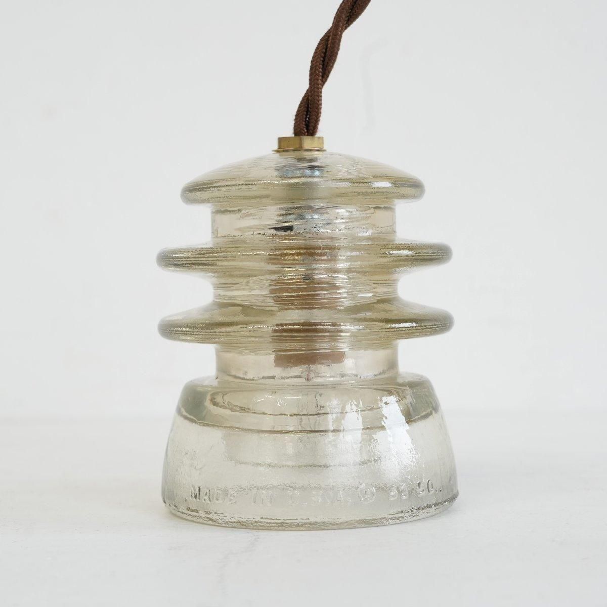 アメリカの電柱で使われていたインシュレーターを、シェードに加工したペンダントランプです。