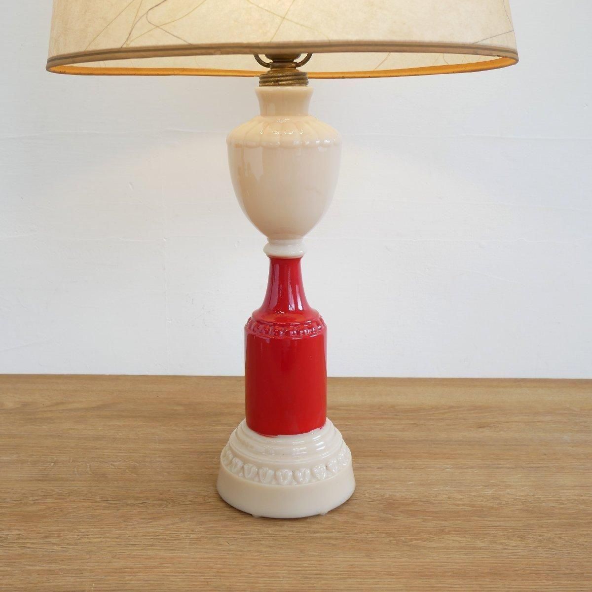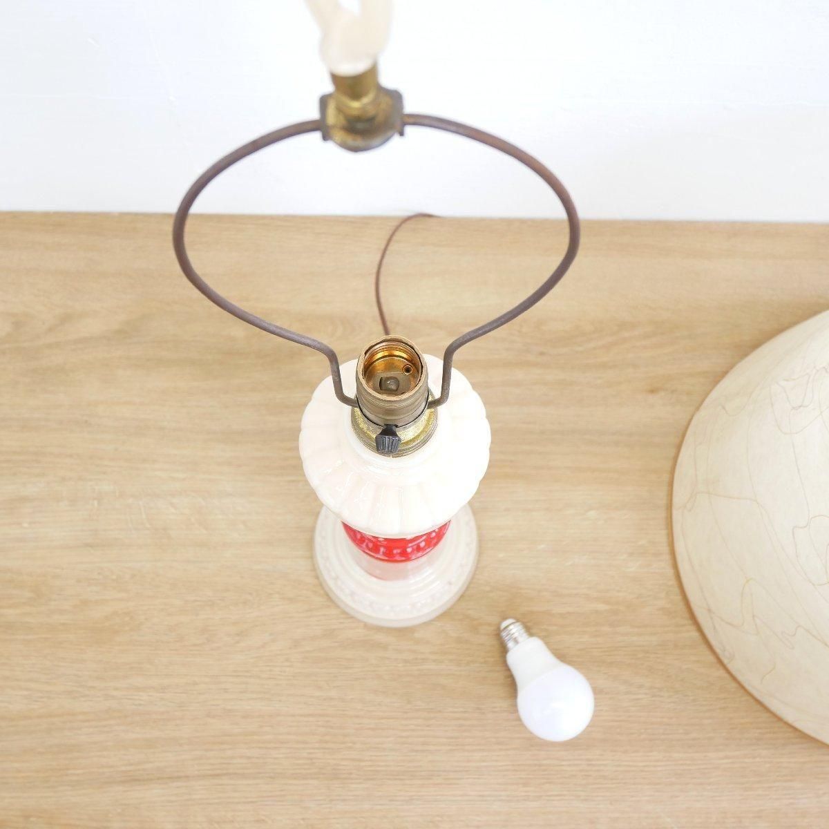 ガラスの支柱はアールデコデザインで、シェードは樹脂製で趣があります。
