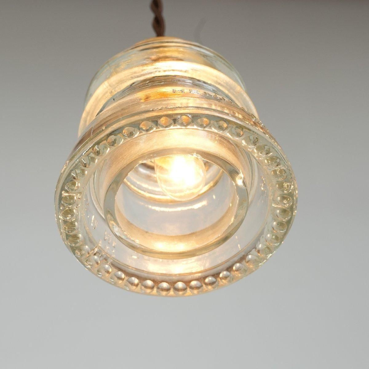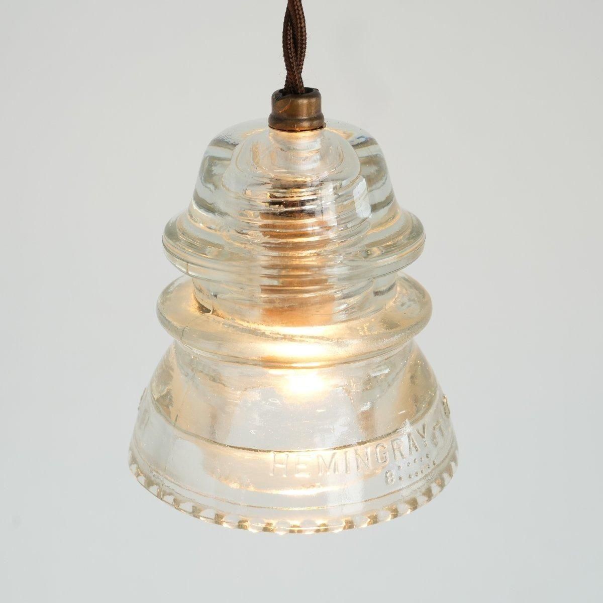 アメリカの電柱で使われていたインシュレーターを、シェードに加工したペンダントランプです。