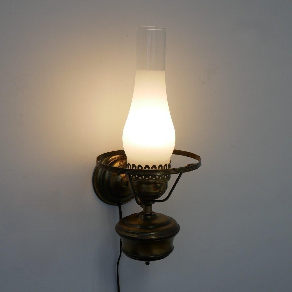 オイルランプ風の、ミルクガラスシェード壁掛けランプです。