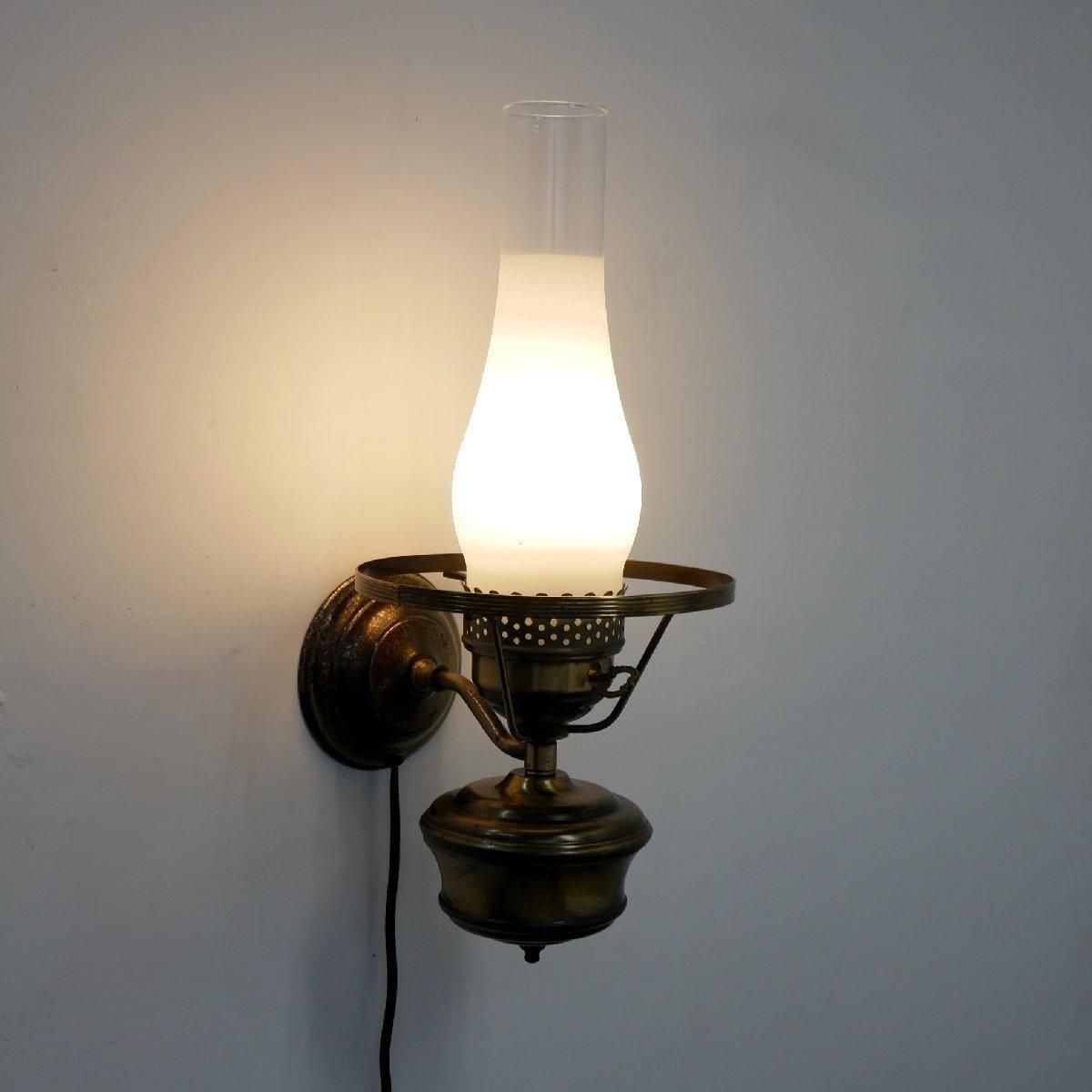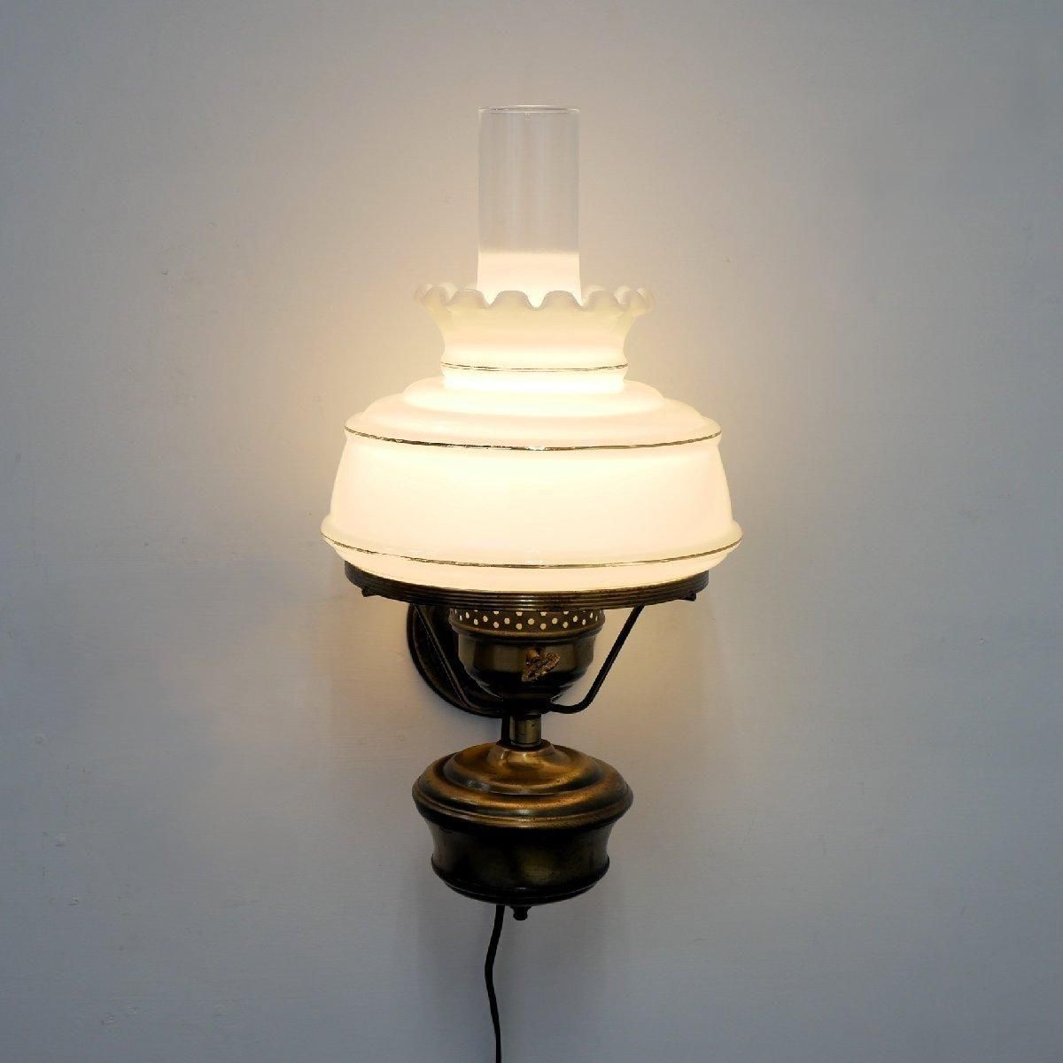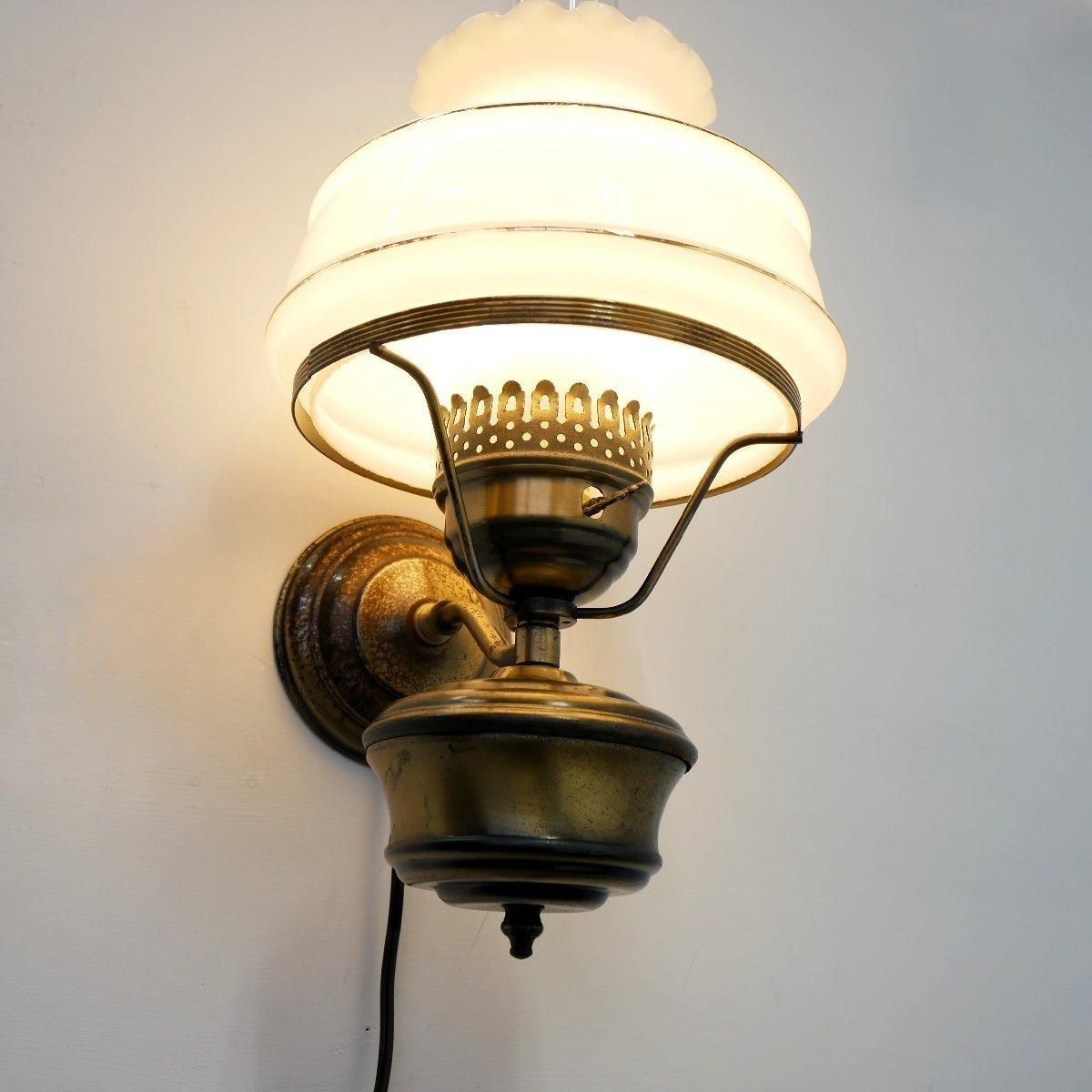オイルランプ風の、ミルクガラスシェード壁掛けランプです。