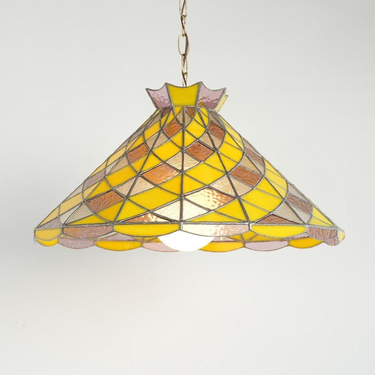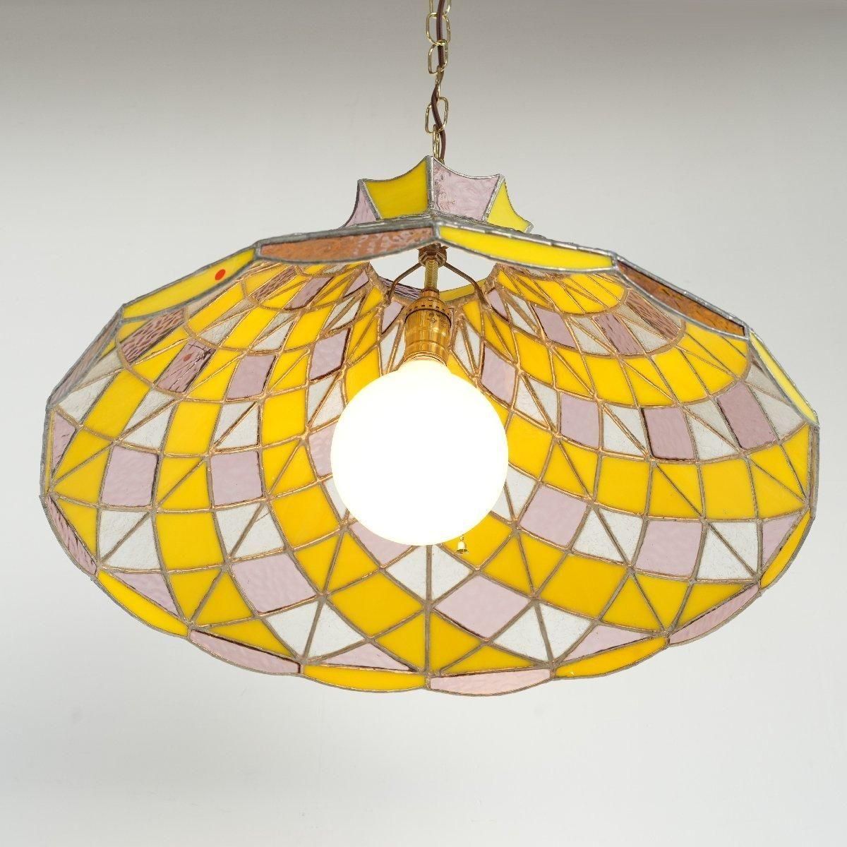 推定1970年代頃の、ヴィンテージのステンドグラスペンダントランプです。