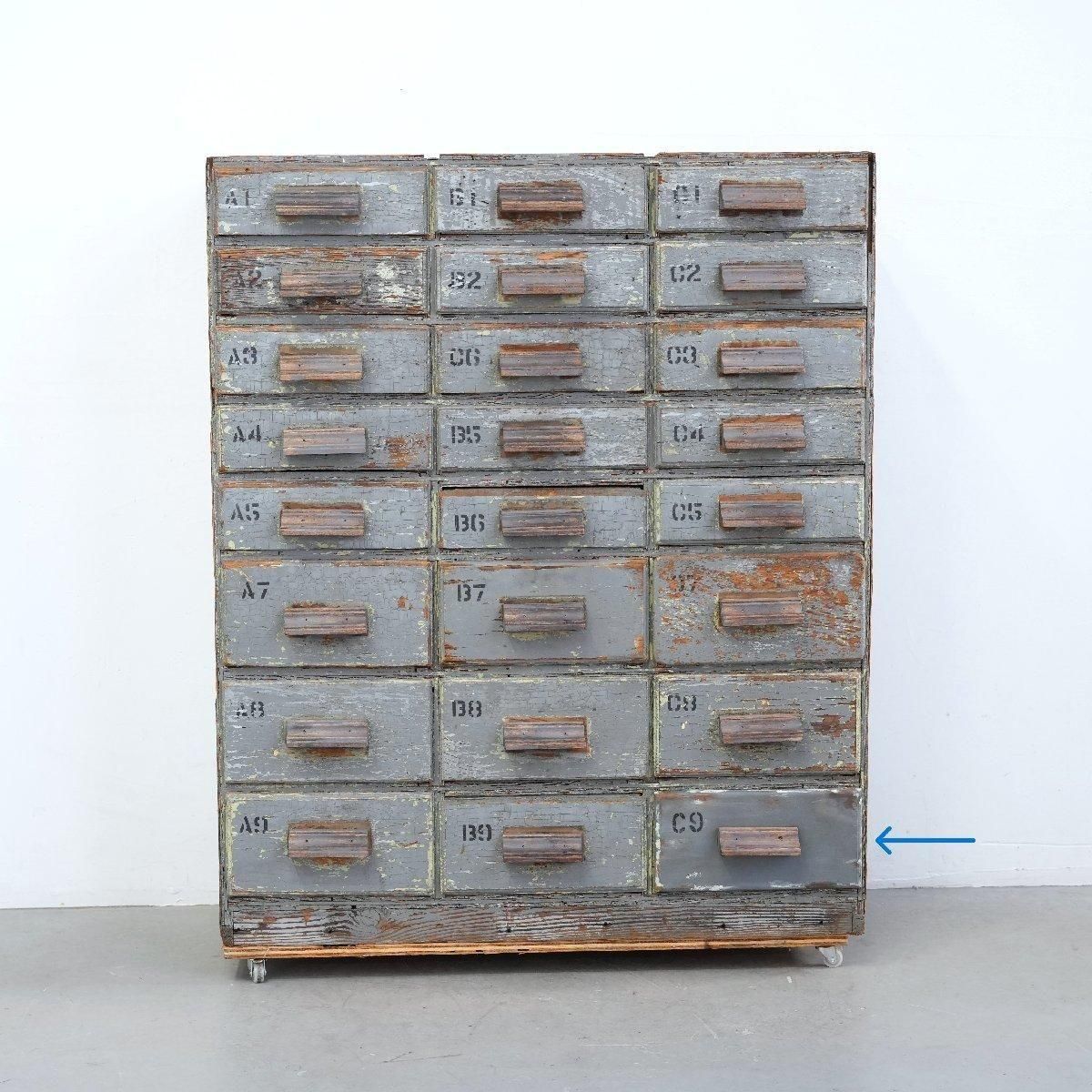 ※一番右下の引き出しは色が異なり、後づけされたモノかと思われます。(画像2枚目矢印)
