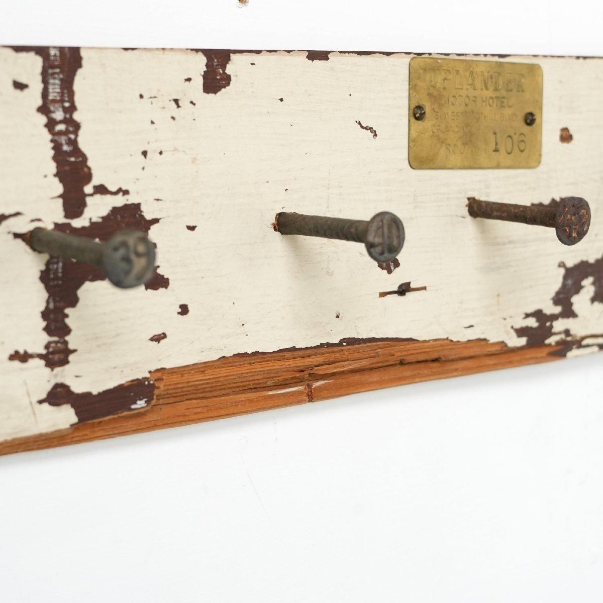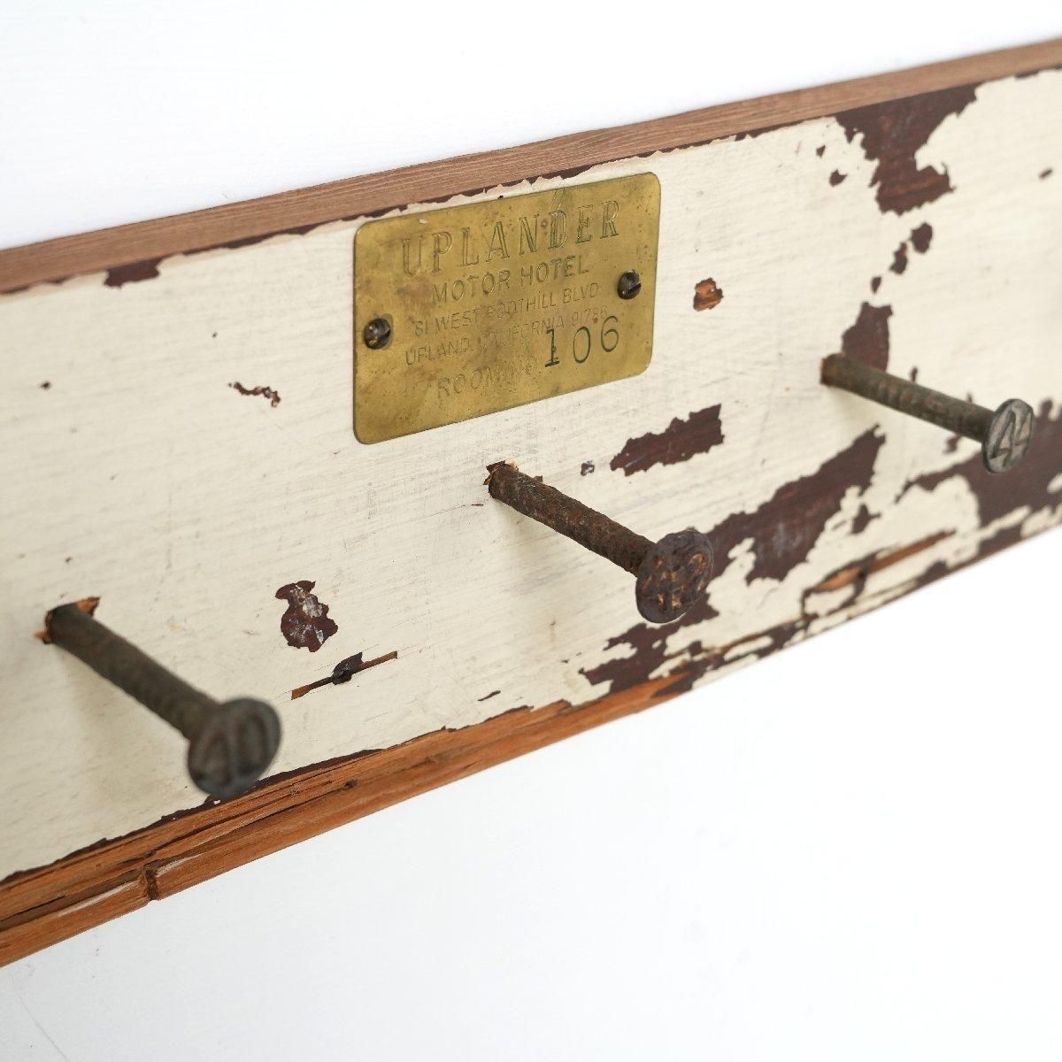 【Uplander Motor Hotel】のヴィンテージ木製7連ウォールフックです。